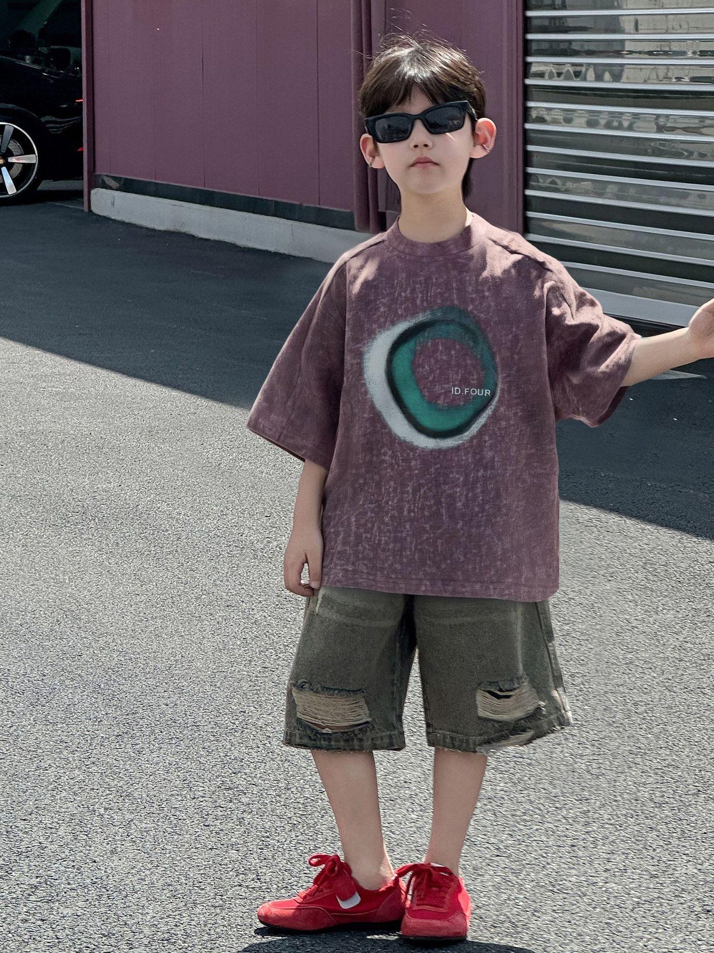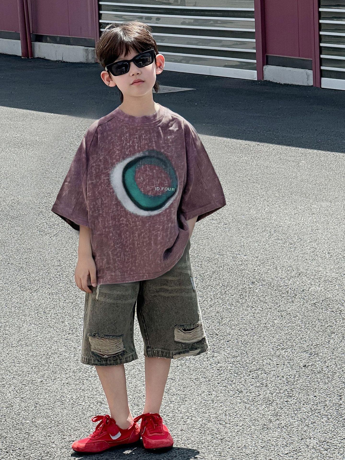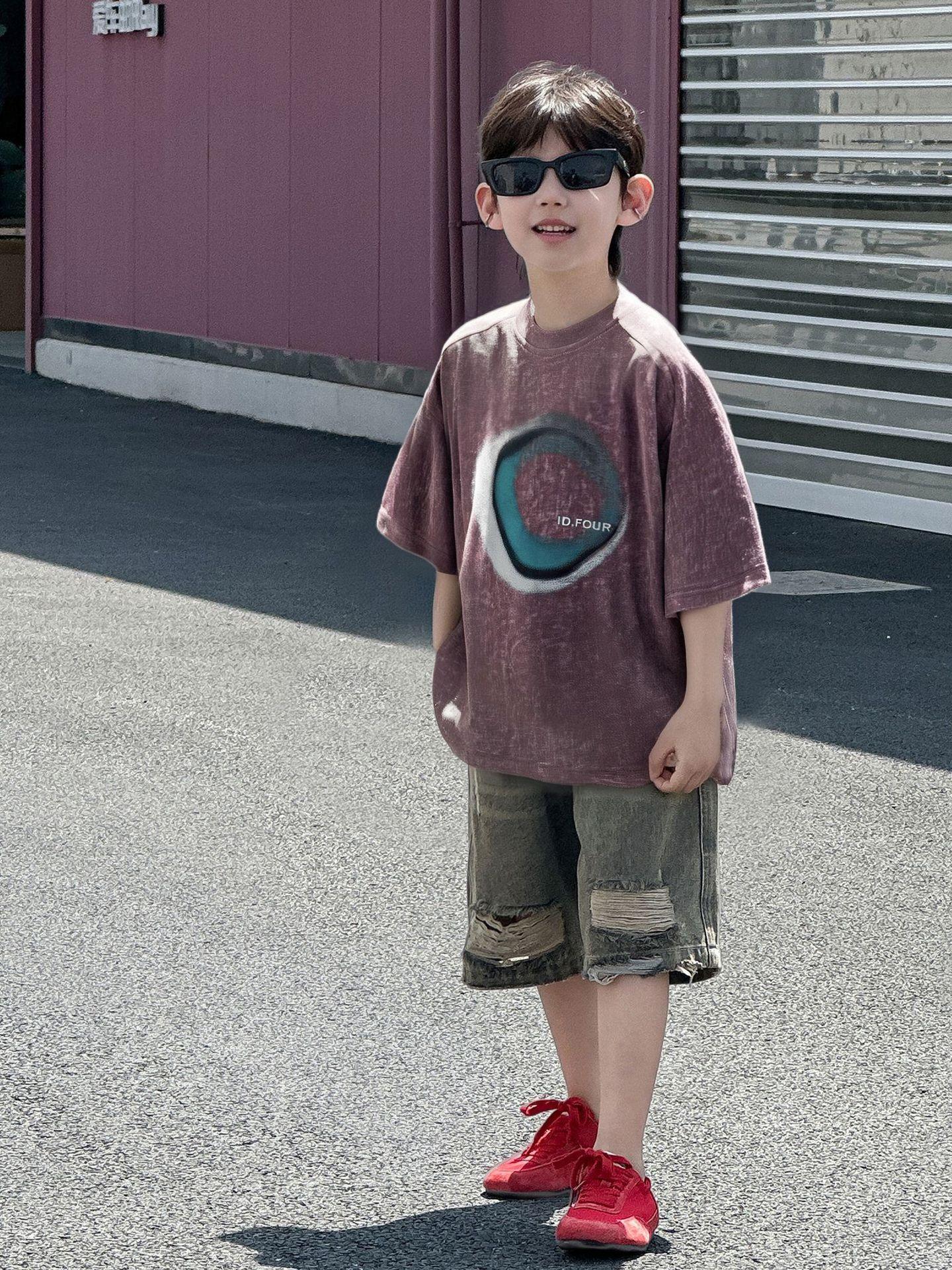 Camiseta de Verano de Manga Corta para Niño Ropa de Verano para Niños de Estilo Coreano 2025 Nueva Retro Suelta Delgada Moderna
