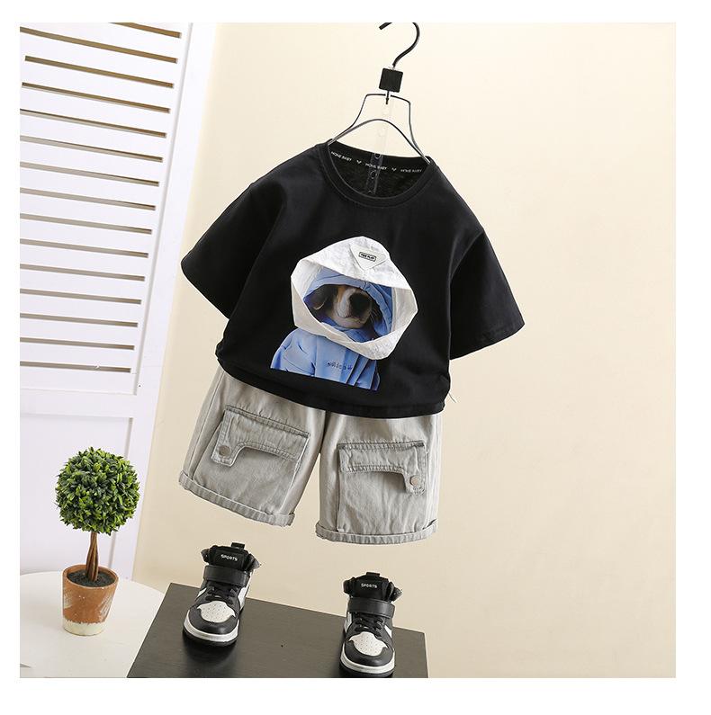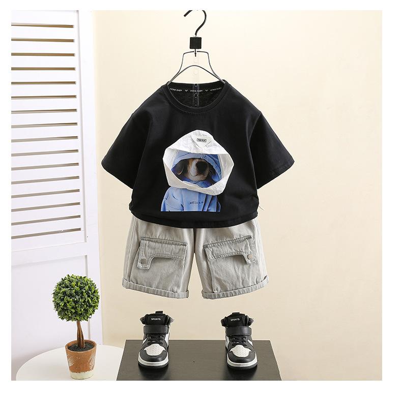 Ropa para Niños Traje de Verano para Niños Delgado 2025 Nuevo Verano Ropa de Bebé de Manga Corta Guapo Moderno Guapo a la Moda