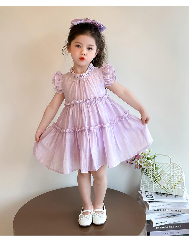 Falda de Pastel de Encaje de Color Sólido para Niñas 2025 Verano Nueva Moda Niña Falda Elegante de Princesa Vestido de Niña