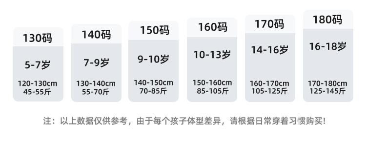130cm, 140cm, 150cm, 160cm, 170cm, 180cm