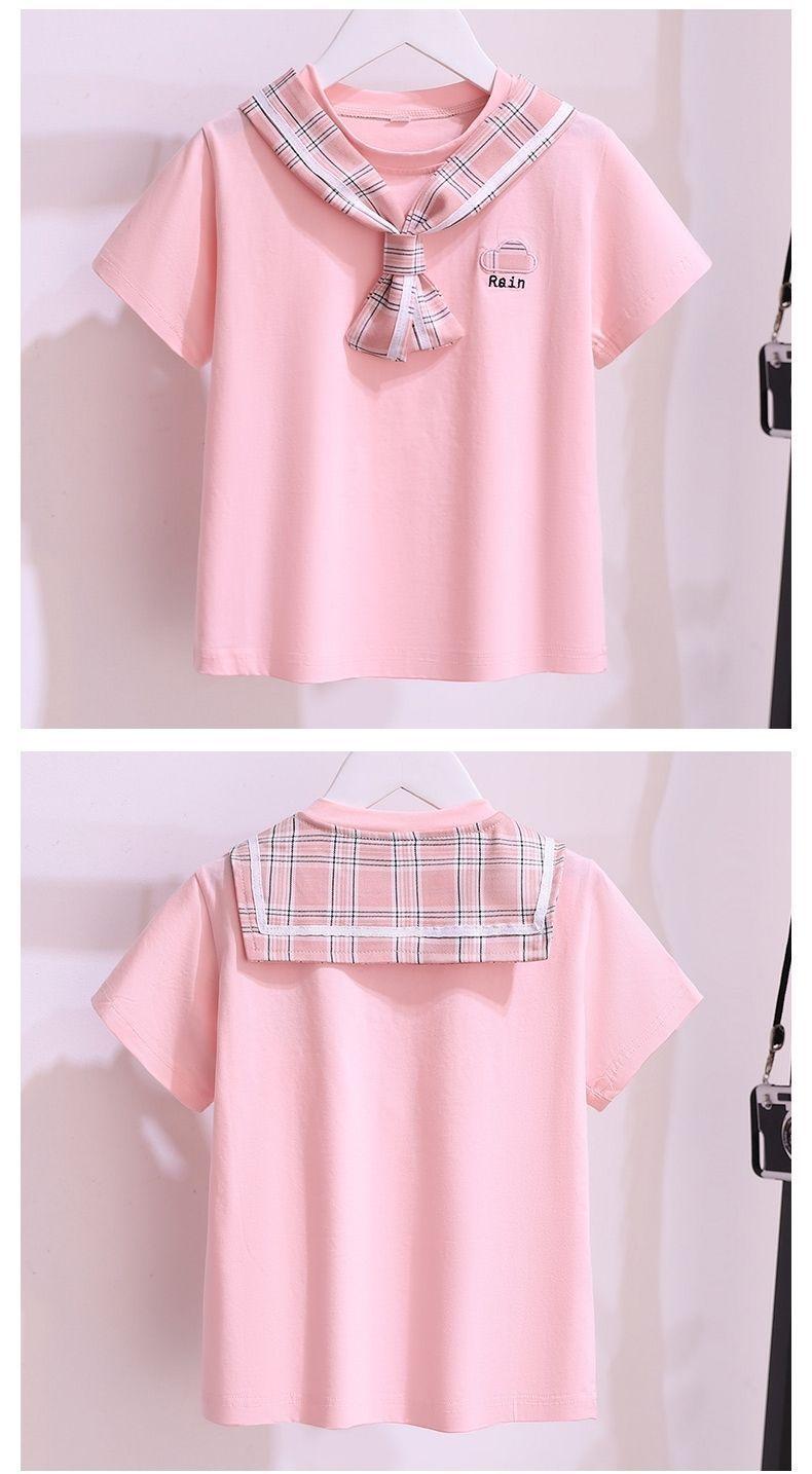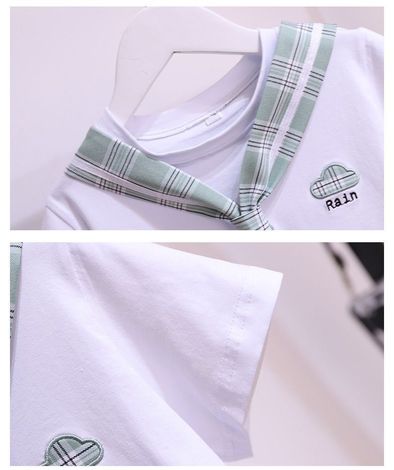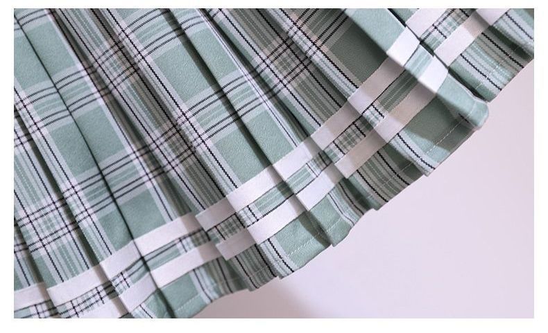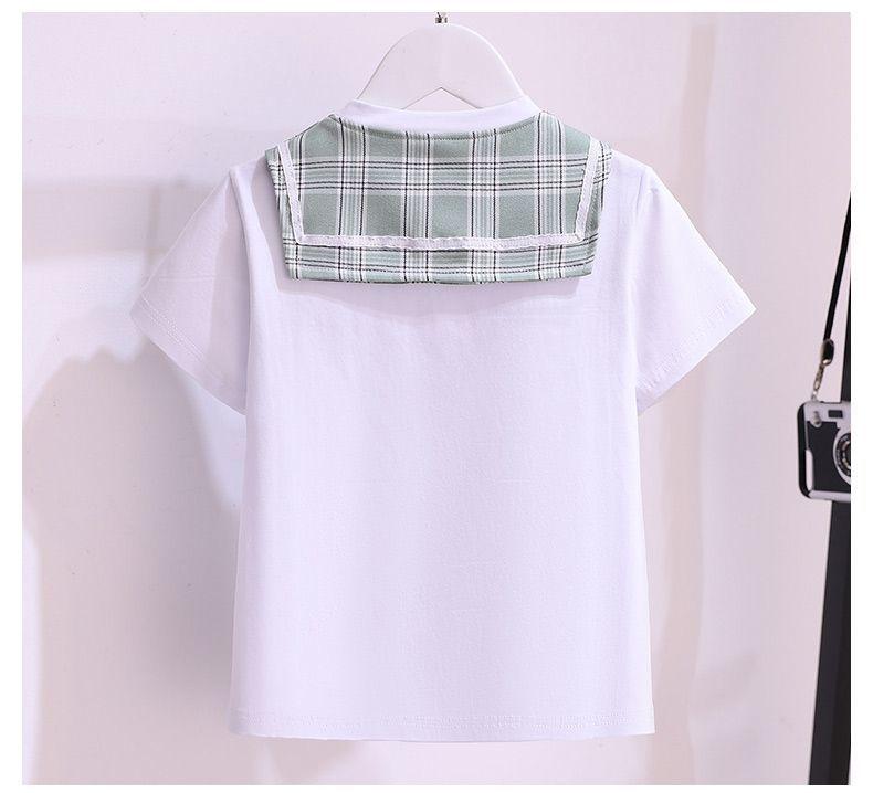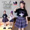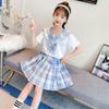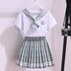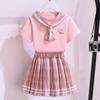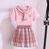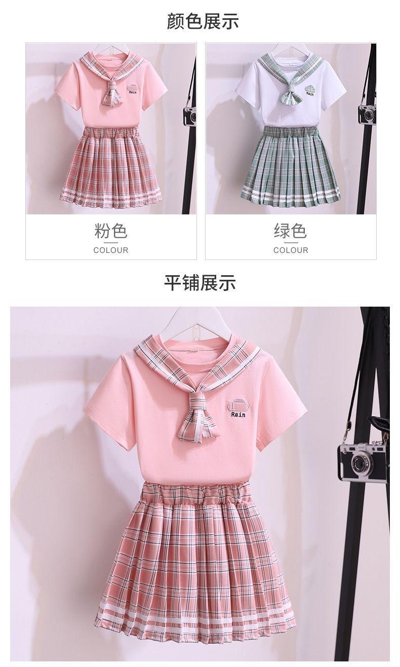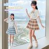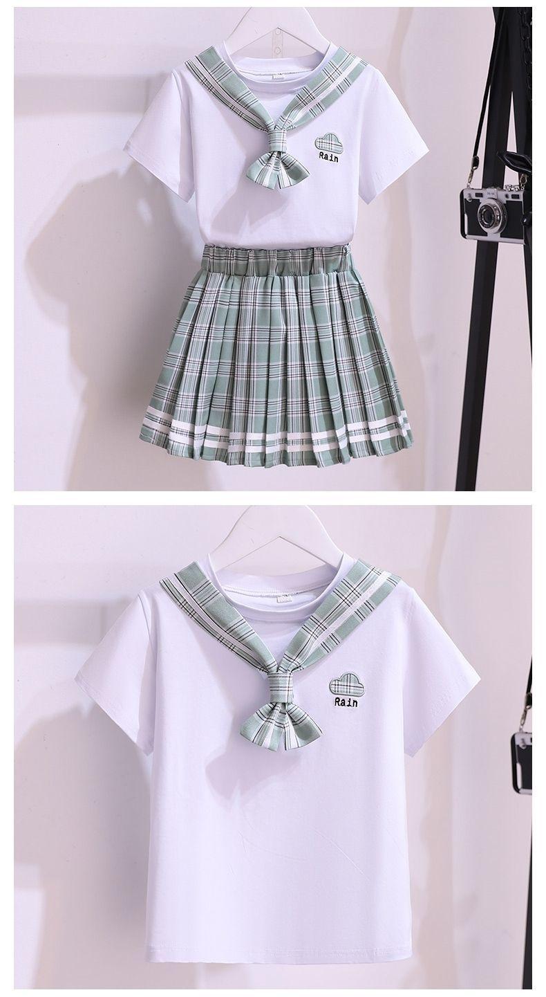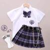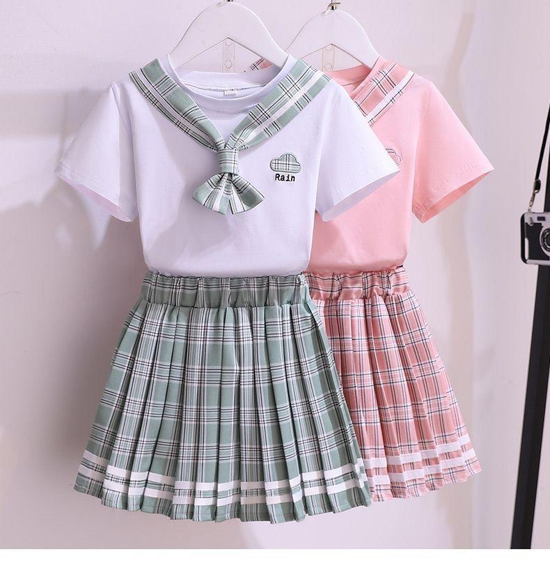 Ropa para Niñas Traje de Uniforme JK Vestido de Verano Uniforme Escolar para Niños Estilo Universitario Falda Plisada a Cuadros Conjunto de Dos Piezas