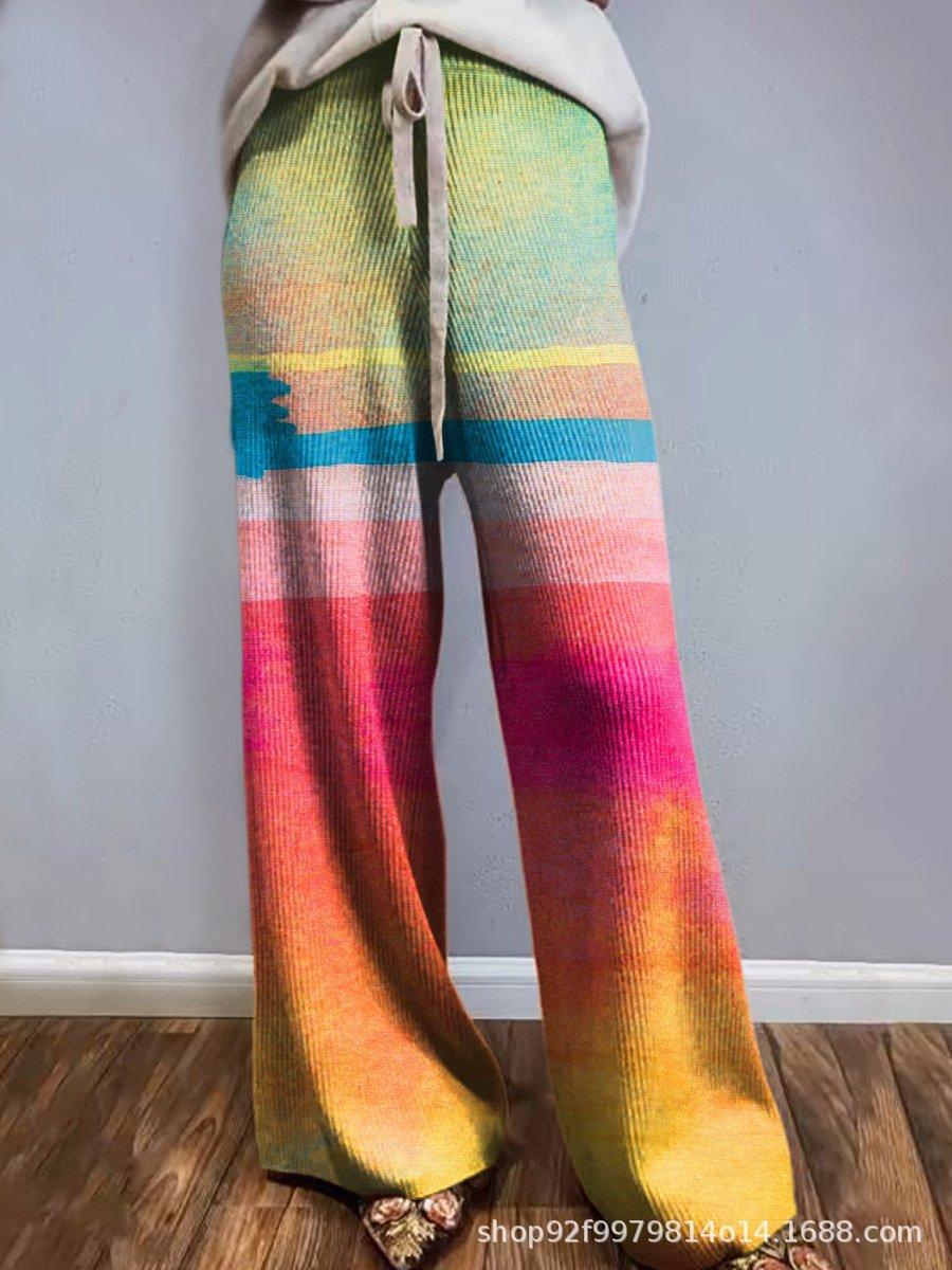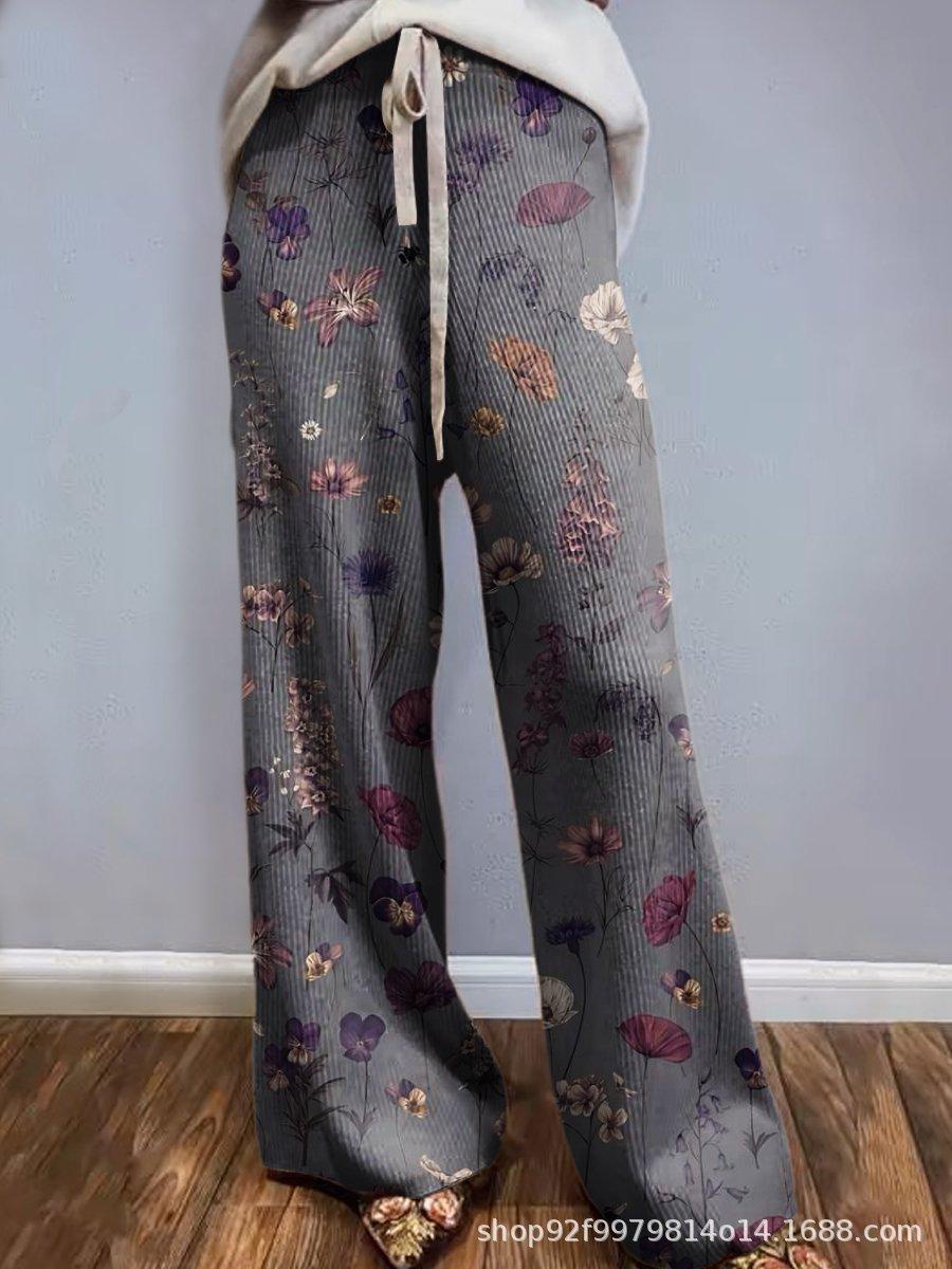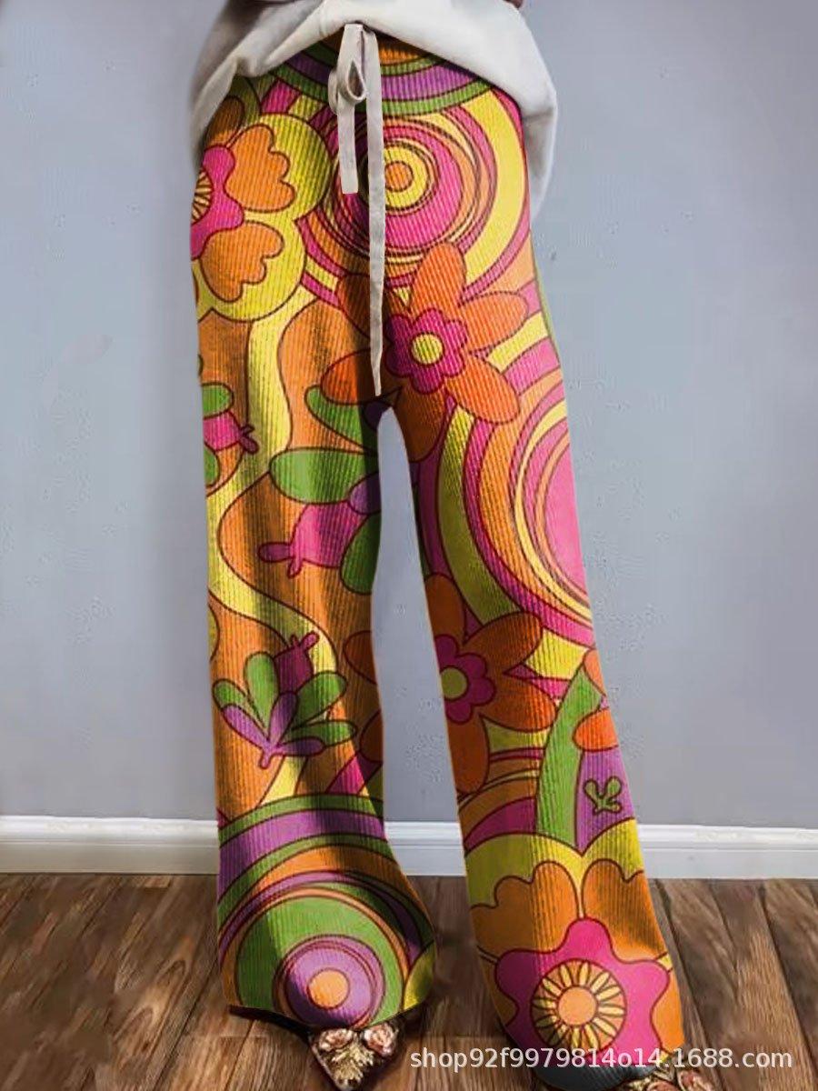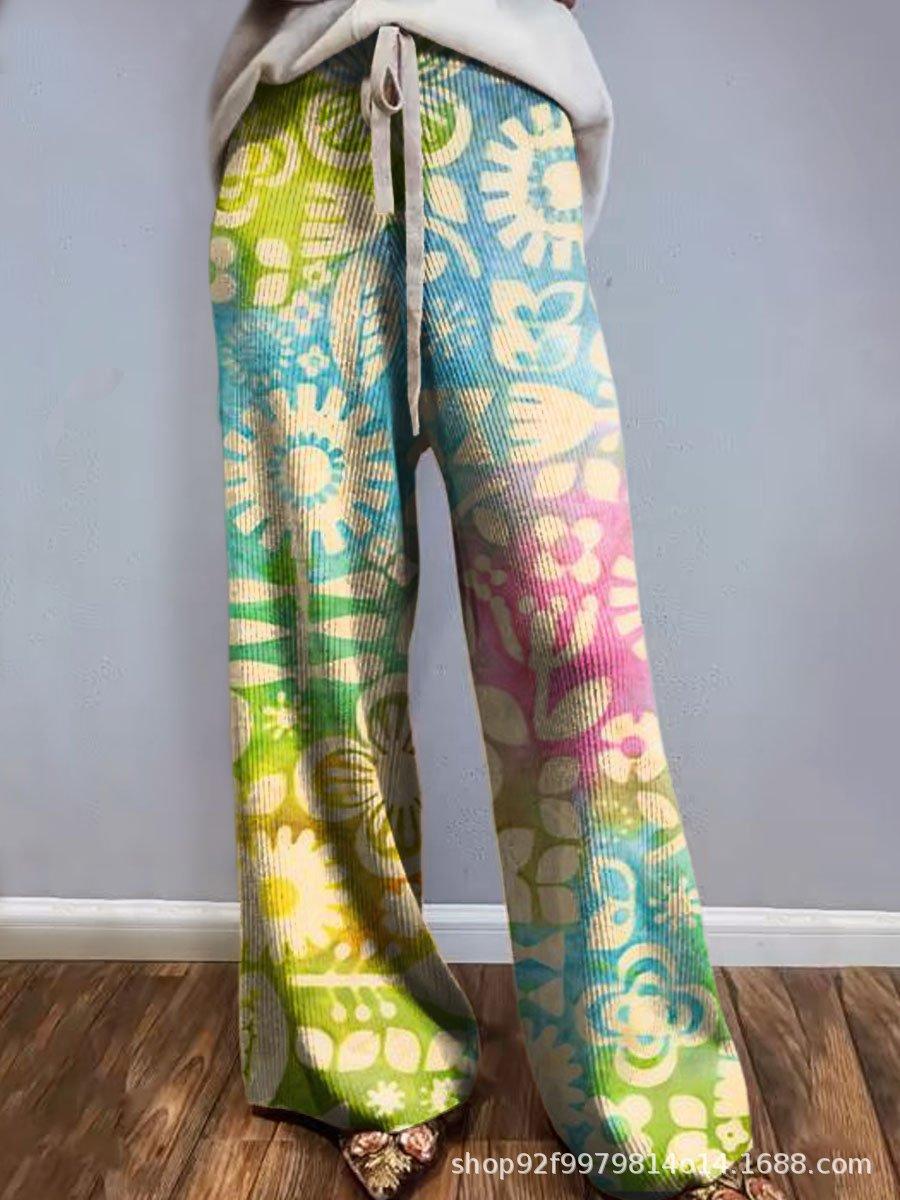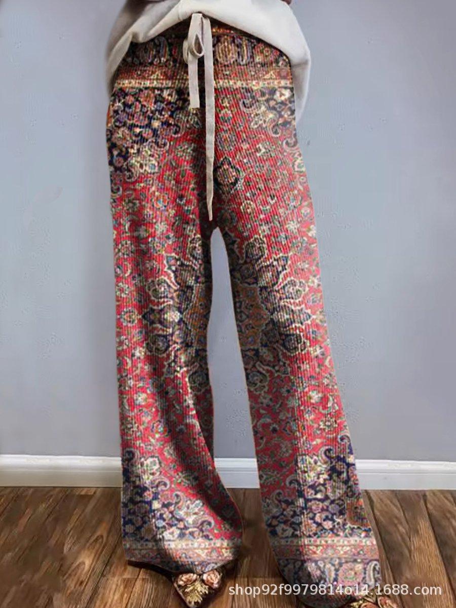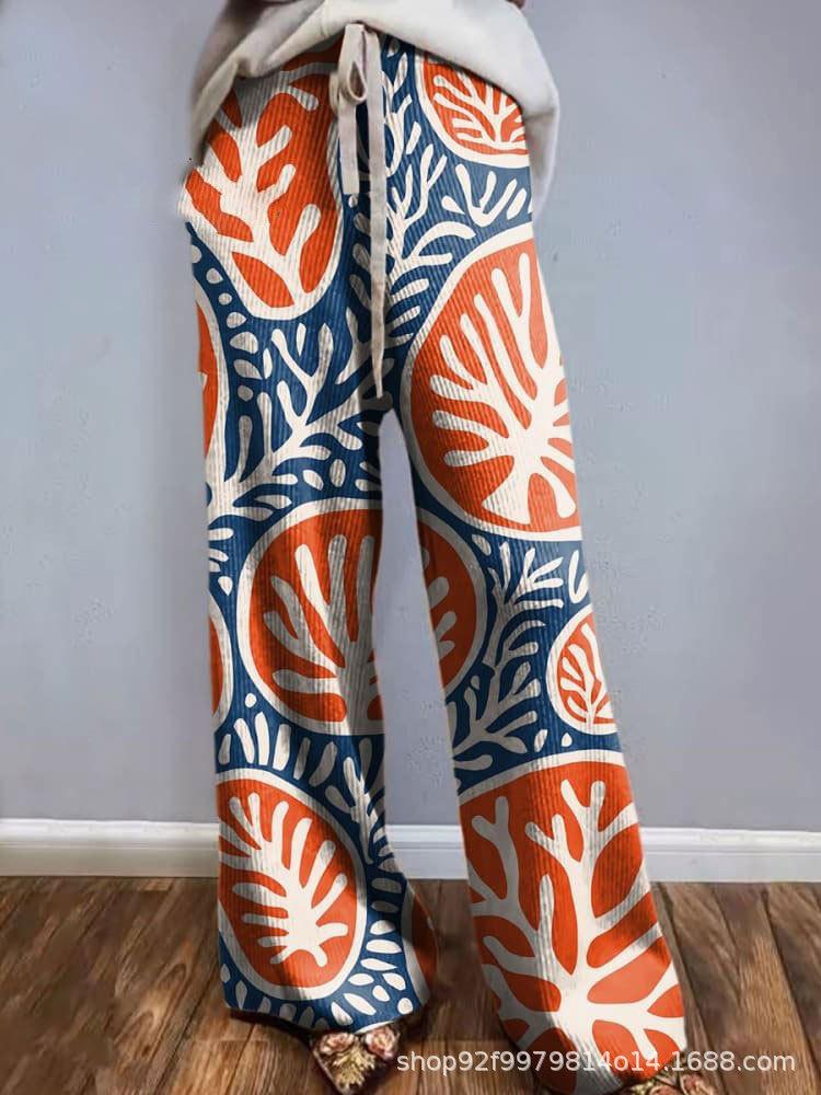2024 Estación Independiente Transfronteriza Nuevo Estampado de Patrón Bohemio 3D Europeo y Americano Casual Pantalones Deportivos de Pierna Ancha