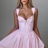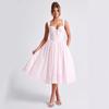 Estilo Europeo y Americano Retro para Mujer Nuevo Encaje Empalmado Tirantes Ajustados Espalda Descubierta Cuello en V Vestido Mini Falda Abullonada Ins