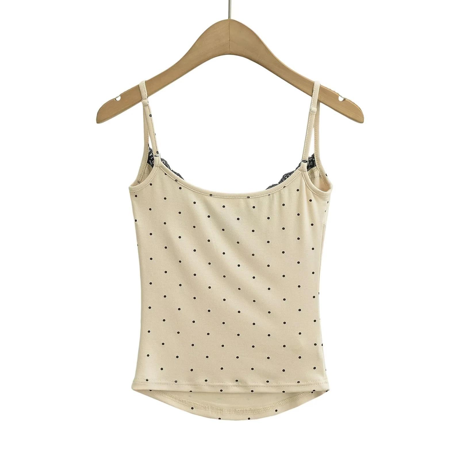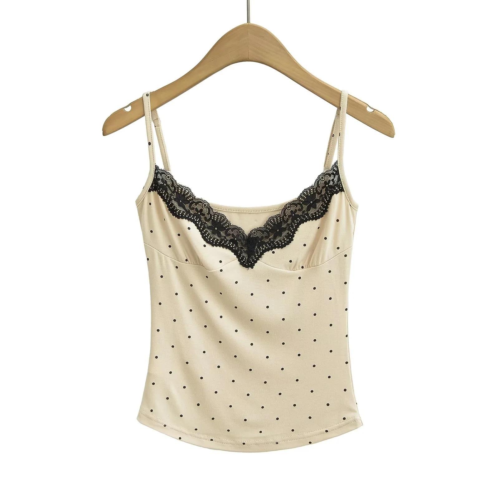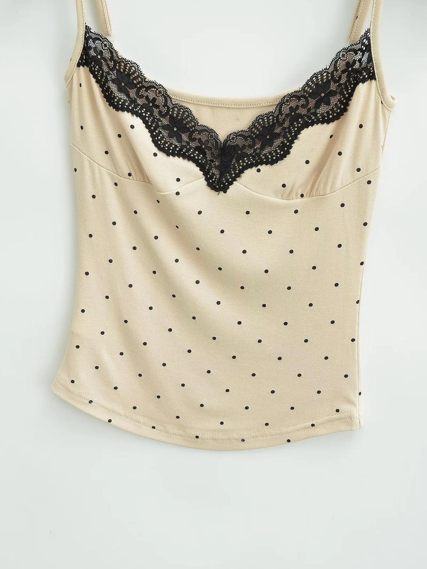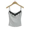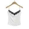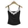 Sexy Top Cami de Lunares con Encaje de Parche de Cuello en V Profundo Jin Yi Clothing