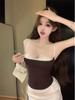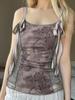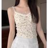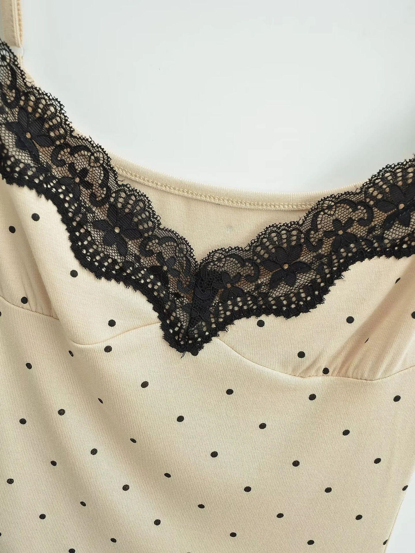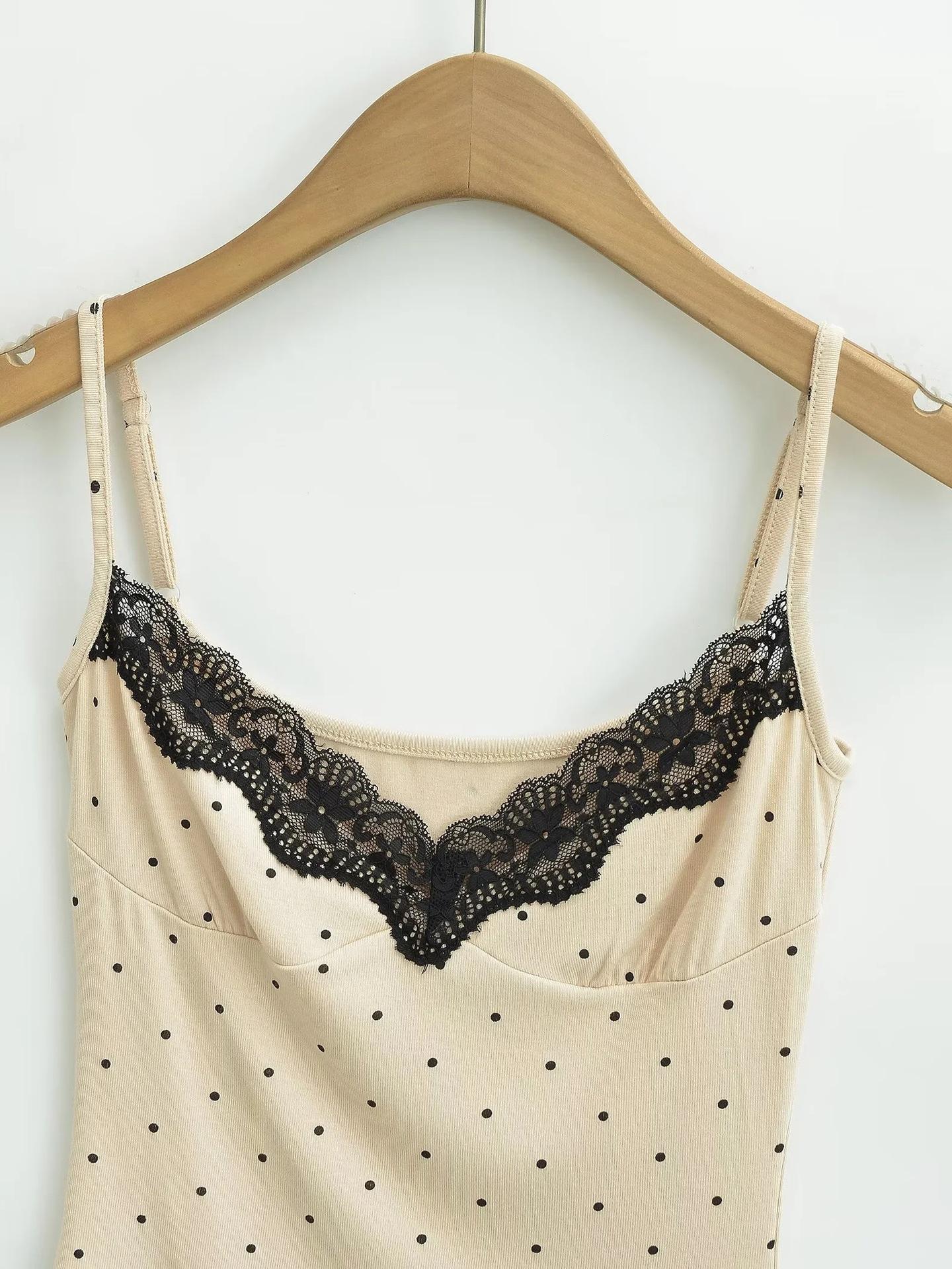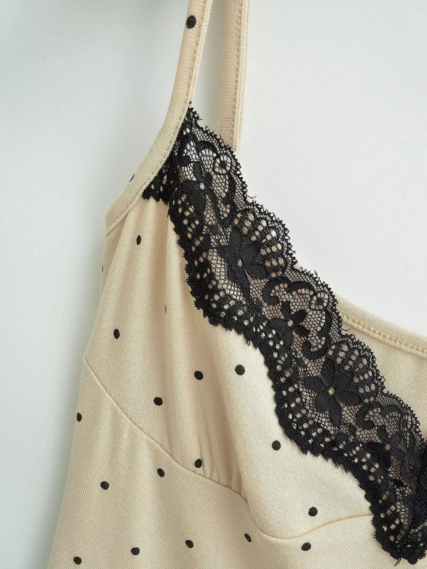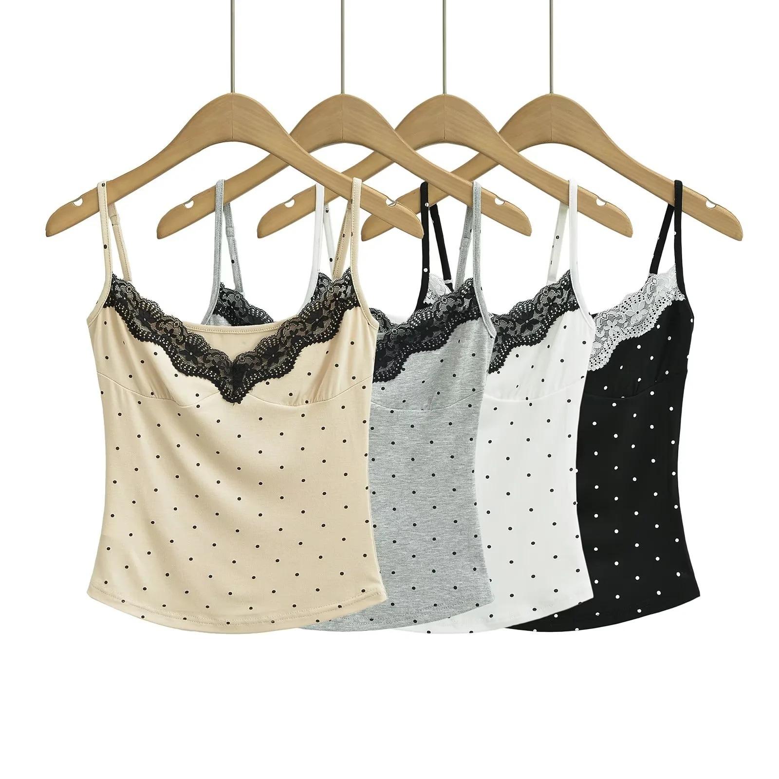 Sexy Top Cami de Lunares con Encaje de Parche de Cuello en V Profundo Jin Yi Clothing