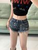 Verano 2025 Chica Americana Caliente Retro Corte Crudo Uña de Sauce Shorts de Mezclilla de Tiro Bajo para Mujer Pantalones Cortos de Línea A a la Moda