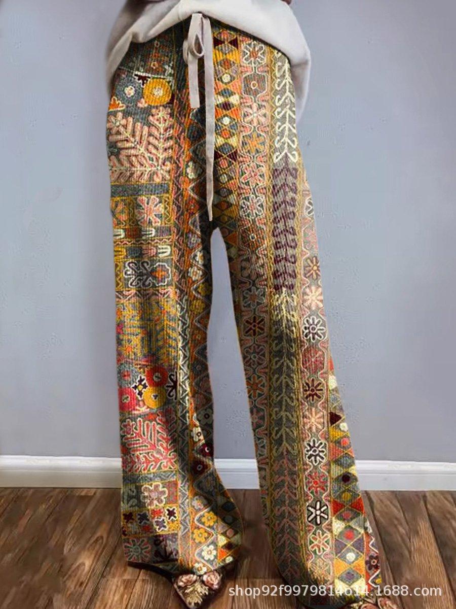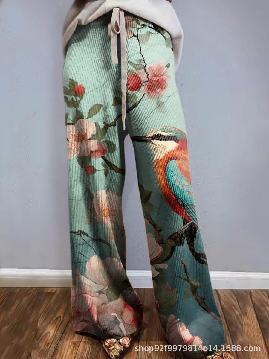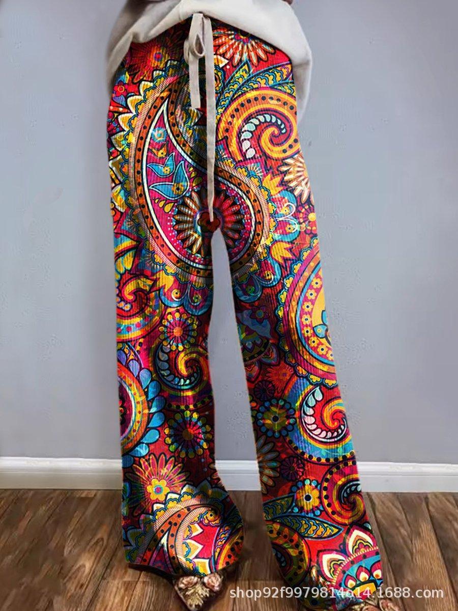Estación Independiente Transfronteriza de Amazon Nuevo Estampado 3D Pantalones Deportivos Casuales de Pierna Ancha Europeos y Americanos Moda Europea y Americana