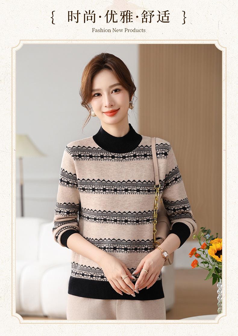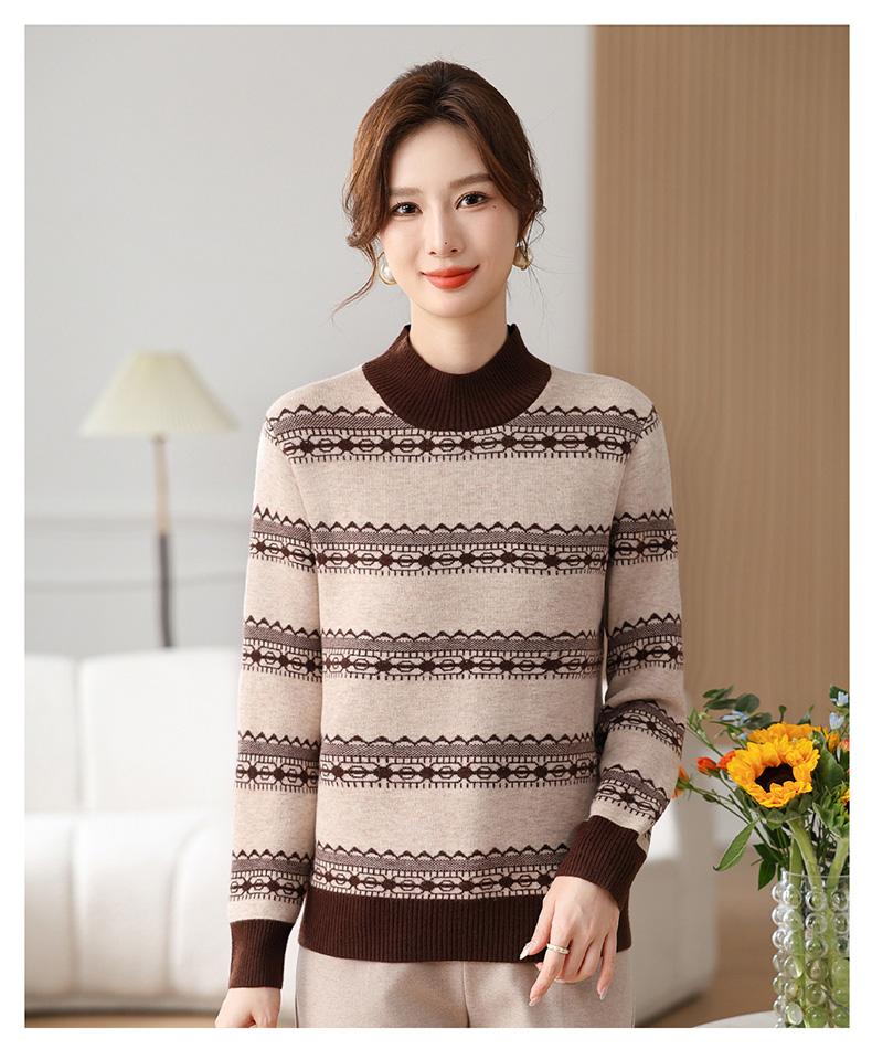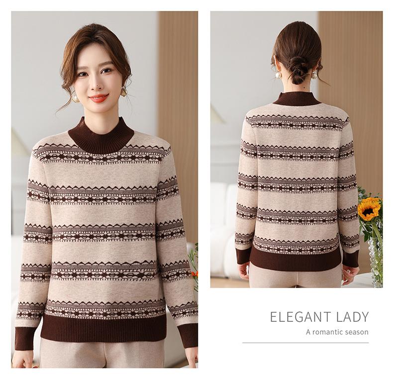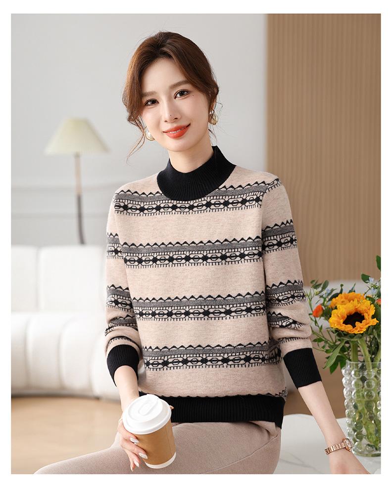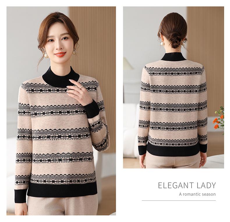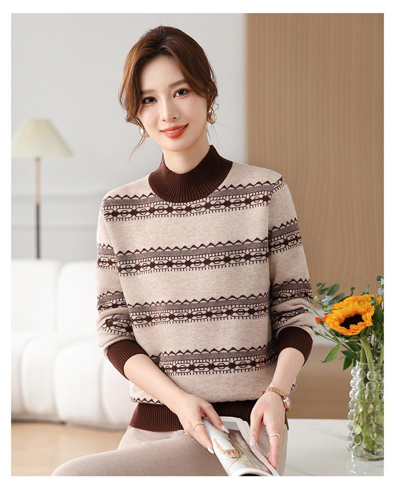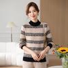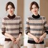Ropa de Otoño e Invierno para Mamá Suéter de Terciopelo de una Pieza 2024 Nuevo Camiseta Base Tejida Gruesa Ropa de Mujer Top Cálido a Rayas