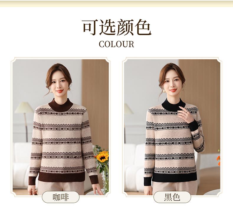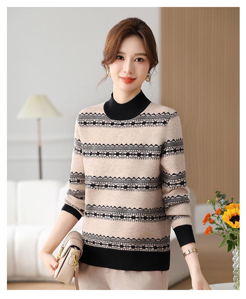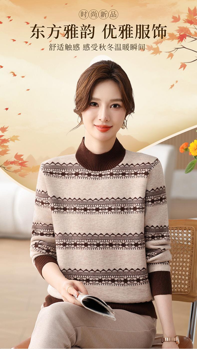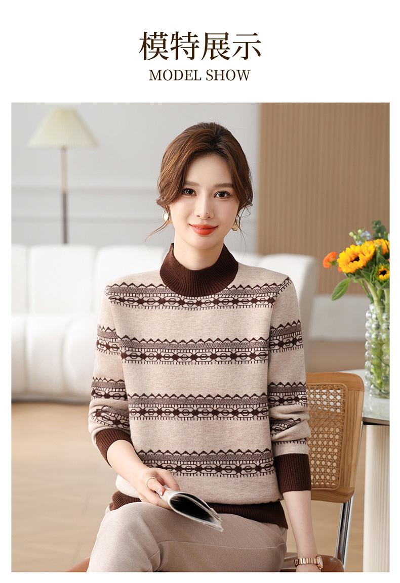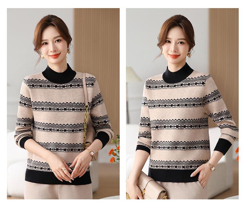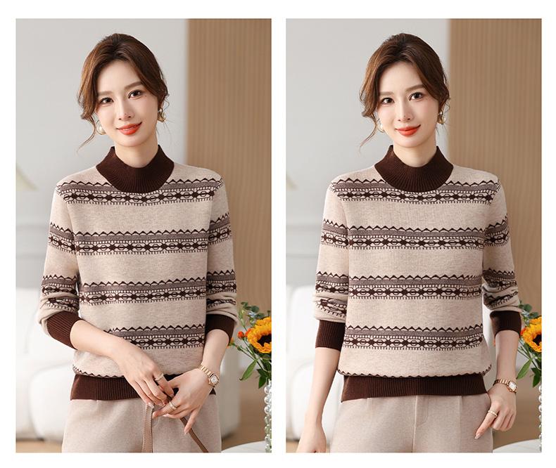 Ropa de Otoño e Invierno para Mamá Suéter de Terciopelo de una Pieza 2024 Nuevo Camiseta Base Tejida Gruesa Ropa de Mujer Top Cálido a Rayas