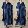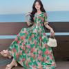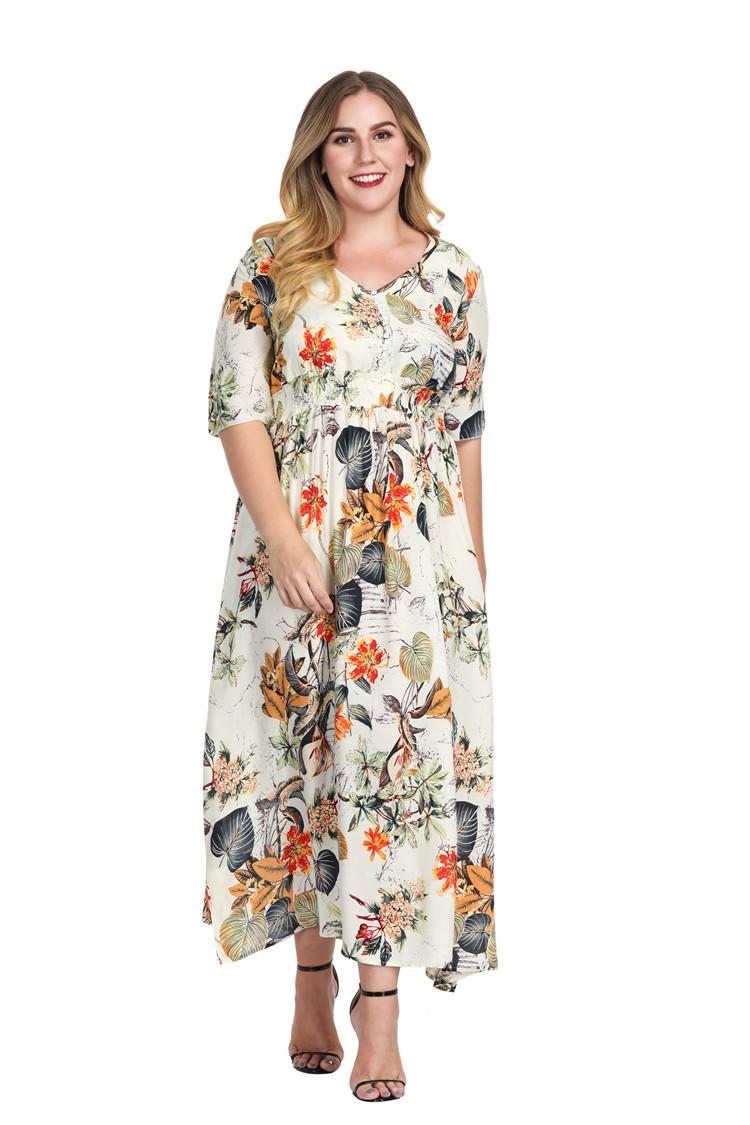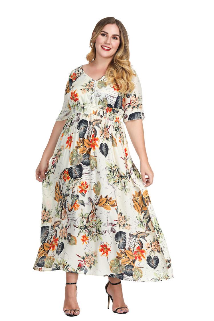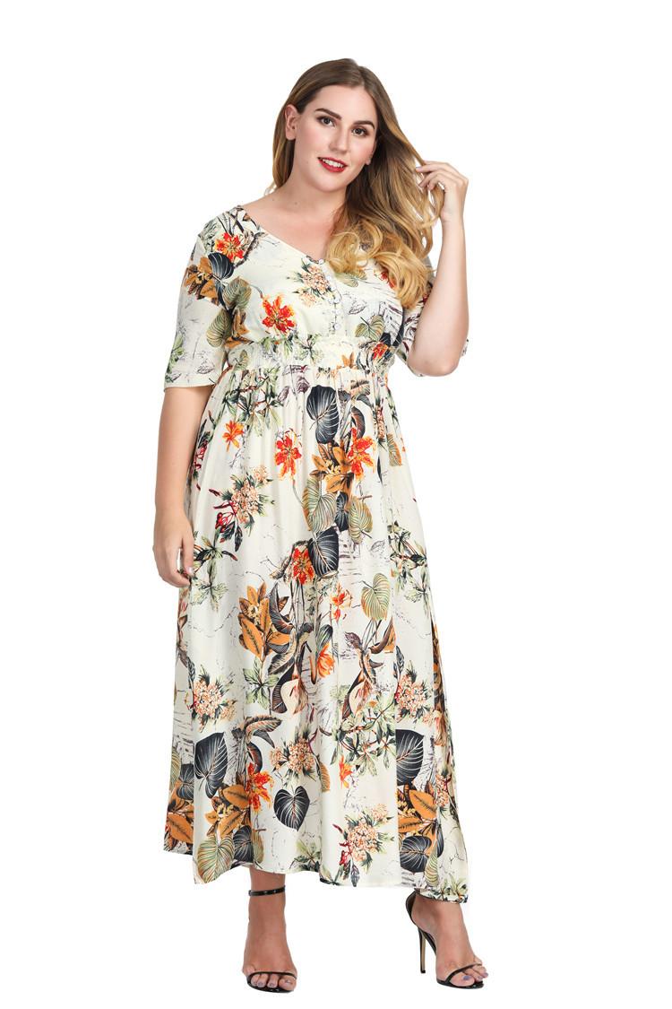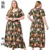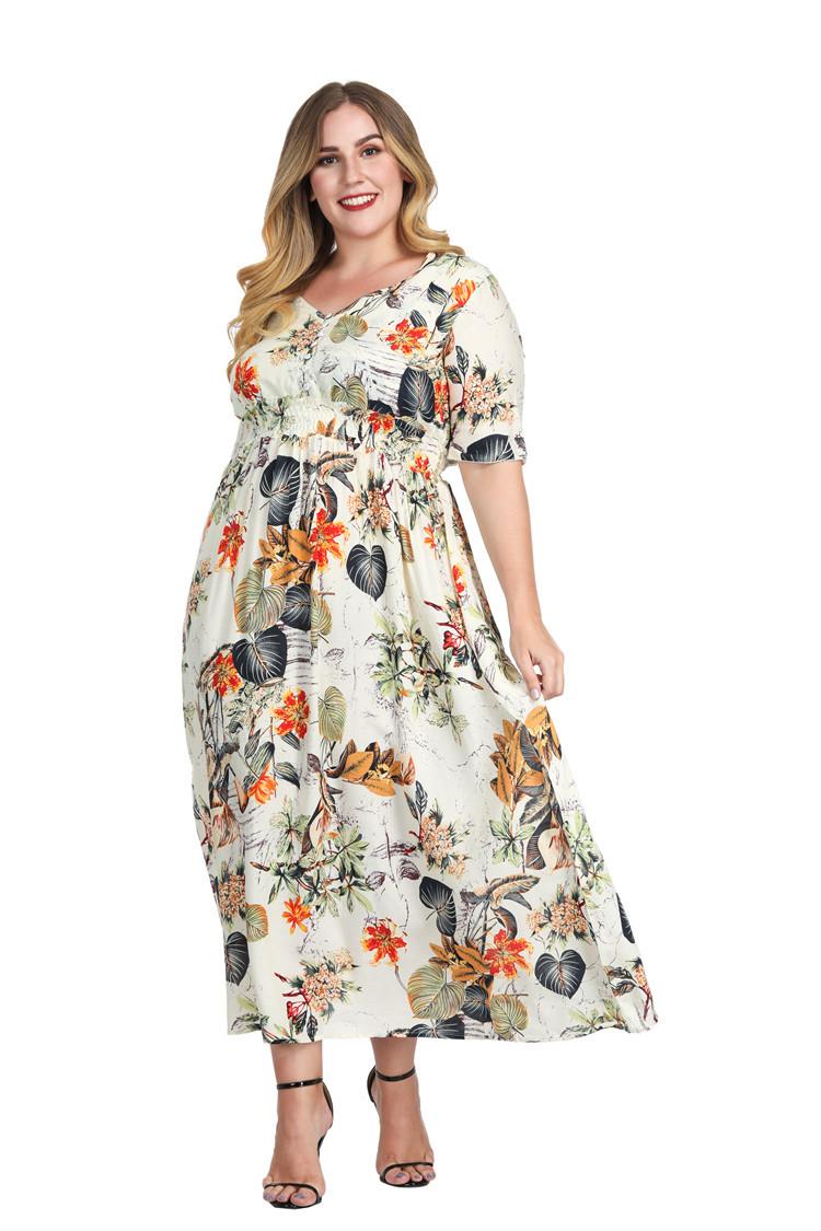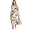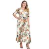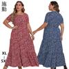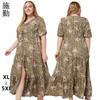 Vestido Estampado de Talla Grande Transfronterizo Verano Cuello en V Manga Corta Cintura Alta Vestido Largo Bohemio Vestido de Playa Talla Extra Grande