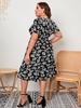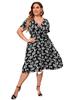 2022 Verano Nuevo Europeo y Americano Damas Cuello en V Cintura Estampado Manga Corta Casual Talla Mediana Grande Vestido Spot