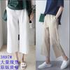 Pantalones de Pierna Ancha de Algodón y Lino para Mujer Primavera y Verano 2024 Delgados Gorditos mm Talla Grande Sueltos Casuales Lino Nueve Puntos Rectos