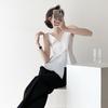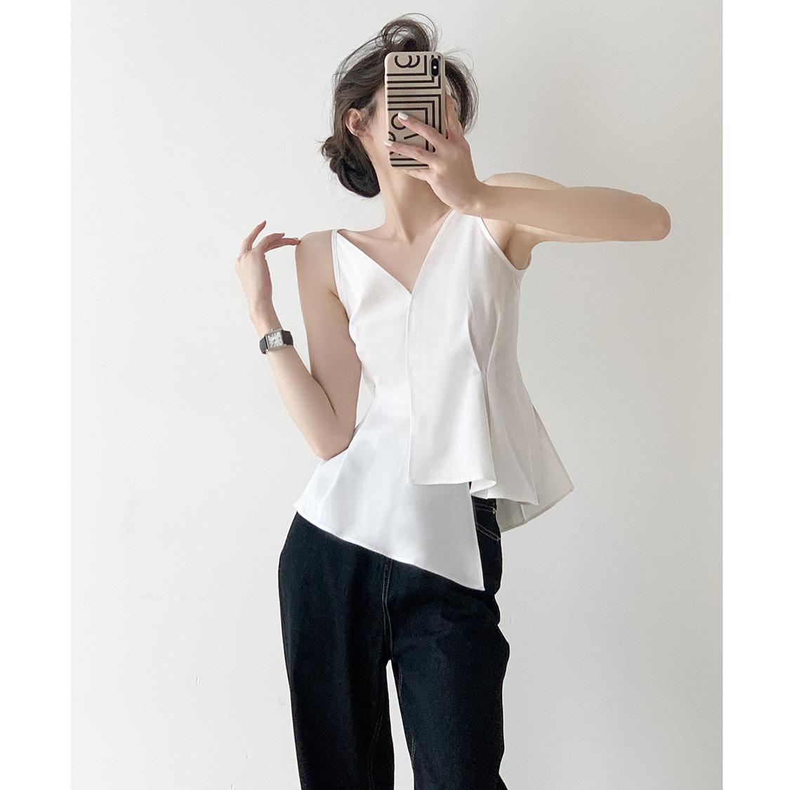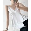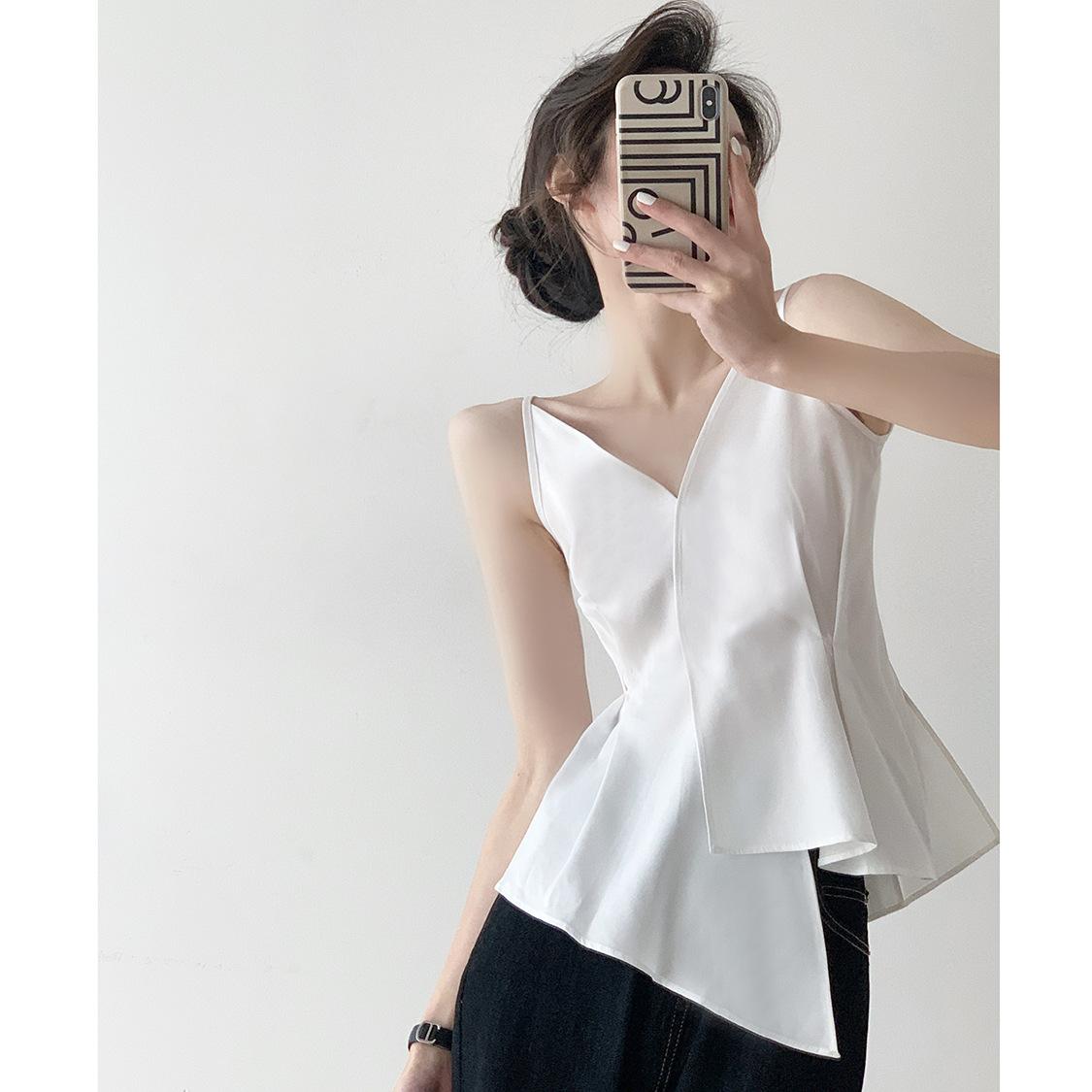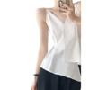 Camisola Asimétrica de Moda para Mujer Verano 2025 Diseño Nicho Blanco Sin Mangas Cuello en V Top Ins Pequeño de Moda