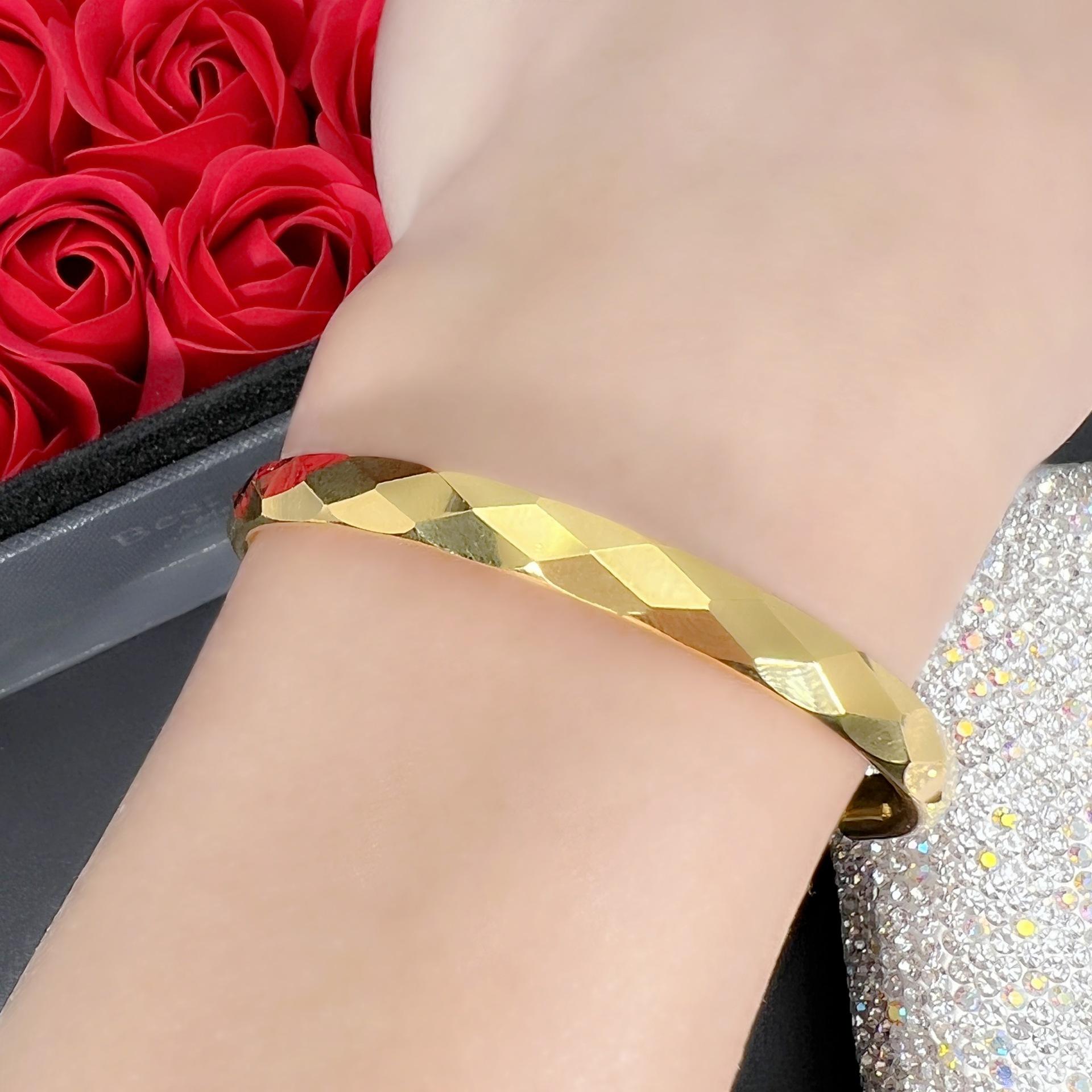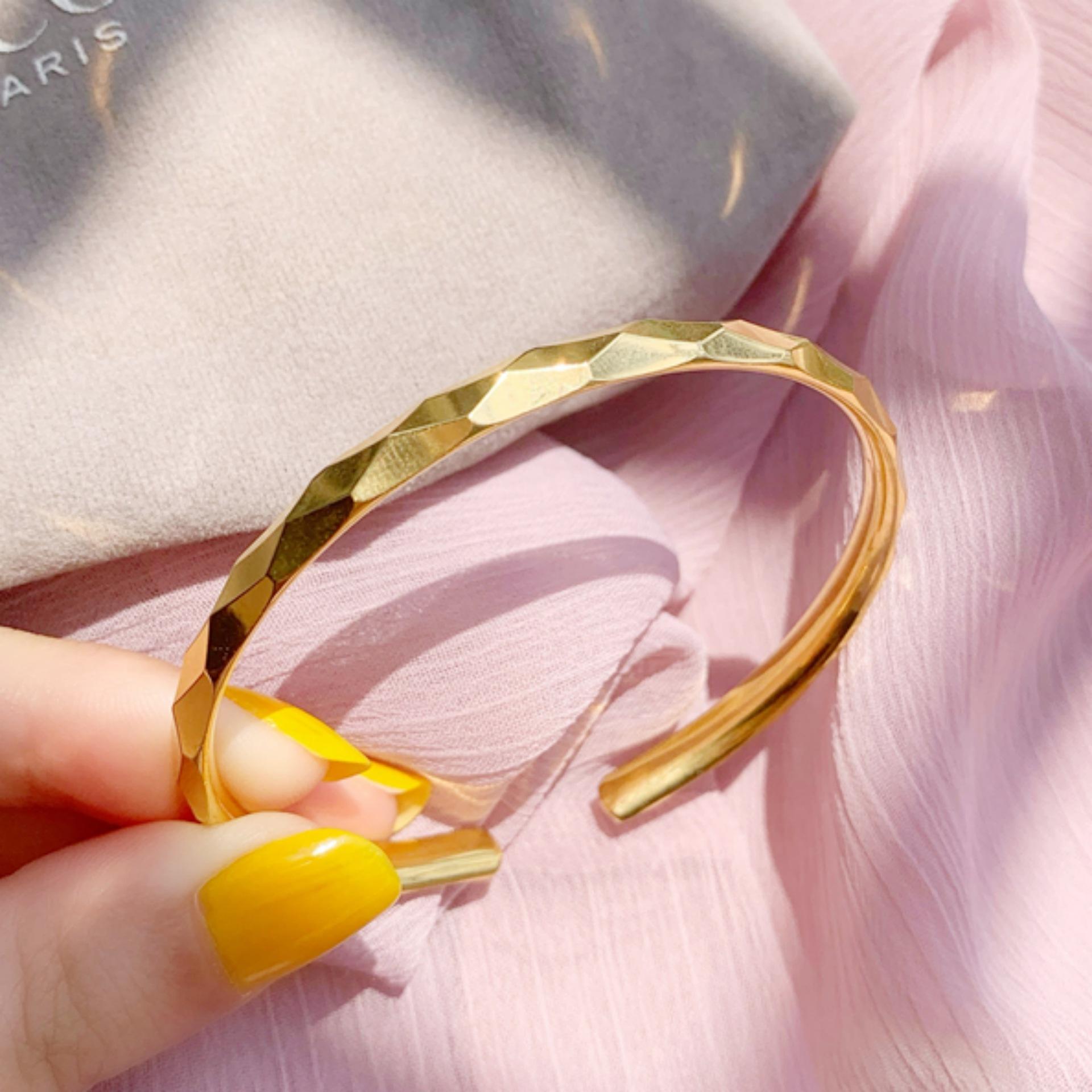 Diseño Abierto, Simple Elegante, Pulsera Cubo de Agua, Pulsera Cuadrada Romboidal Chapada en Oro, Pulsera Moderna y Versátil