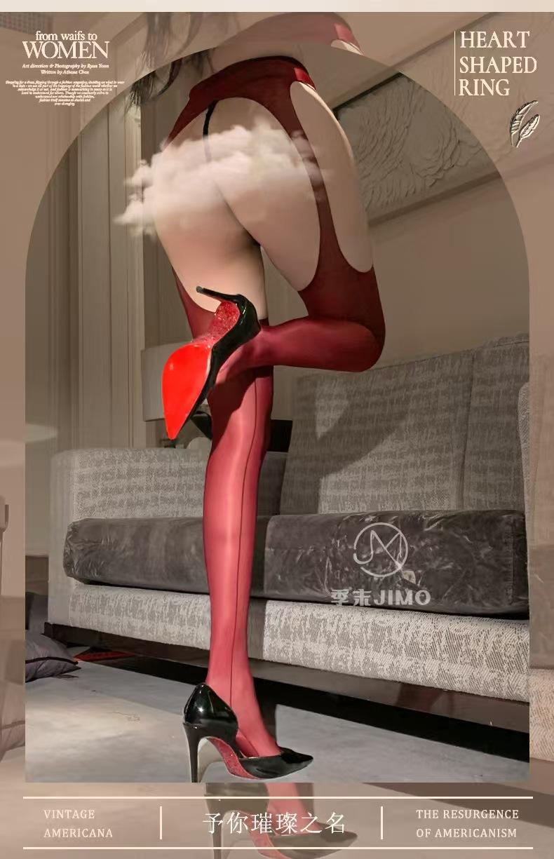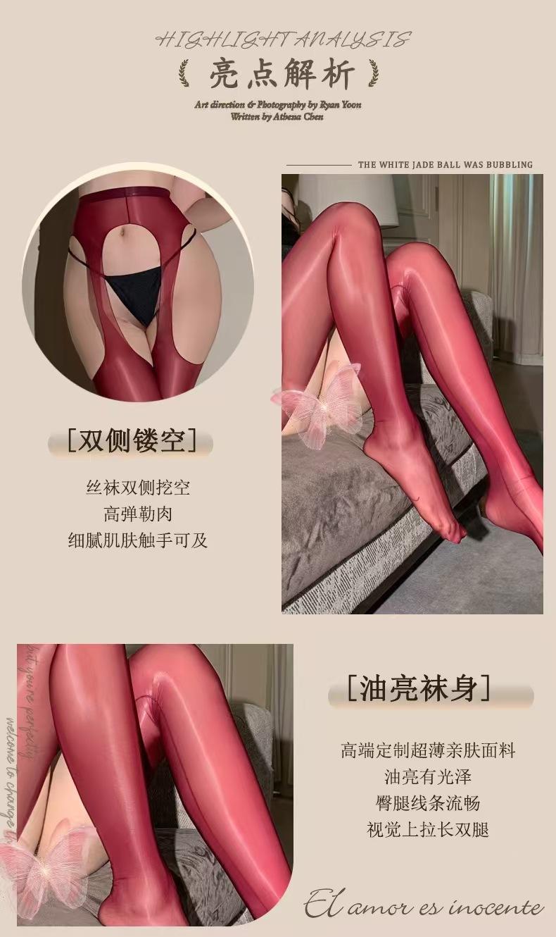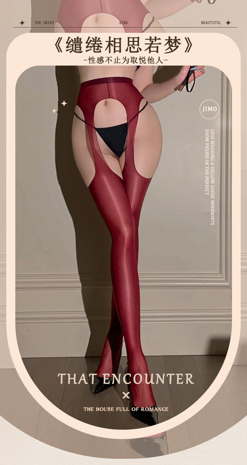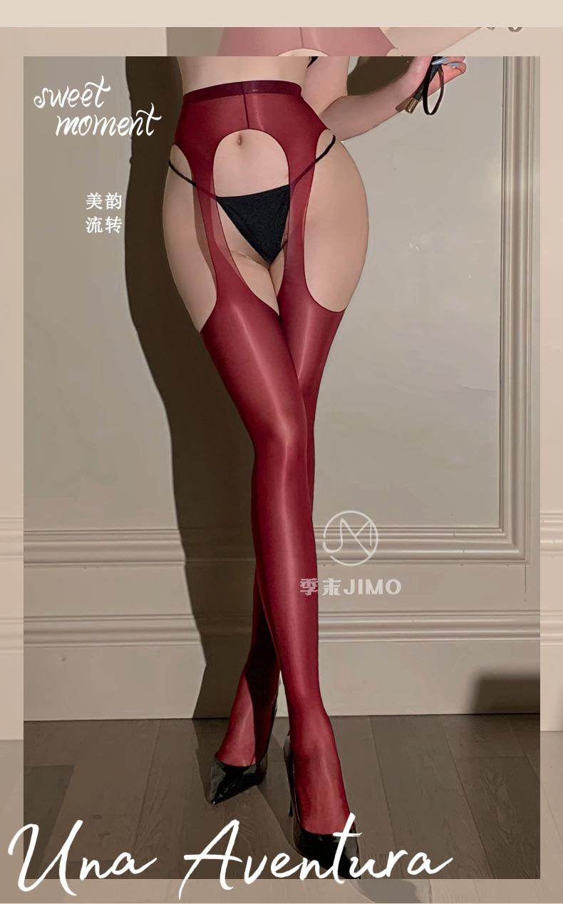 Fin de Temporada "Sombra Flotante Ultrafina" Calcetines Rojos Ankora Brillantes Aceitosos Huecos por Cuatro Lados Liguero Todo en Uno Calcetines Sexy Negros para Mujer