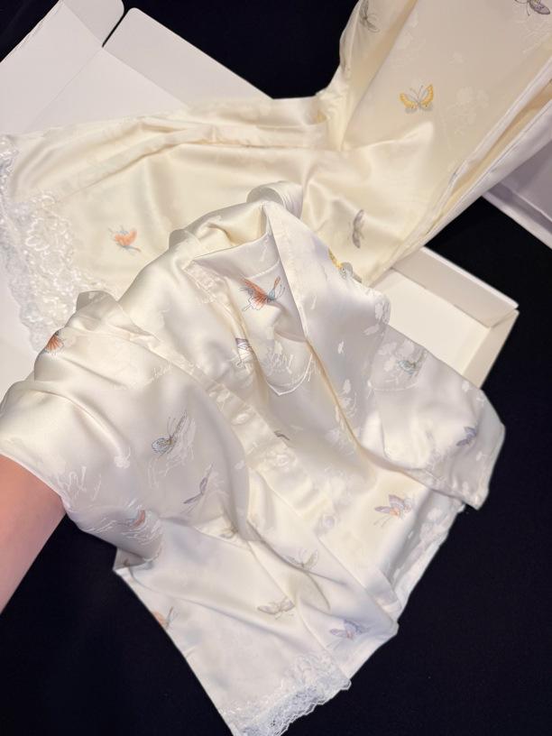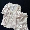 Pijama de Encaje Dulce Delicado Lindo de Seda de Hielo de Manga Corta para Mujer Verano Nuevo Shorts Ropa para el Hogar Conjunto de Tres Piezas