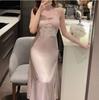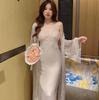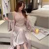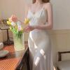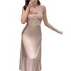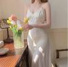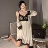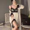 Pijamas Sexy para Mujer Primavera y Verano Cinta de Hielo Almohadilla para el Busto Encaje Lujuria Pura Camisón con Tirantes Conjunto de Dos Piezas Espalda Hermosa Camisón Largo