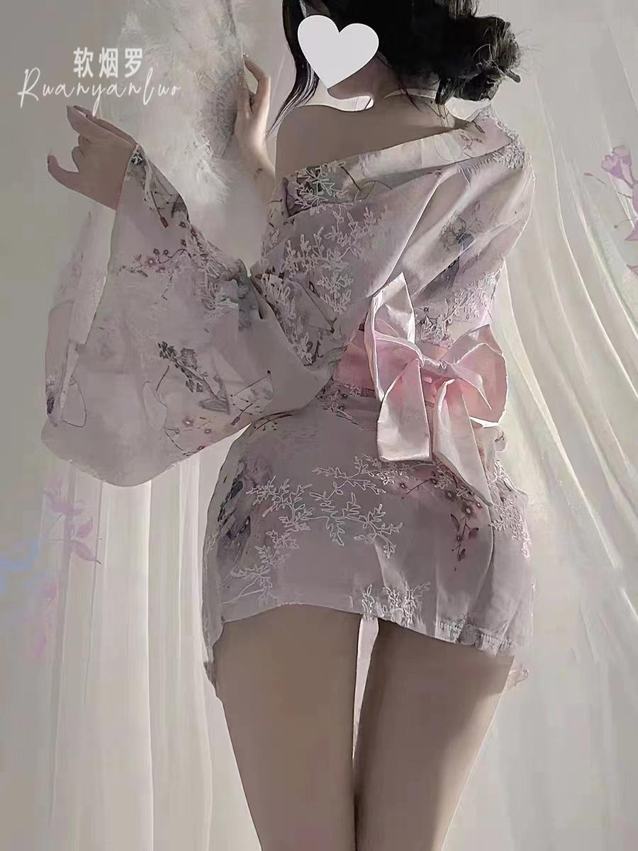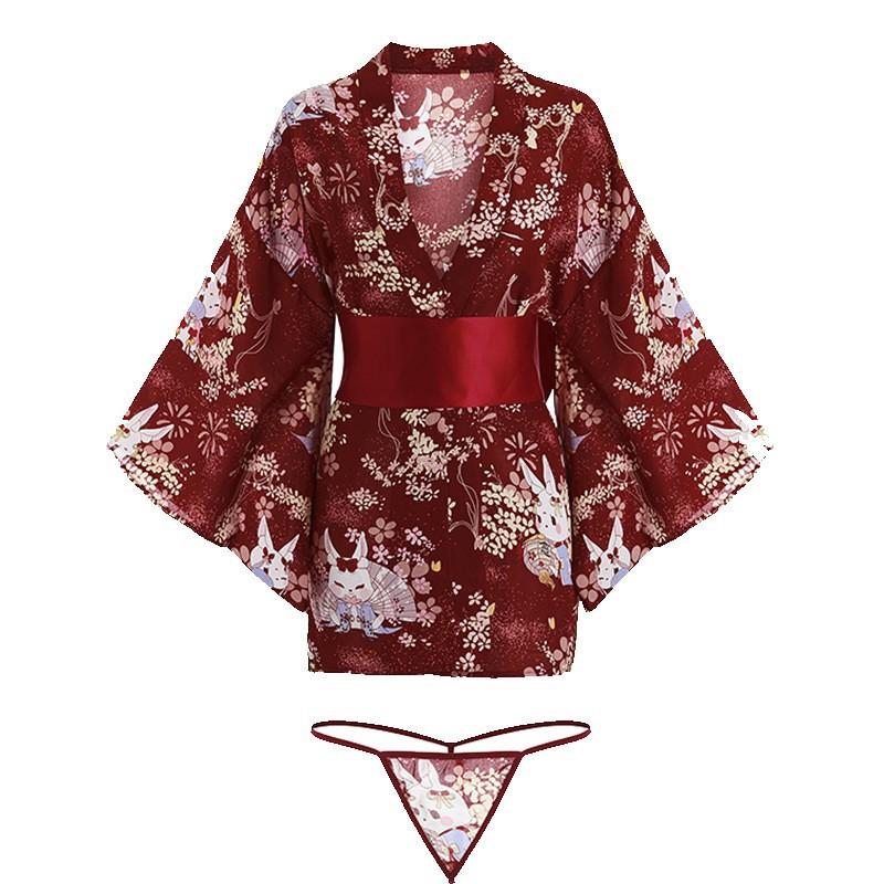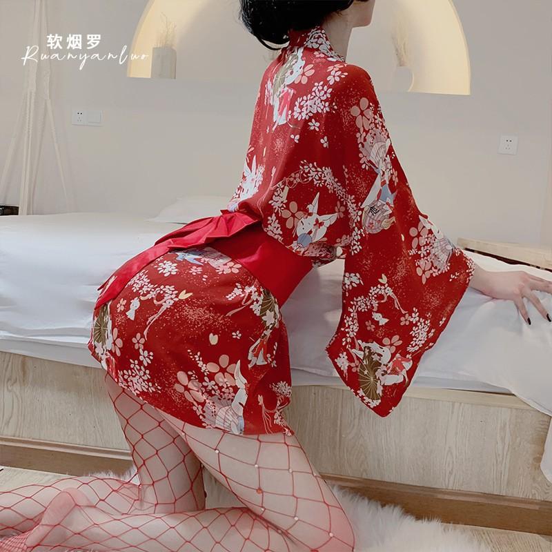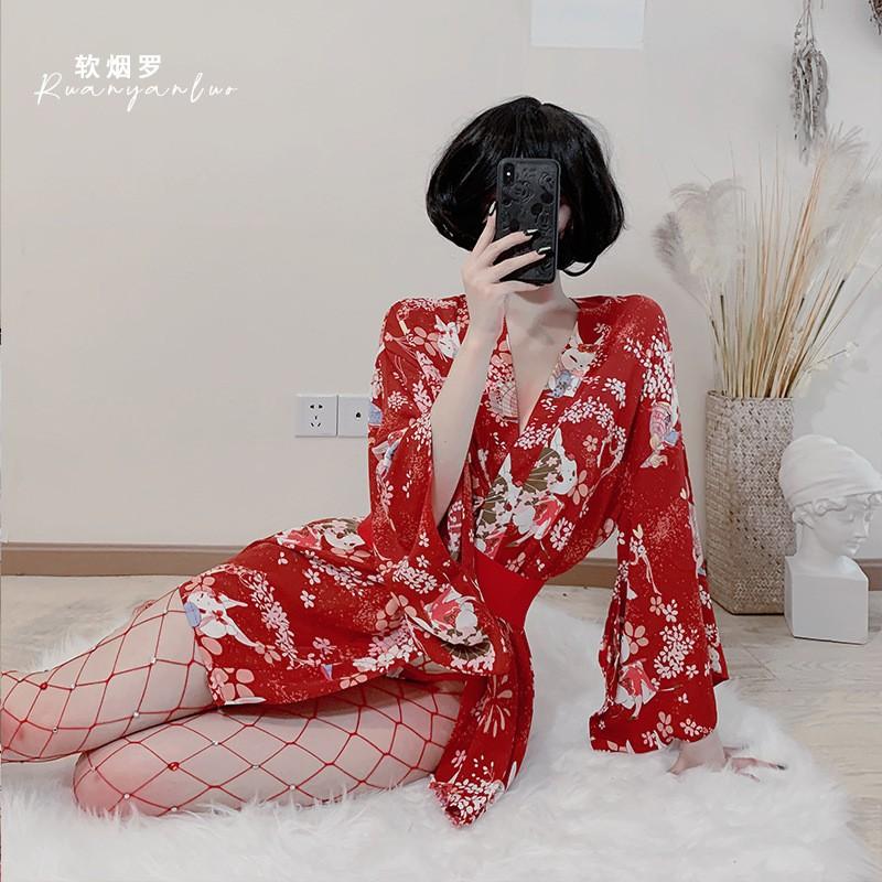 Lencería Sexy Kimono Sexy Escote V Profundo Tentación Estilo Japonés Estampado Kimono Fino Traje de Cama Uniforme Venta al por Mayor