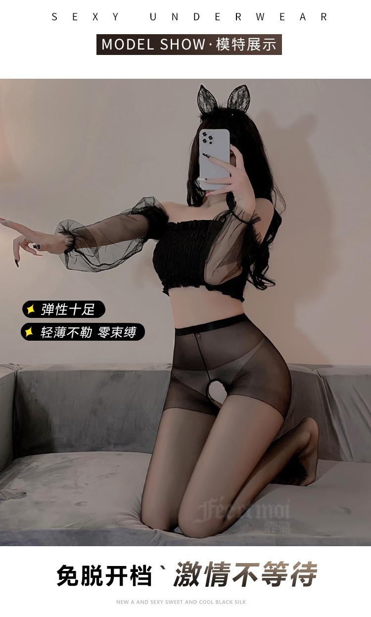 ◆Talla única◆Negro【Medias de una pieza con entrepierna abierta】 6937486673050 (precio limitado 19,9)