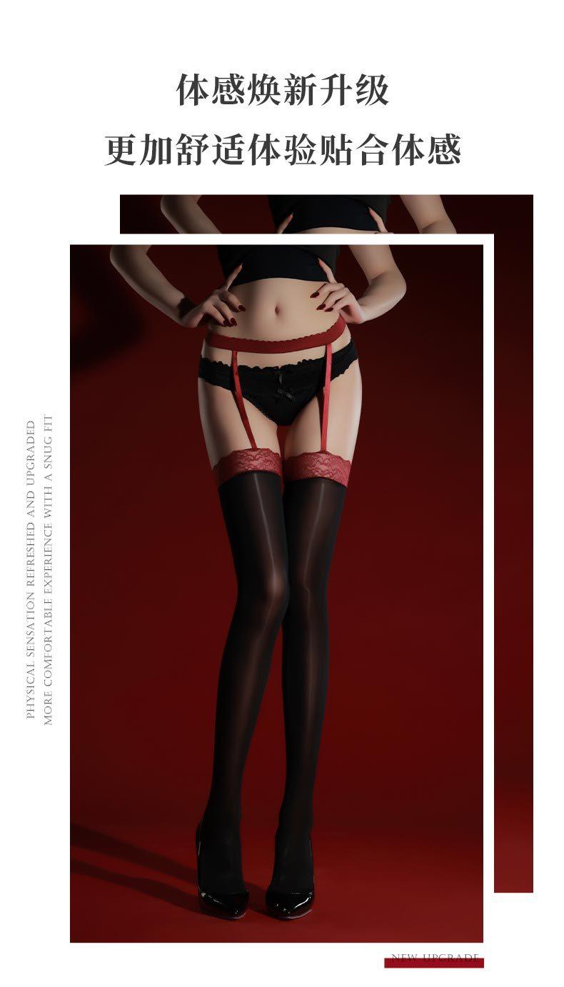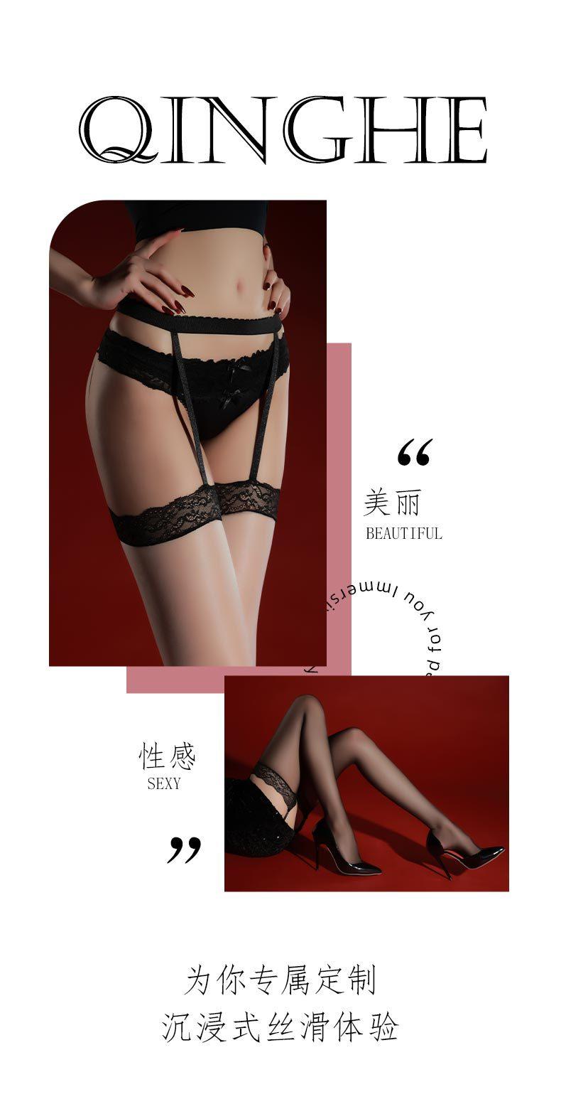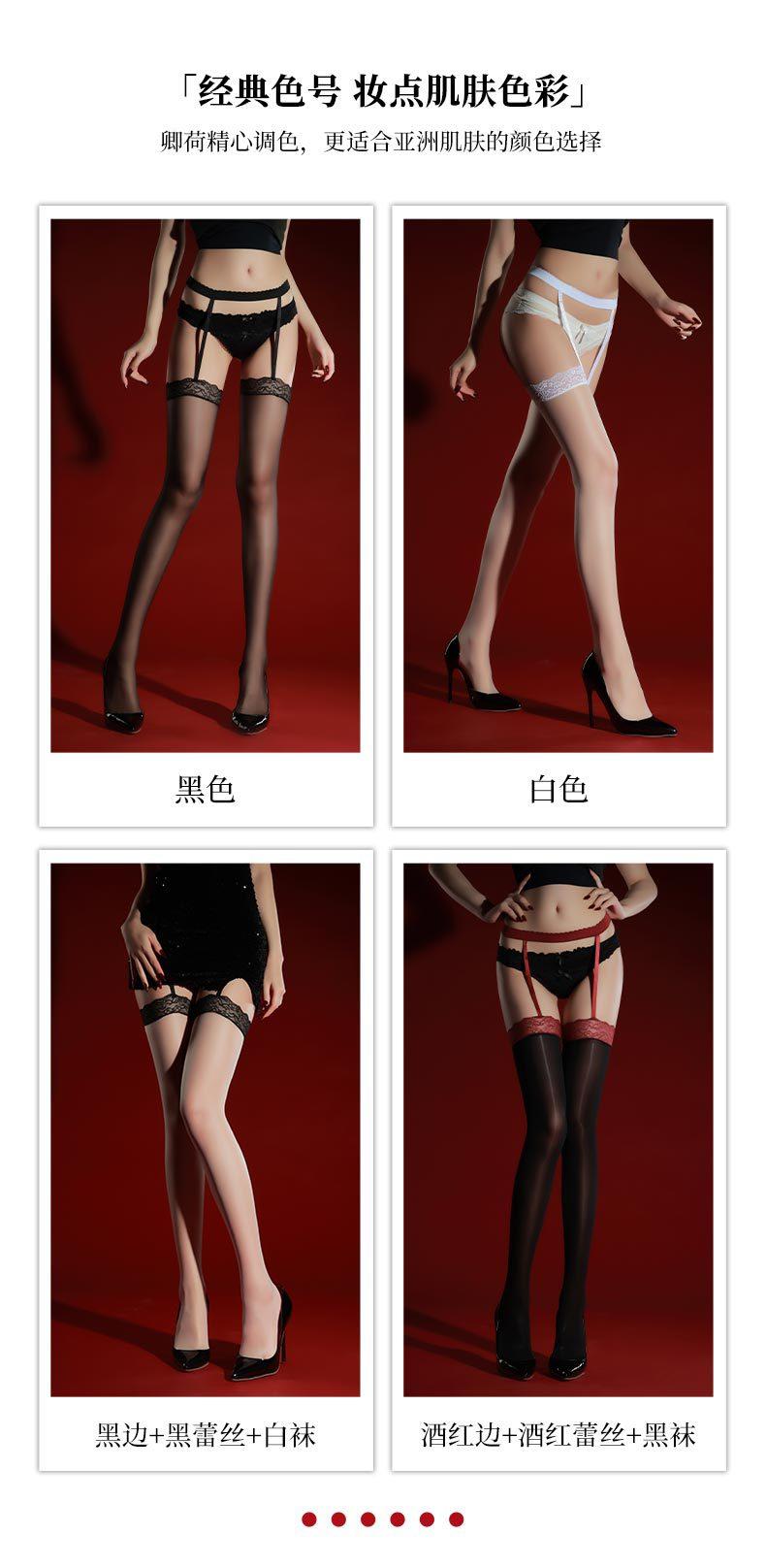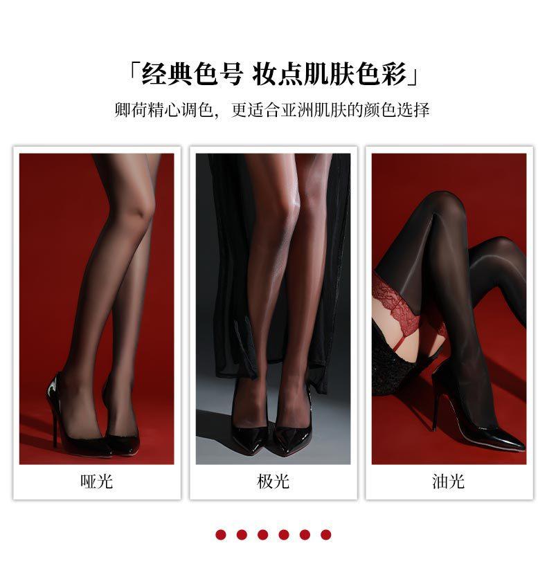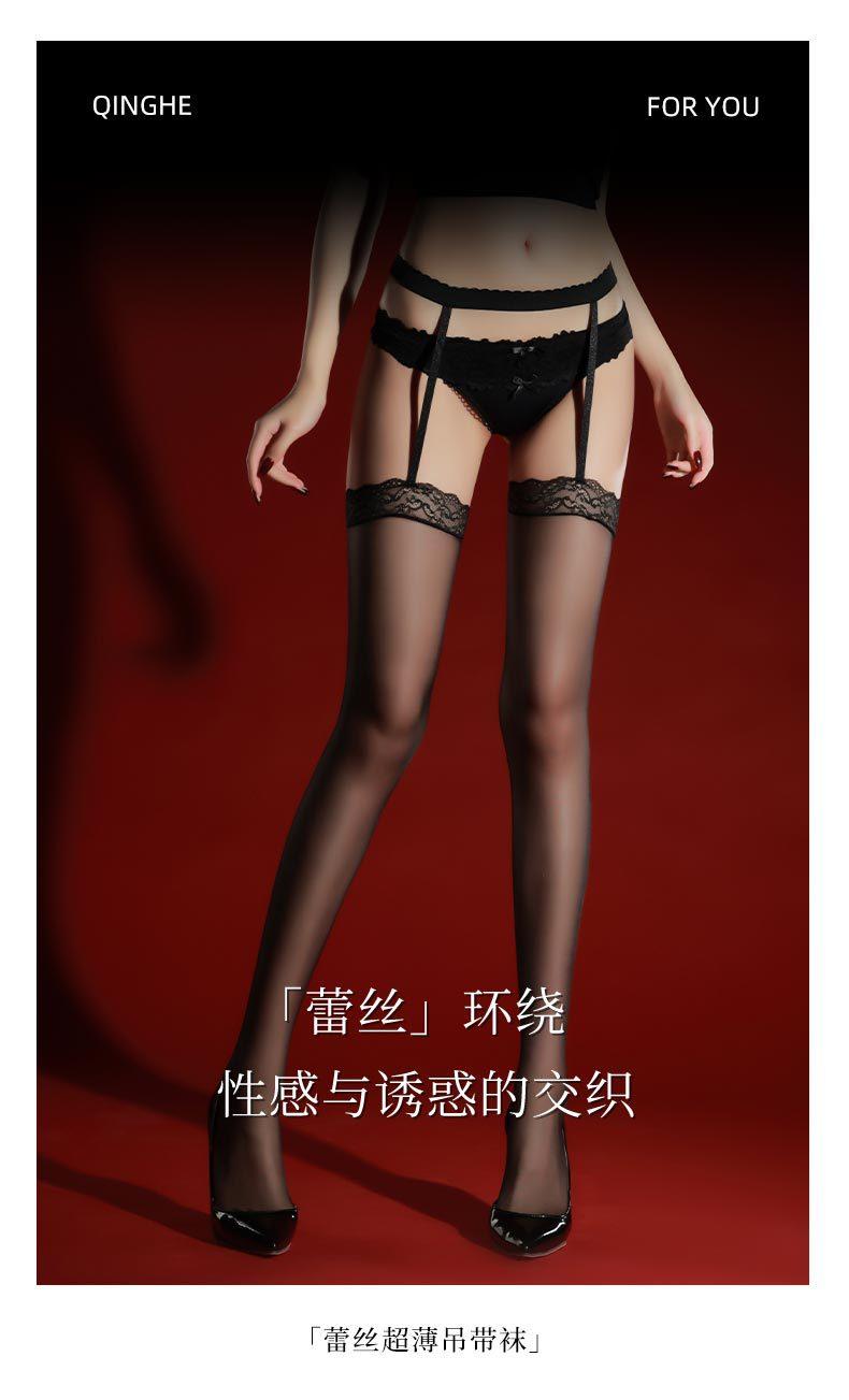 Qinghe medias de tirantes sexys encaje ultrafino de una pieza calcetines de aceite de caballo para mujer aceite aurora brillante tubo largo contraste seda negra