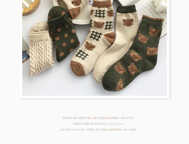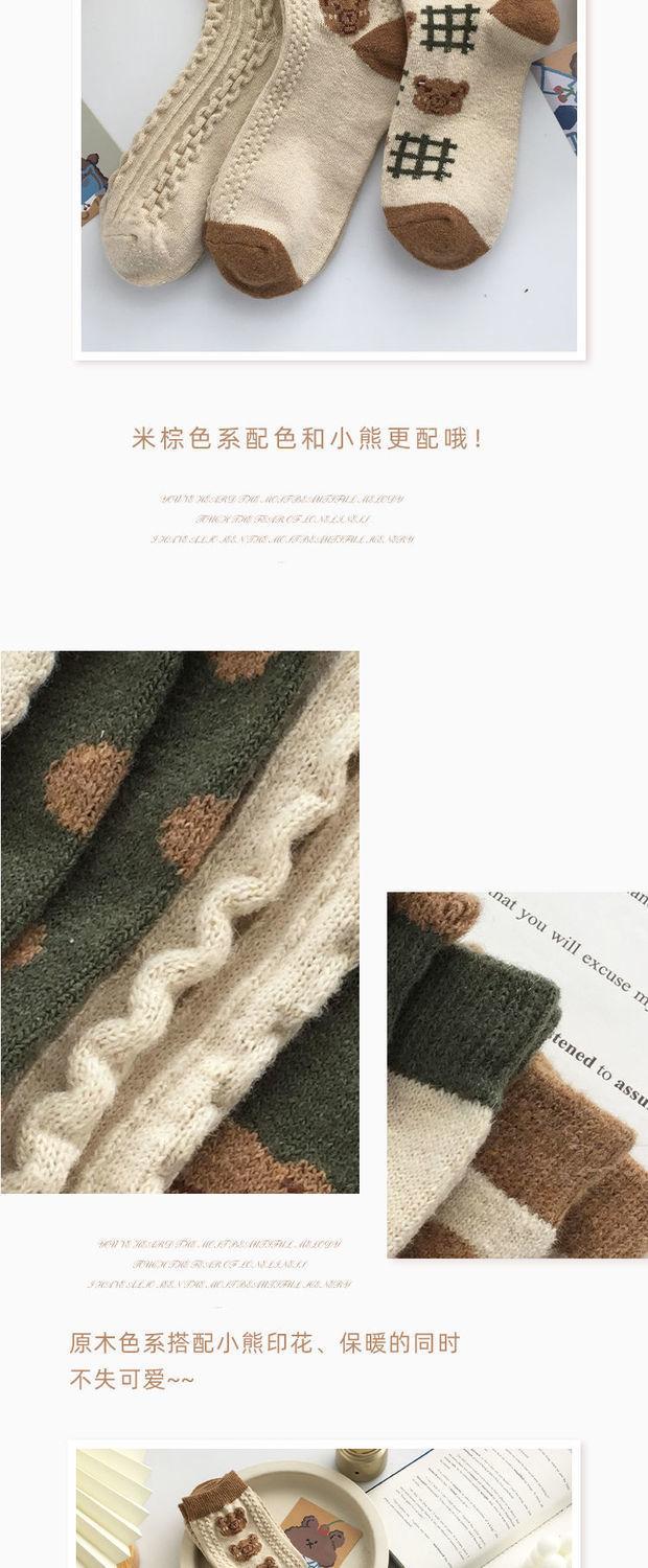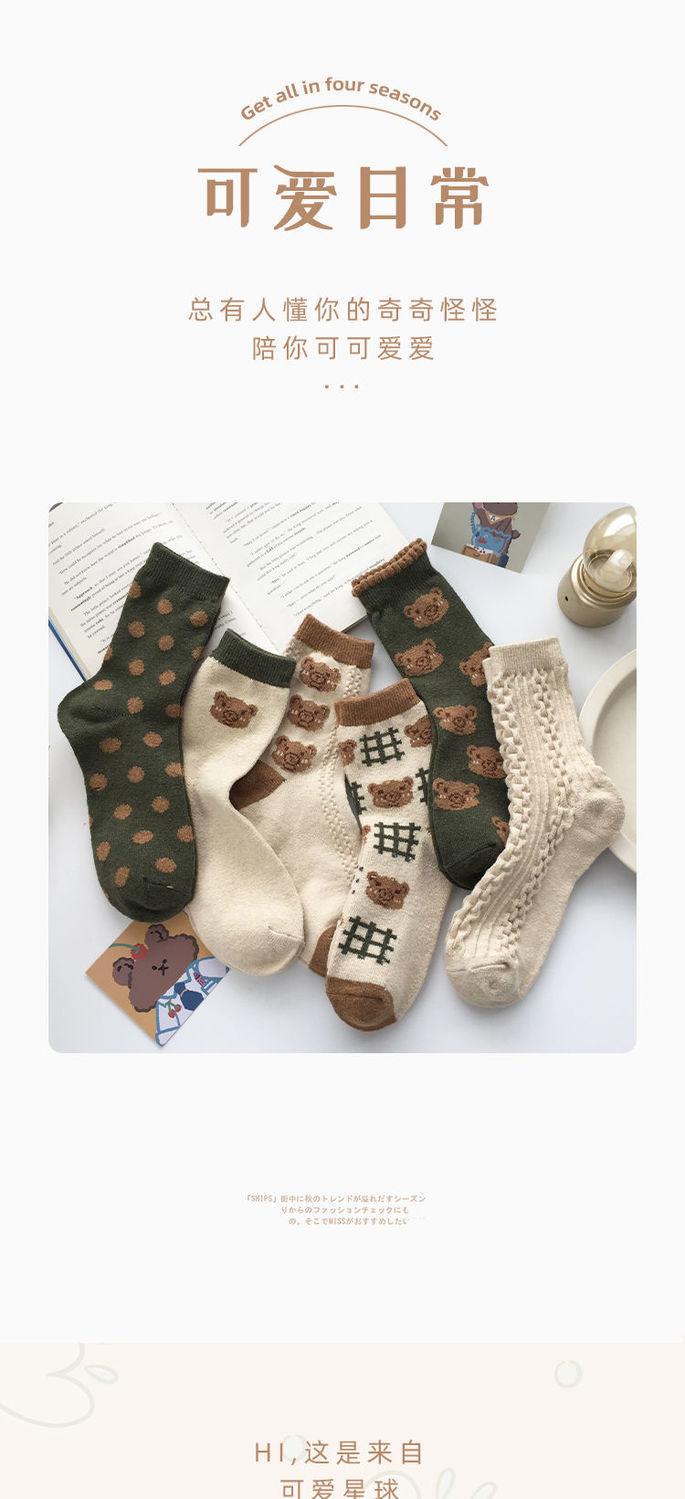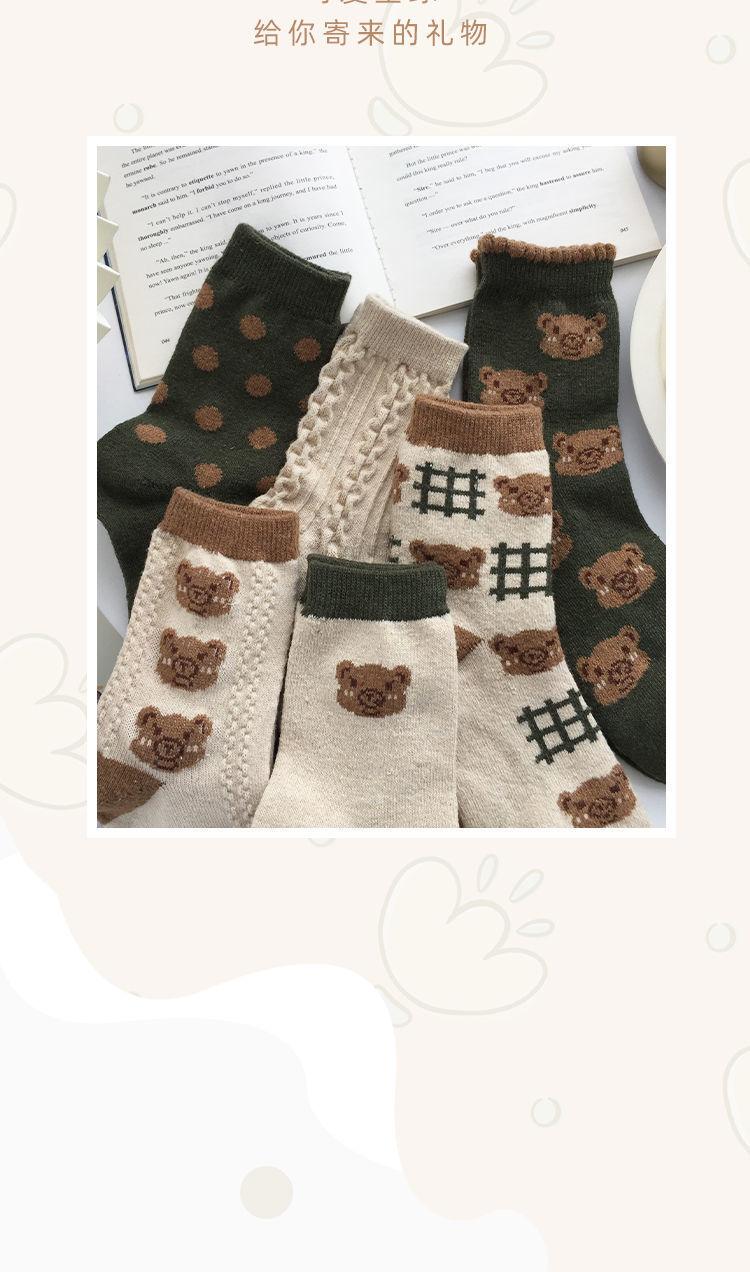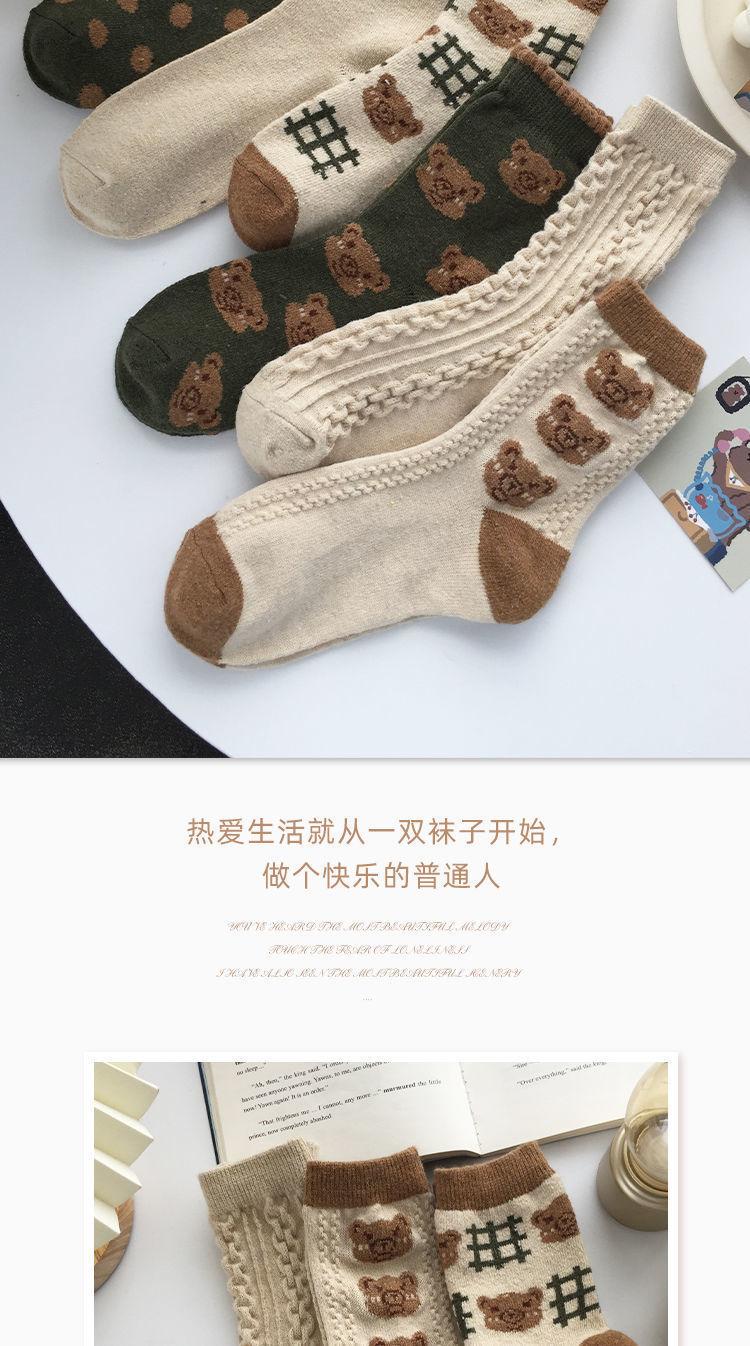 Calcetines casuales de otoño e invierno para estudiantes, transpirables, absorbe sudor, con caricatura de oso, largo hasta media pantorrilla, estilo Maillard