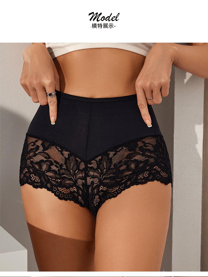 Ropa interior para mujer de talla grande europea y americana personalizada, ropa interior de encaje de cintura alta y alta elasticidad, bóxer de algodón puro transpirable para mujer