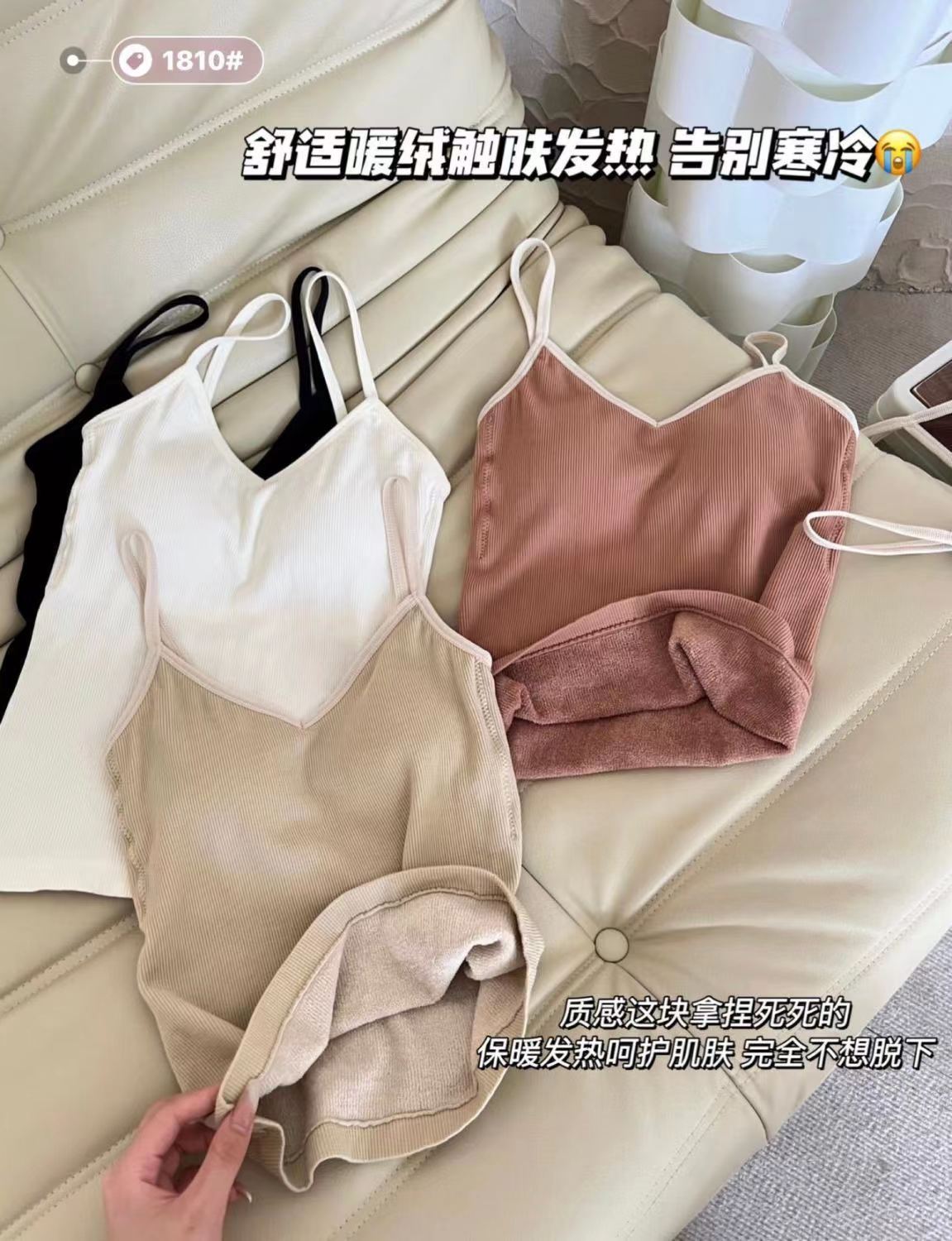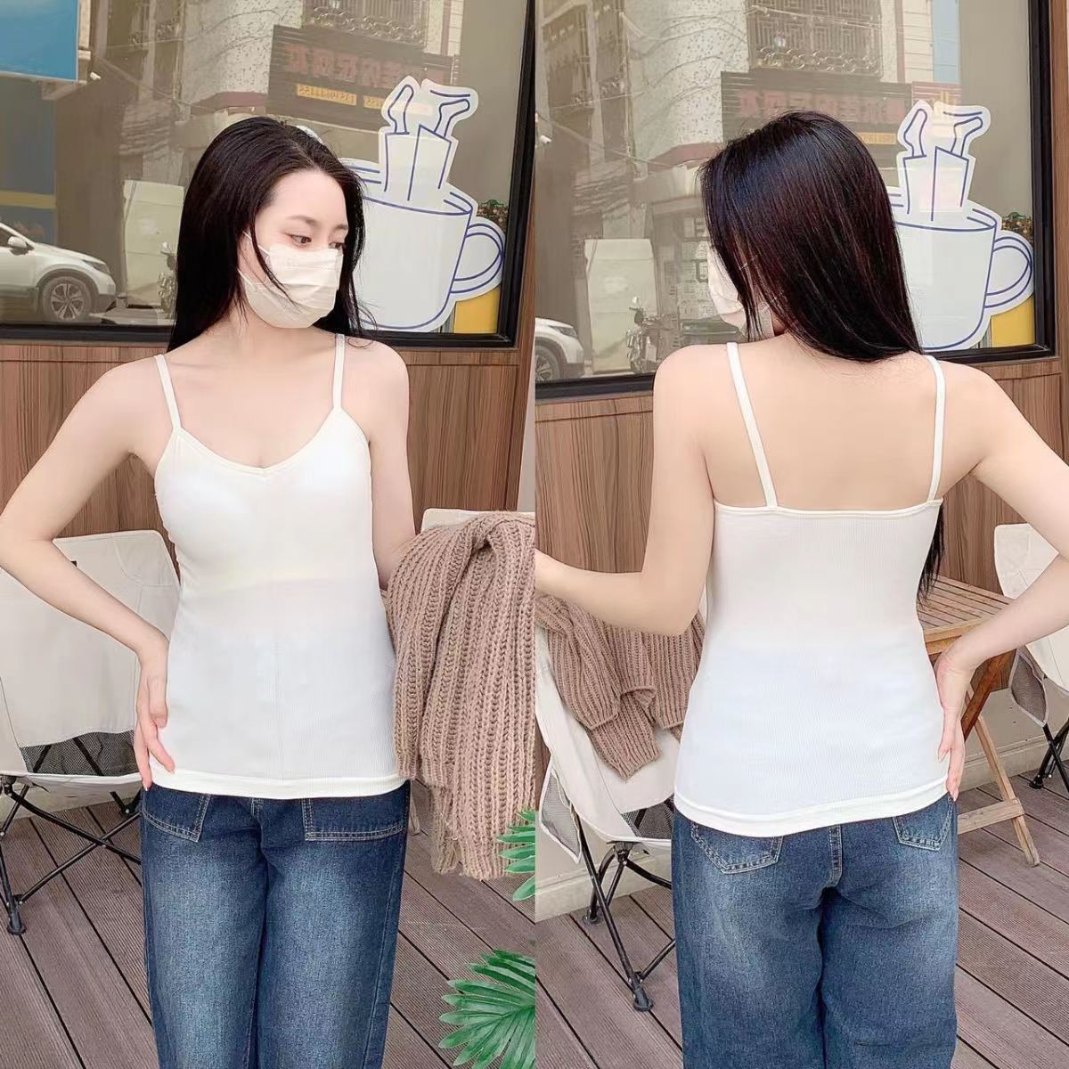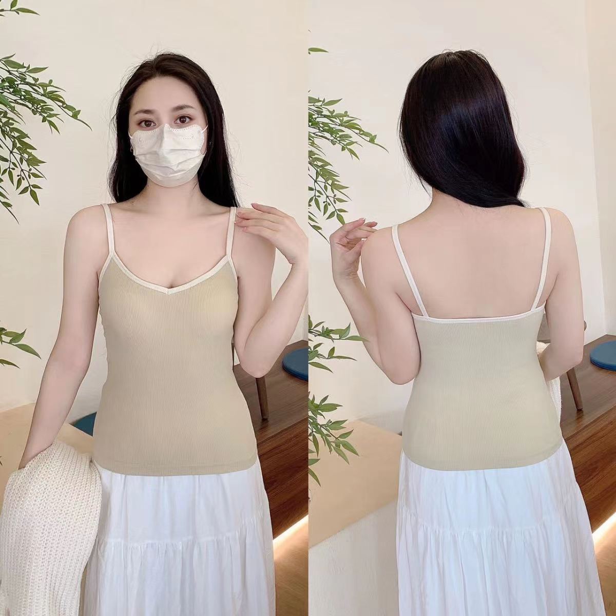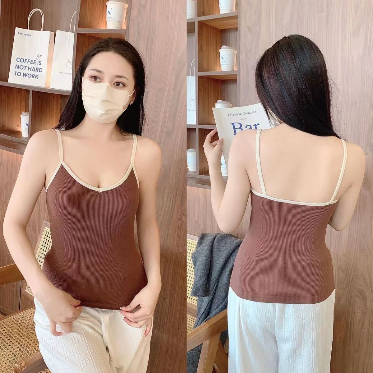Otoño e Invierno nuevo estilo cálido delgado tirante para mujer cuello en V color contraste chaleco cálido para llevar debajo con almohadilla en el pecho para llevar encima top ajustado
