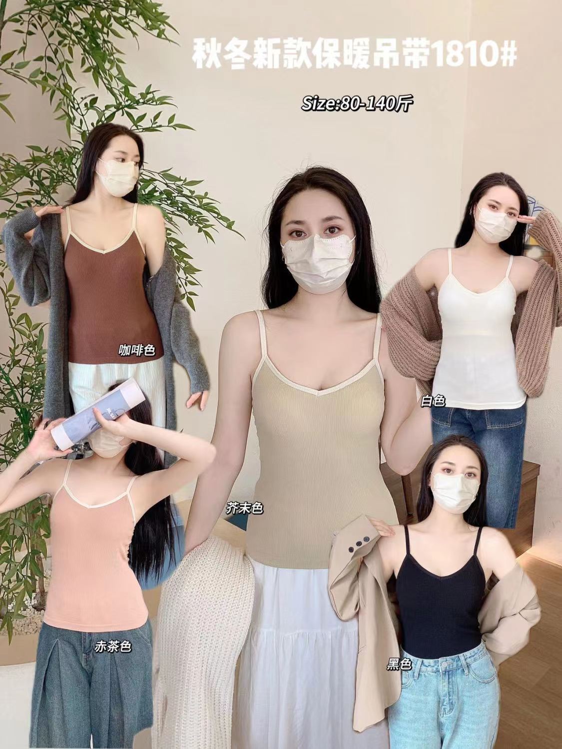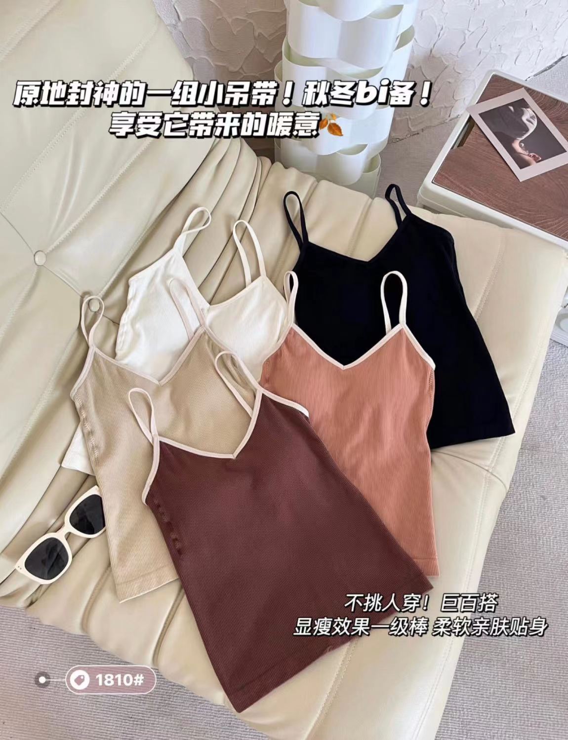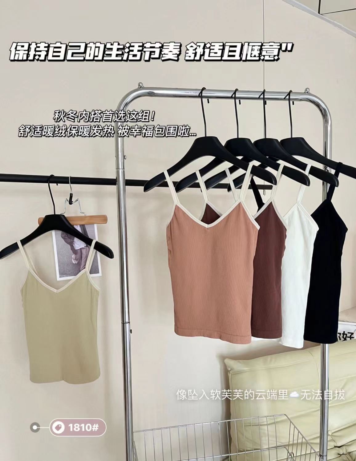 Otoño e Invierno nuevo estilo cálido delgado tirante para mujer cuello en V color contraste chaleco cálido para llevar debajo con almohadilla en el pecho para llevar encima top ajustado