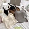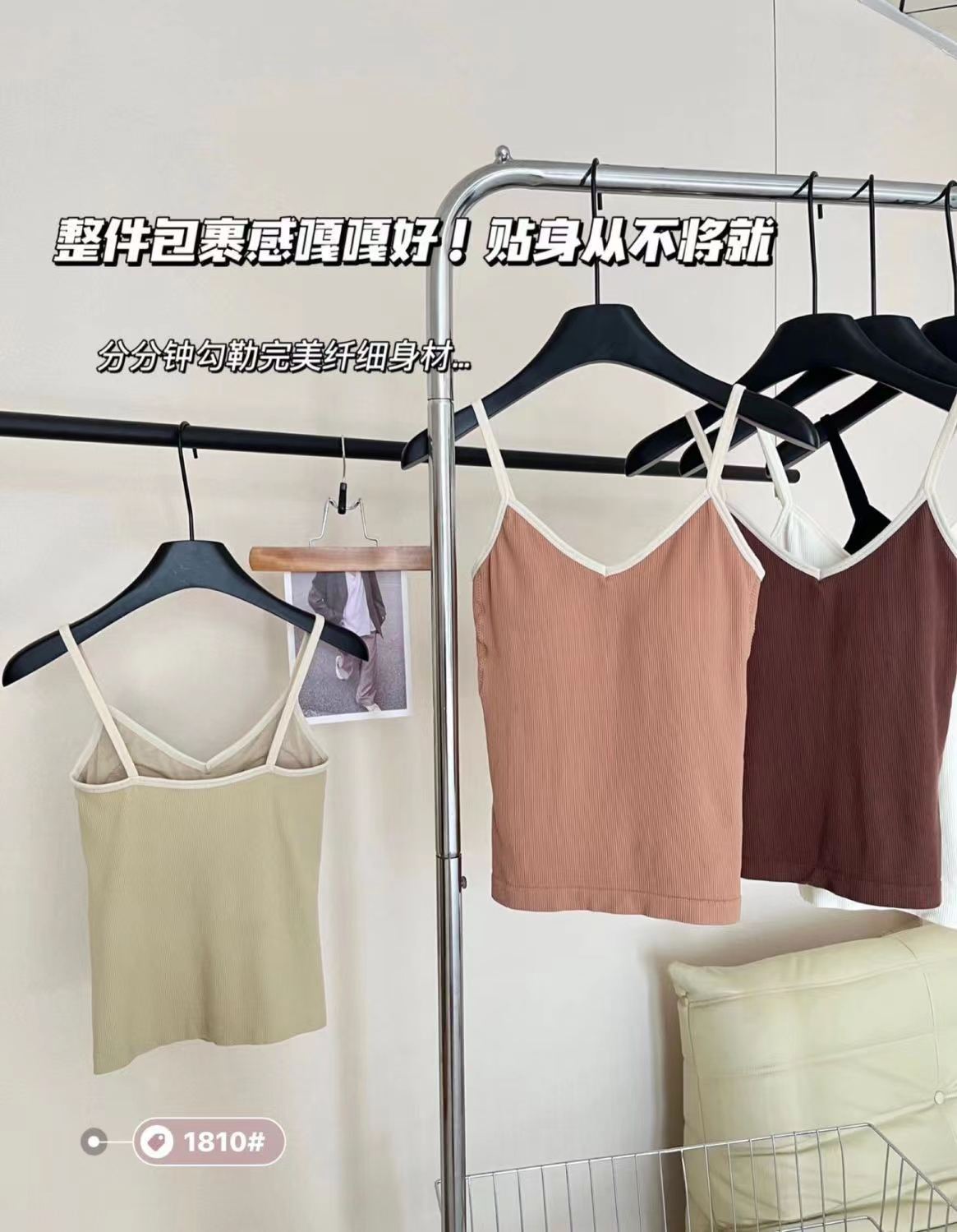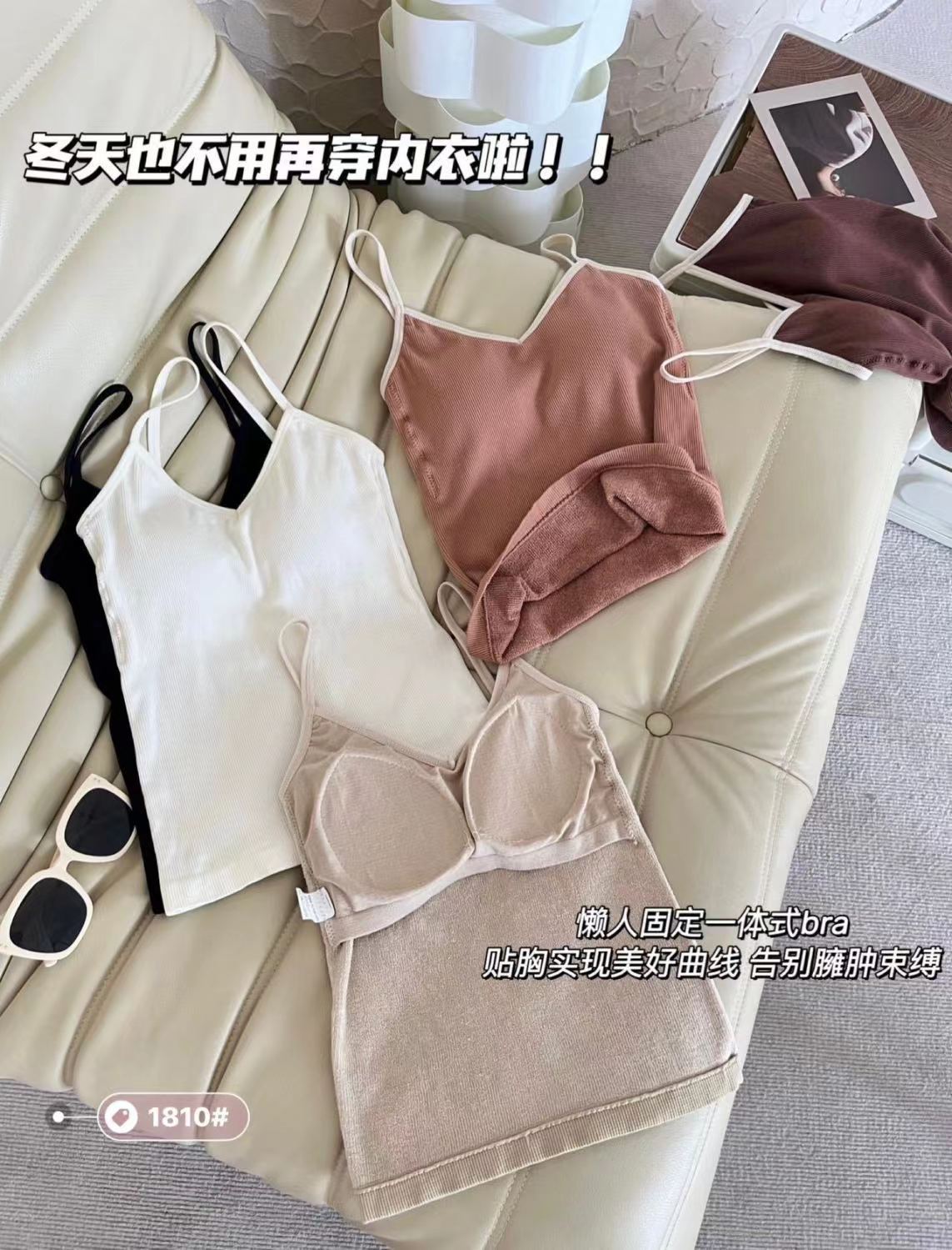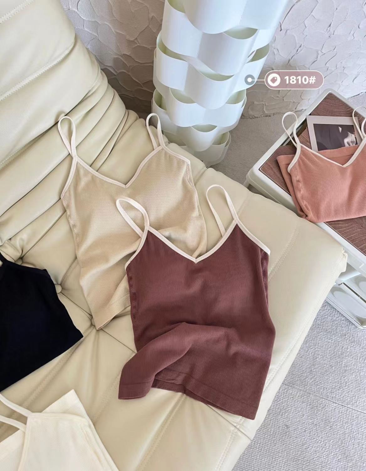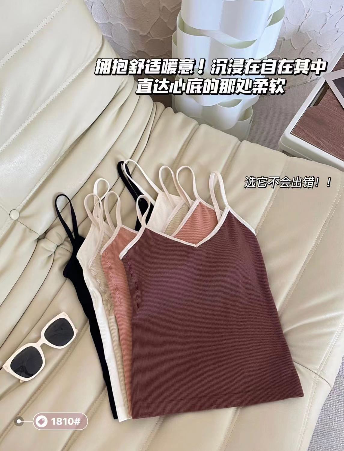 Otoño e Invierno nuevo estilo cálido delgado tirante para mujer cuello en V color contraste chaleco cálido para llevar debajo con almohadilla en el pecho para llevar encima top ajustado