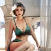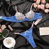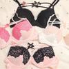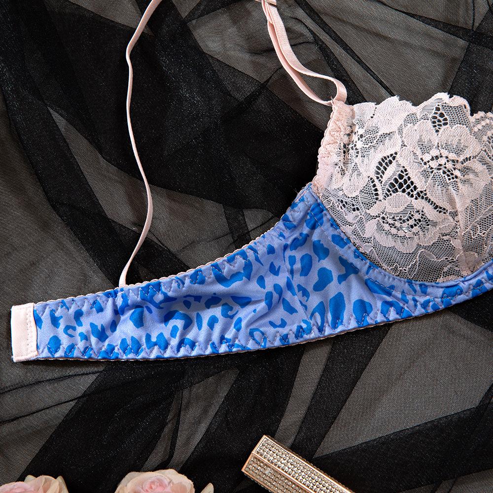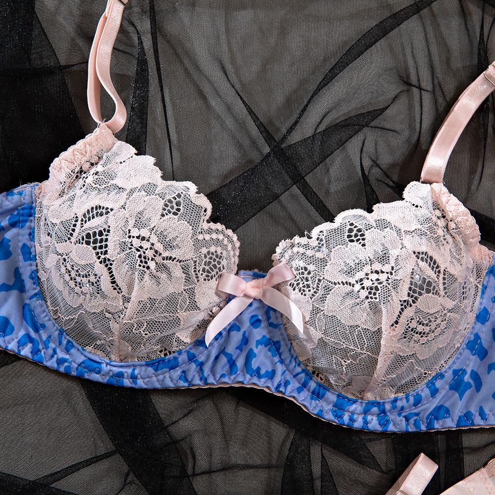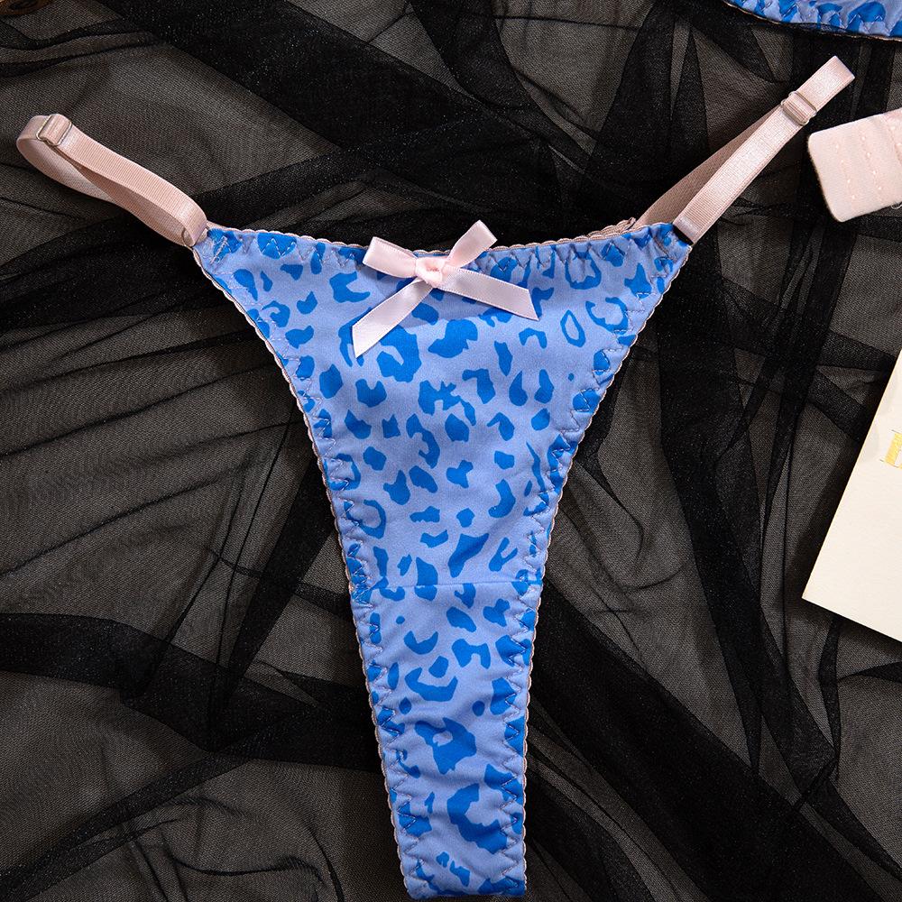 Saiya nuevo conjunto de ropa interior sexy ultrafino de encaje rosa claro con estampado de leopardo azul y aro de acero de gran venta