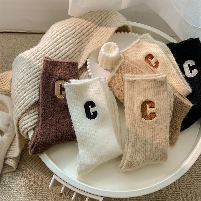 Calcetines de Lana Gruesos para Mujer Otoño e Invierno Nuevos Japoneses Ins Calcetines de Felpa de Cachemira Calcetines Cálidos