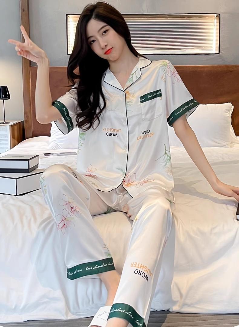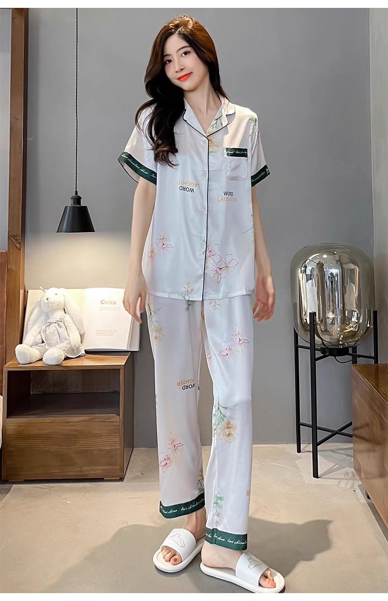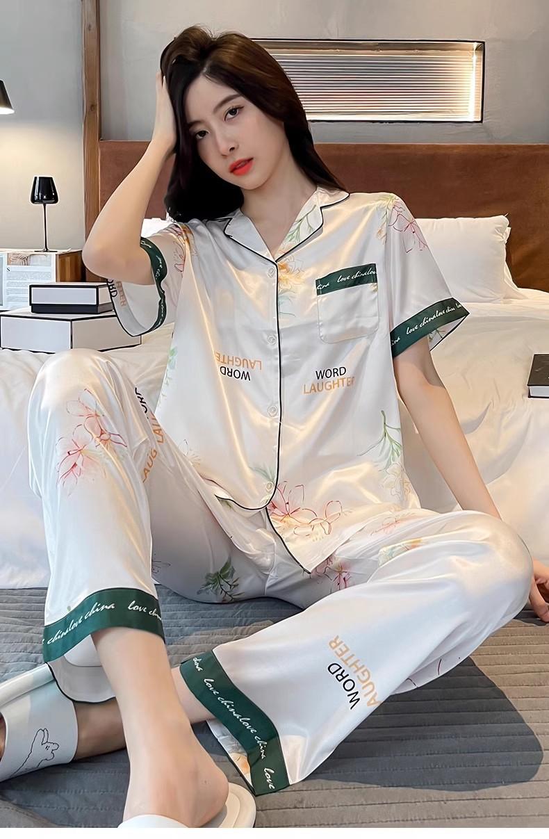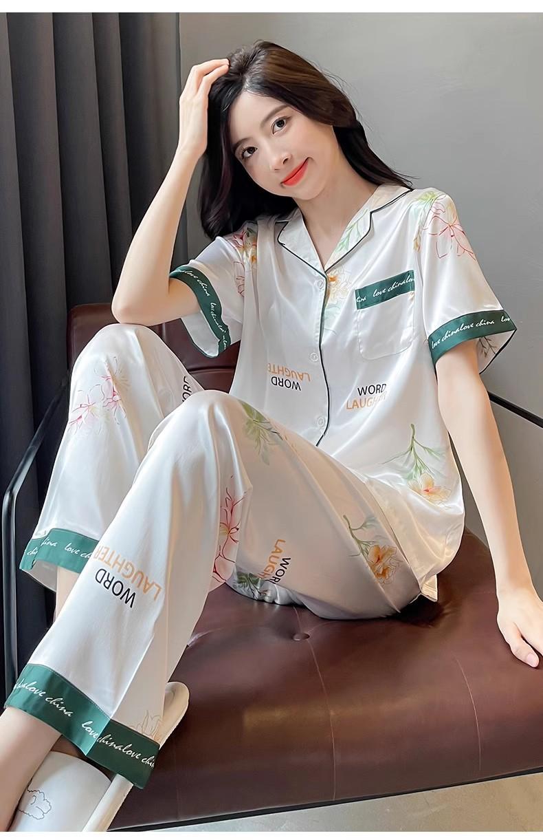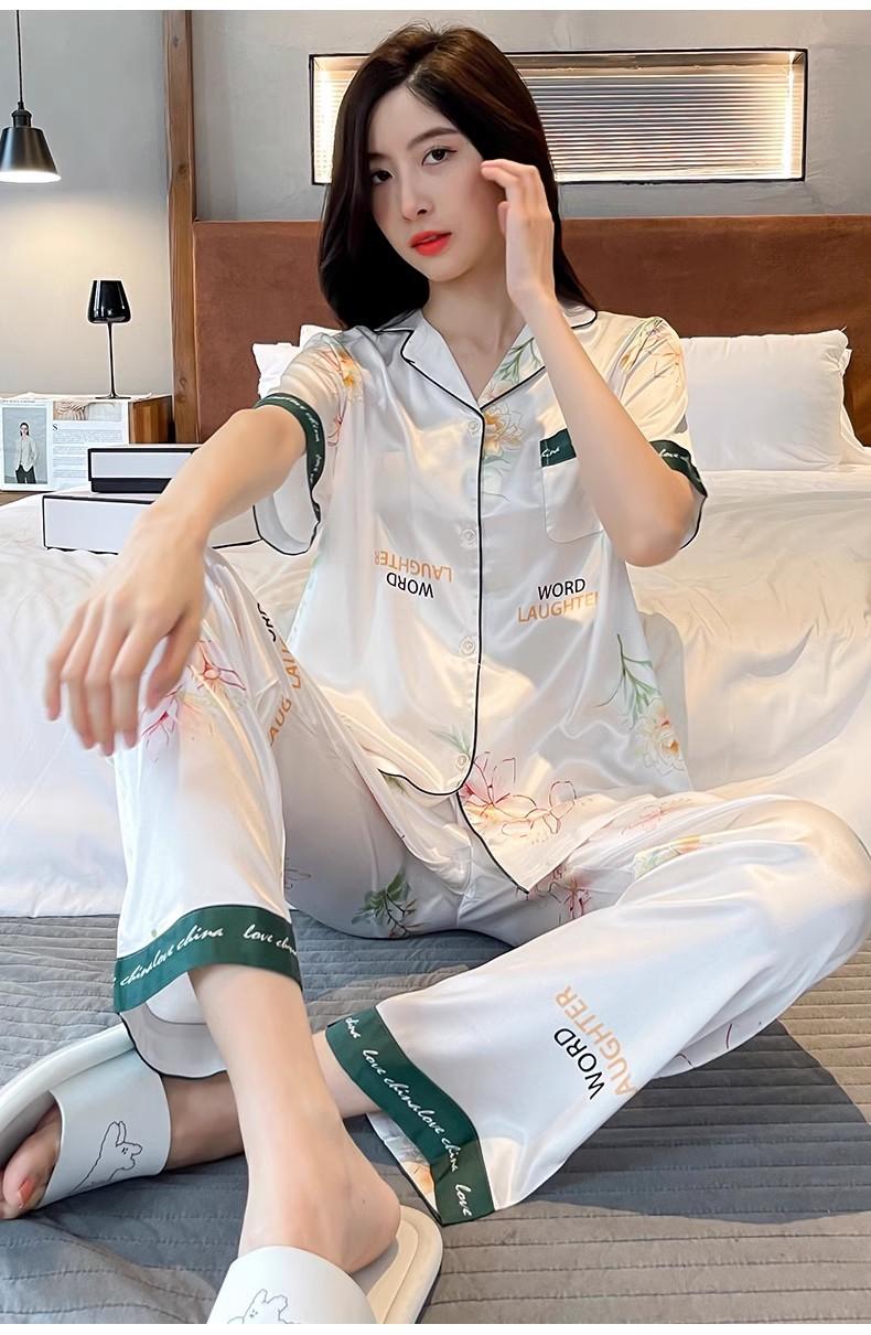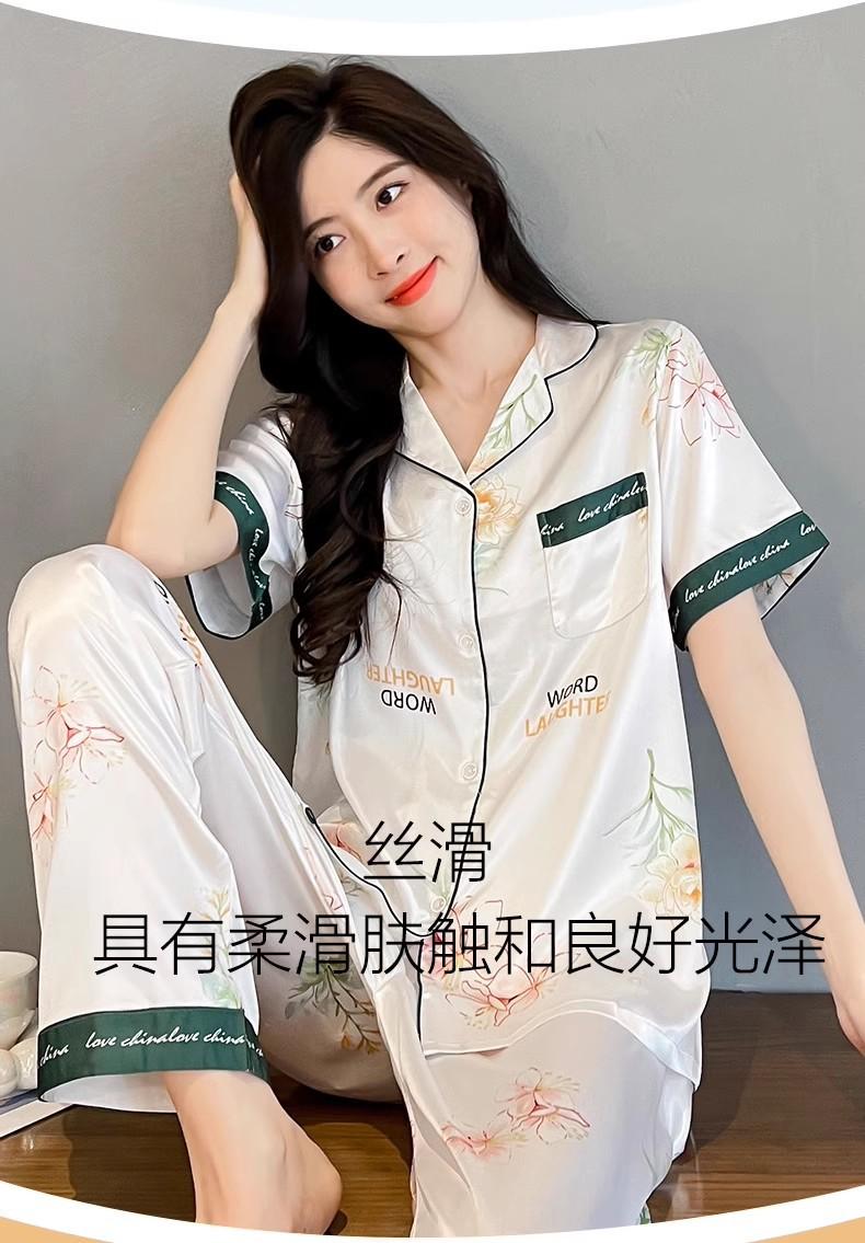 Pijamas para Mujer Verano Seda de Hielo Pantalones de Manga Corta 2025 Nuevo Estilo Popular de Seda Verano Delgada Conjunto de Ropa para el Hogar