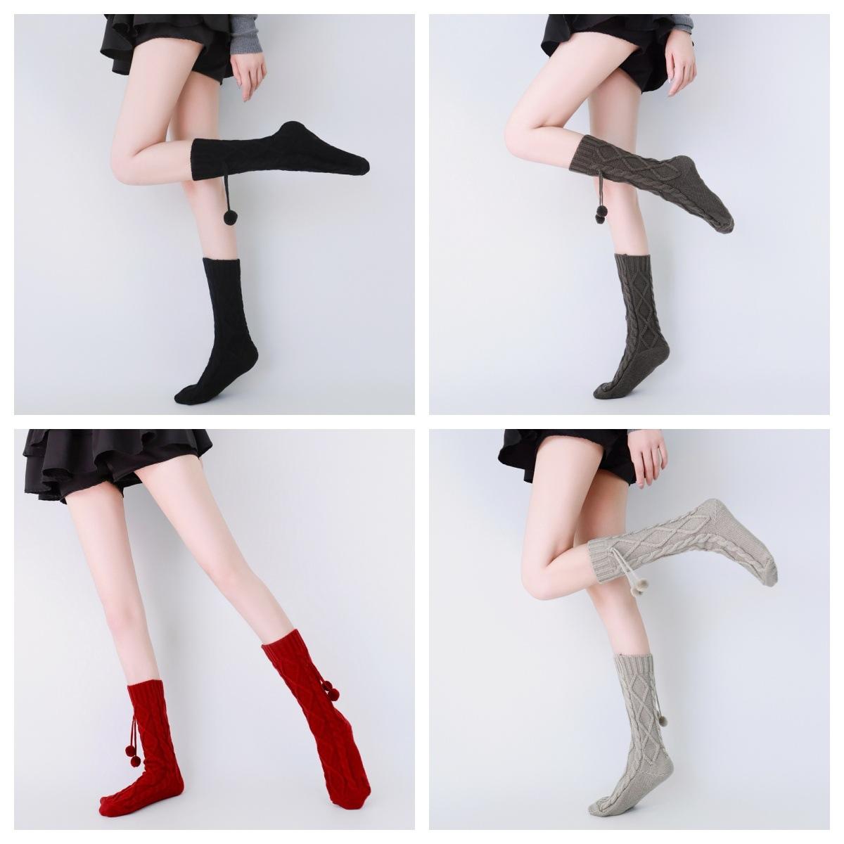 Calcetines Acrílicos de Media Caña Nuevos de Otoño e Invierno Calcetines Tejidos Slouch de Media Caña Europeos y Americanos Calcetines de Diamantes de Bola Calcetines Dulces