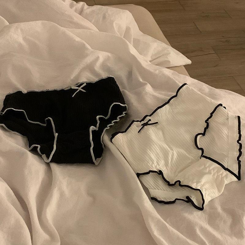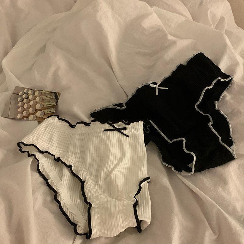 Ropa Interior de Algodón Simple Estilo Japonés para Mujer Antibacteriana Cintura Media Suave y Cómoda Calzoncillos Transpirables de Color Puro con Lazo para Niña