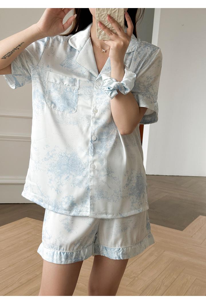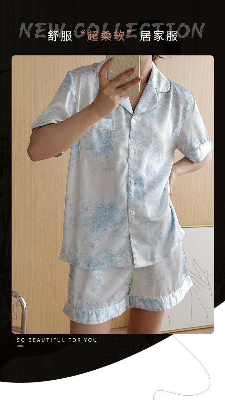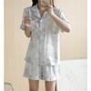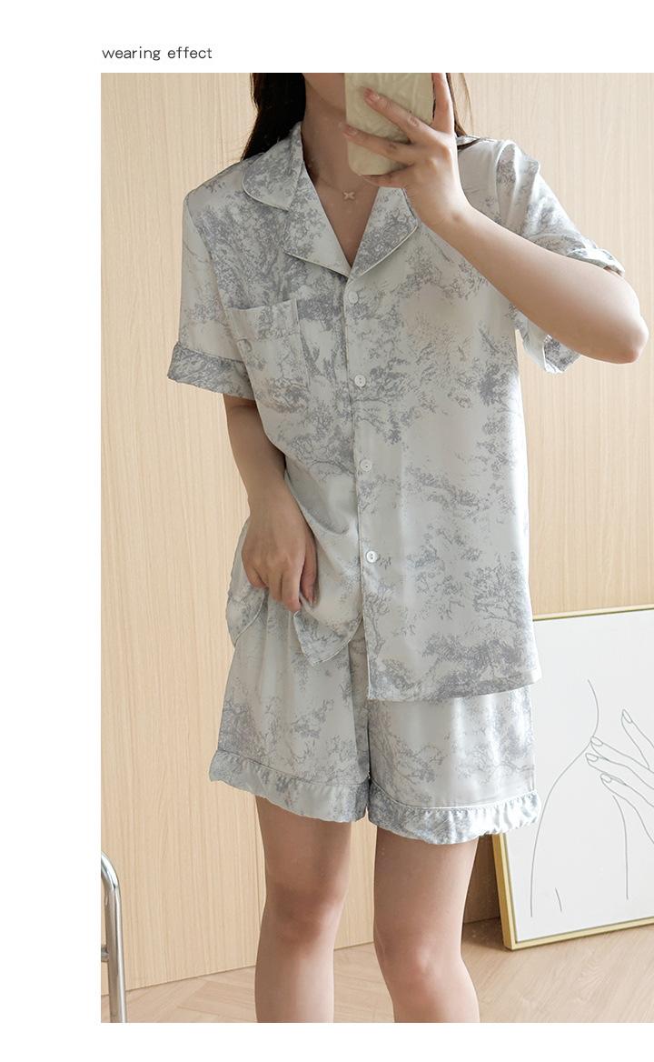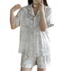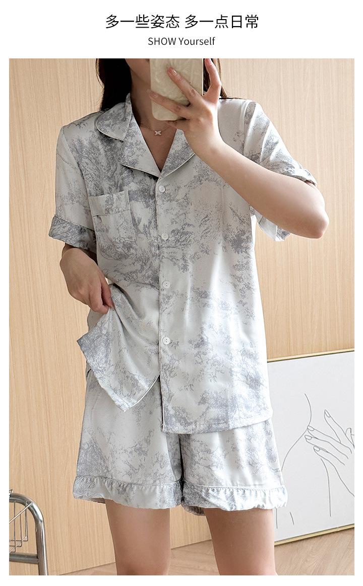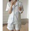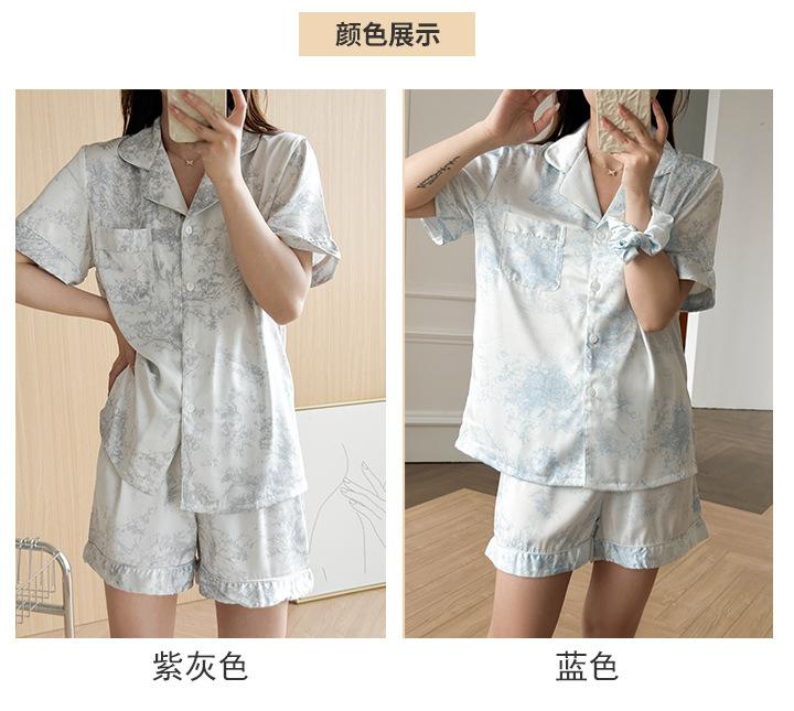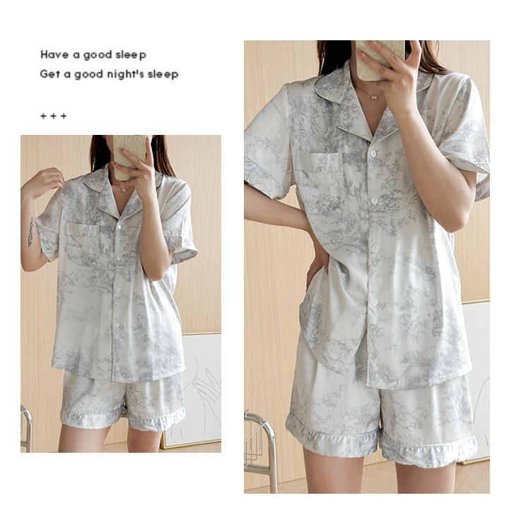 Verano Nuevo Pijama de Seda de Hielo para Mujer Cárdigan Delgado de Manga Corta Shorts Conjunto de Ropa Casual para el Hogar de Dos Piezas para Niñas