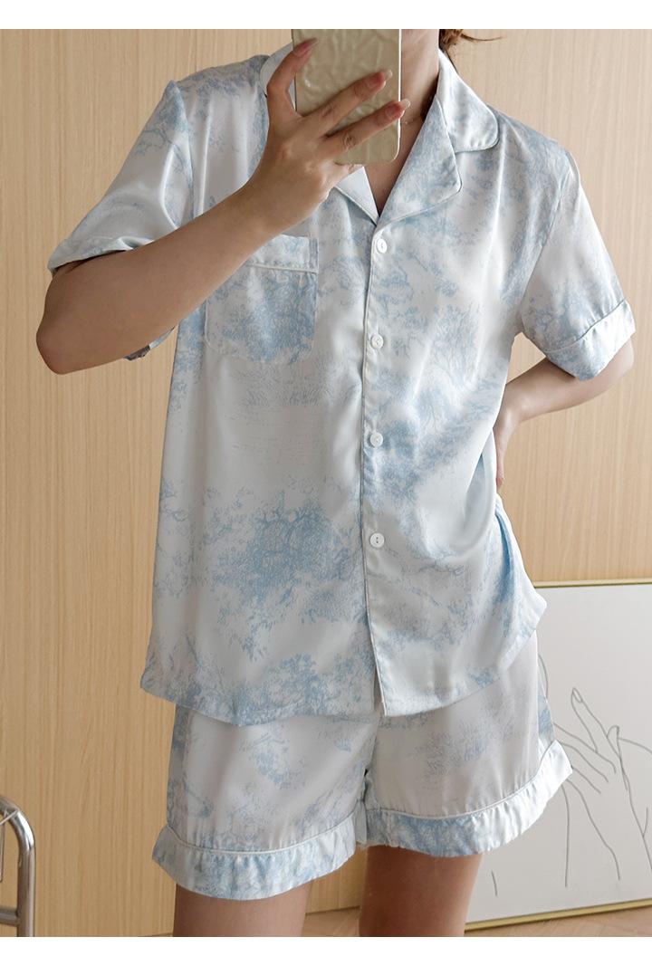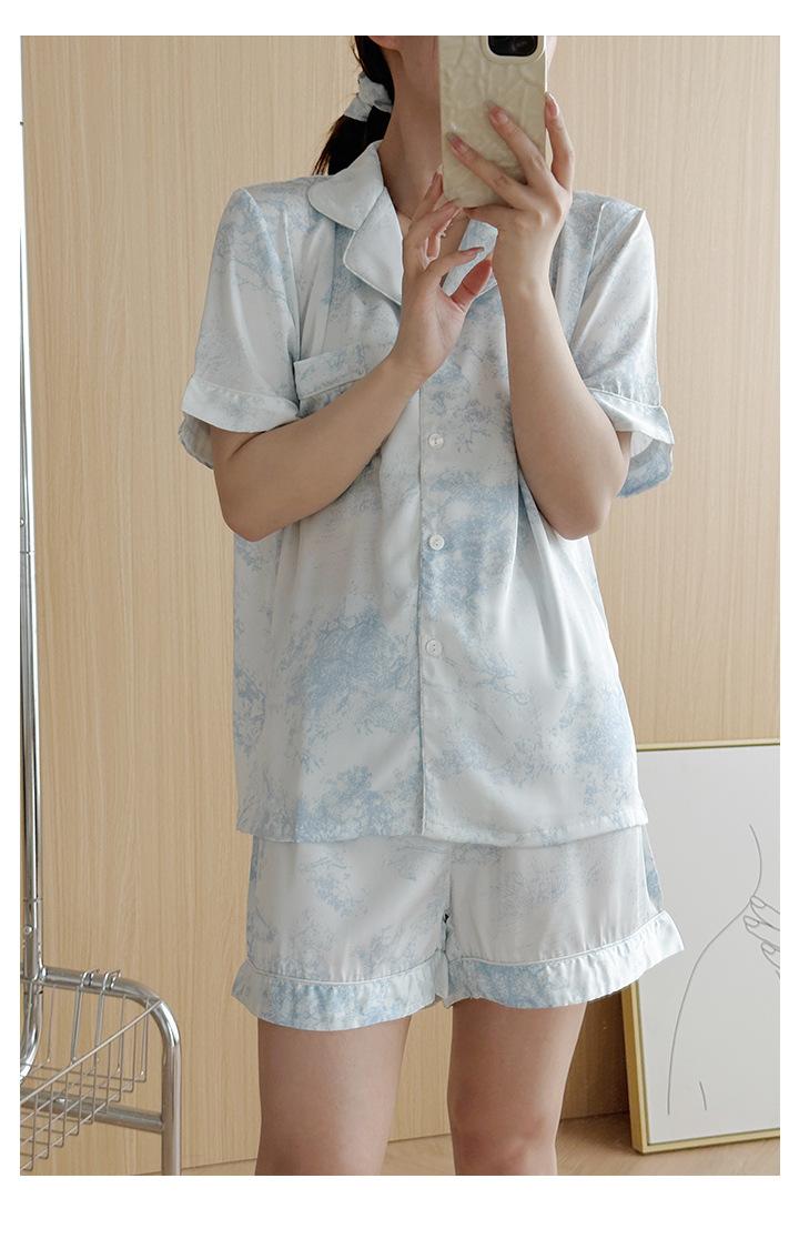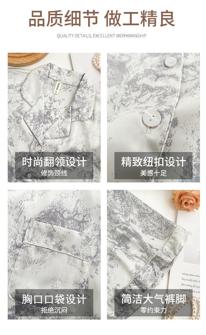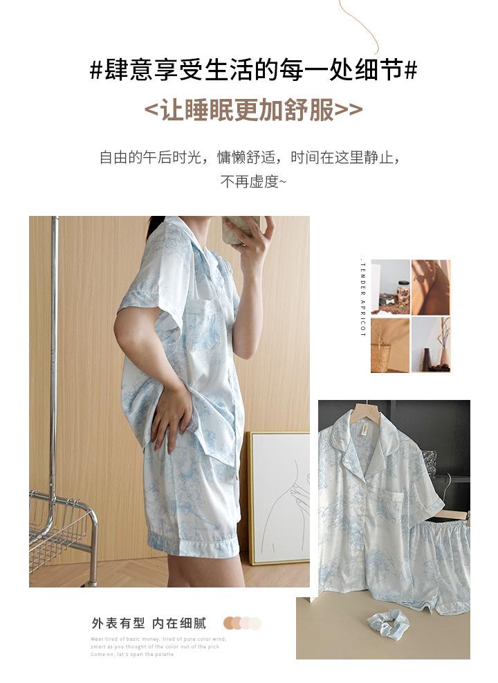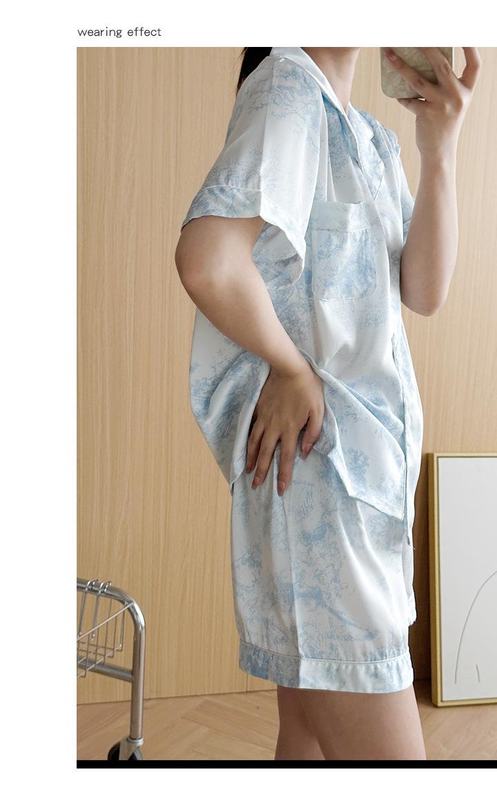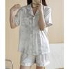 Verano Nuevo Pijama de Seda de Hielo para Mujer Cárdigan Delgado de Manga Corta Shorts Conjunto de Ropa Casual para el Hogar de Dos Piezas para Niñas