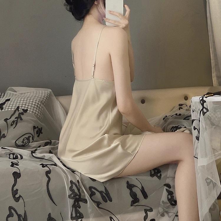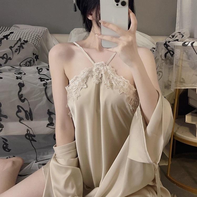 Pijama de Seda de Hielo Camisón de Tirantes para Mujer Verano Delgado Encaje Deseo Puro Retro Nuevo Estilo Chino Conjunto de Ropa para el Hogar