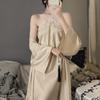 Apricot suspender belt, Apricot suspender + outer robe, Black suspender, Black suspenders + robe