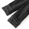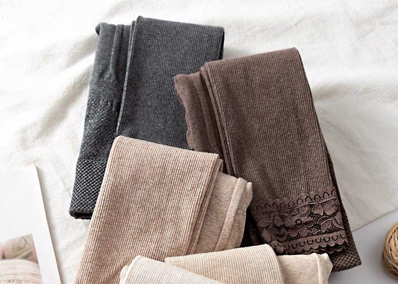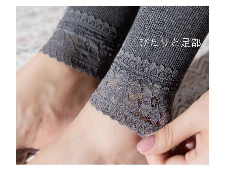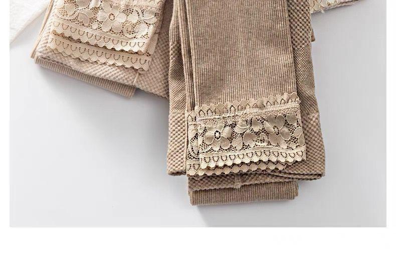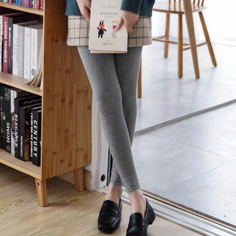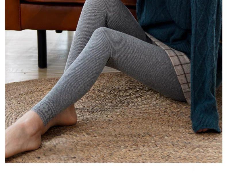 Leggings gruesos a rayas para mujer de otoño e invierno con forro polar, ropa exterior adelgazante de encaje recortada, pantalones cálidos de rayas verticales