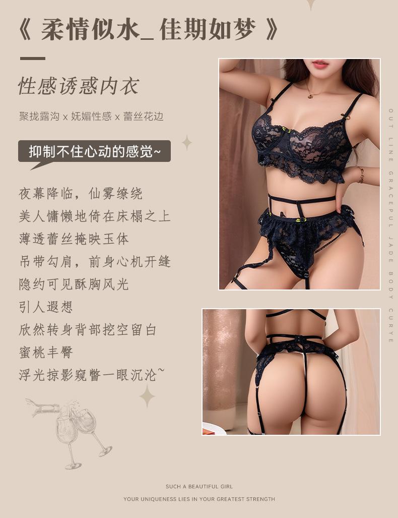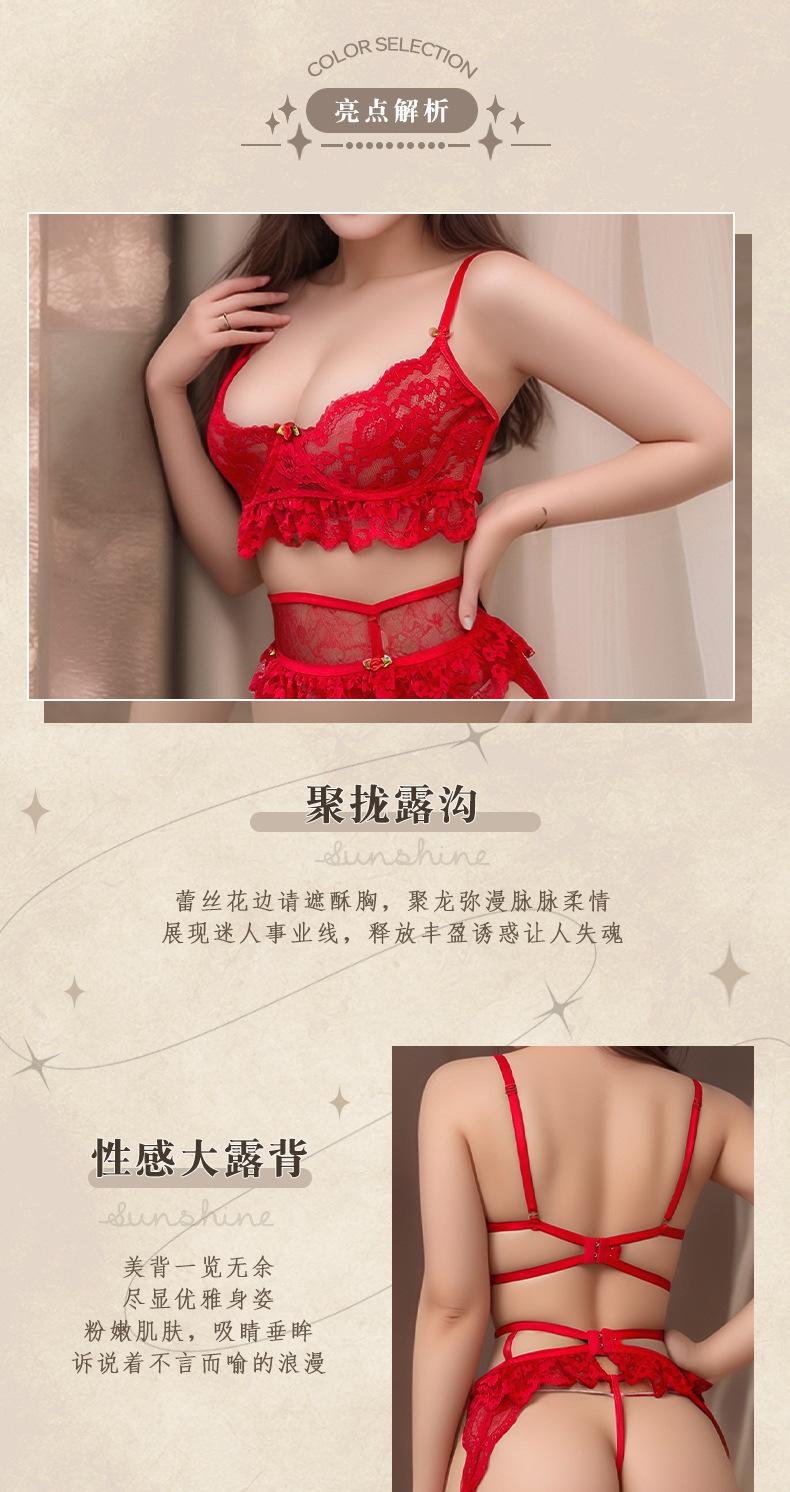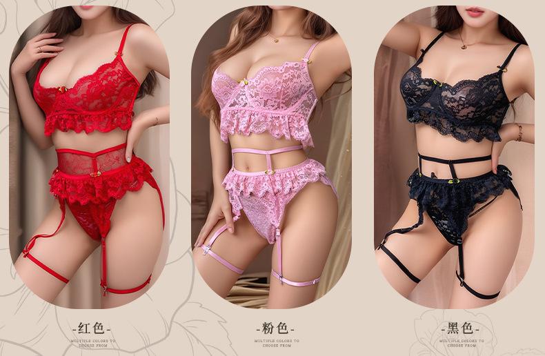 Ropa interior sexy para mujer, sujetador bordado de tres puntos europeo y americano, sexy encaje sling 0030