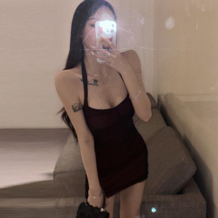 Nuevo Vestido Europeo de Moda para Club Nocturno con Cuello Colgante, Ajustado, Adelgazante, con Plisado de Malla, de Alta Gama, Ropa de Guerra para Bar