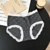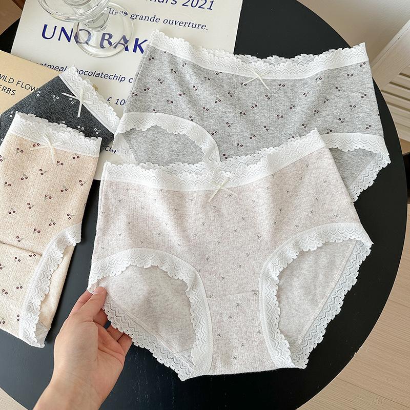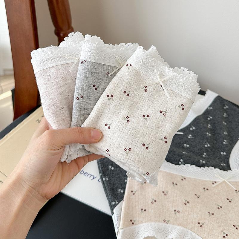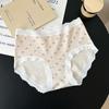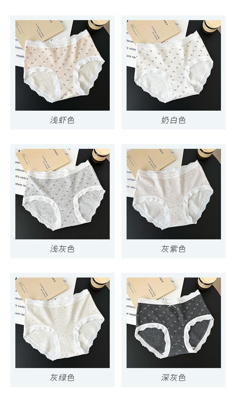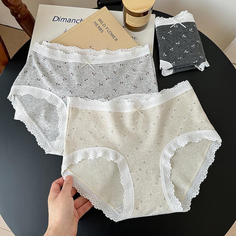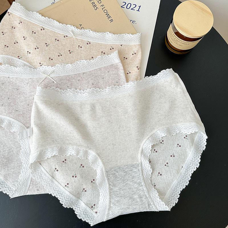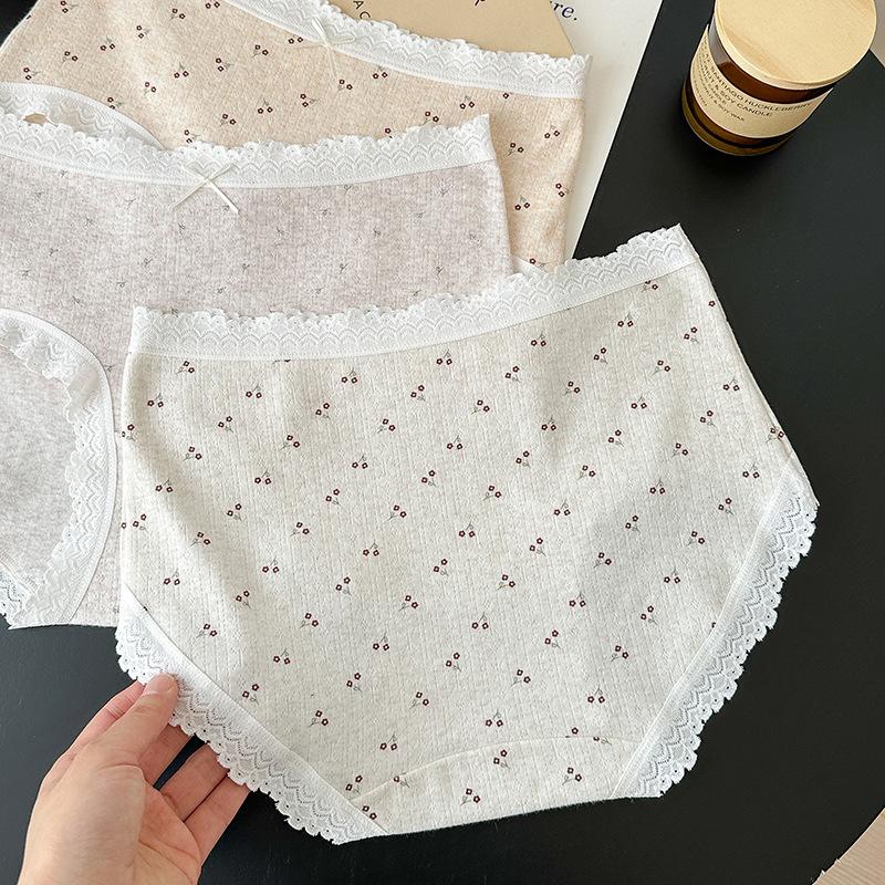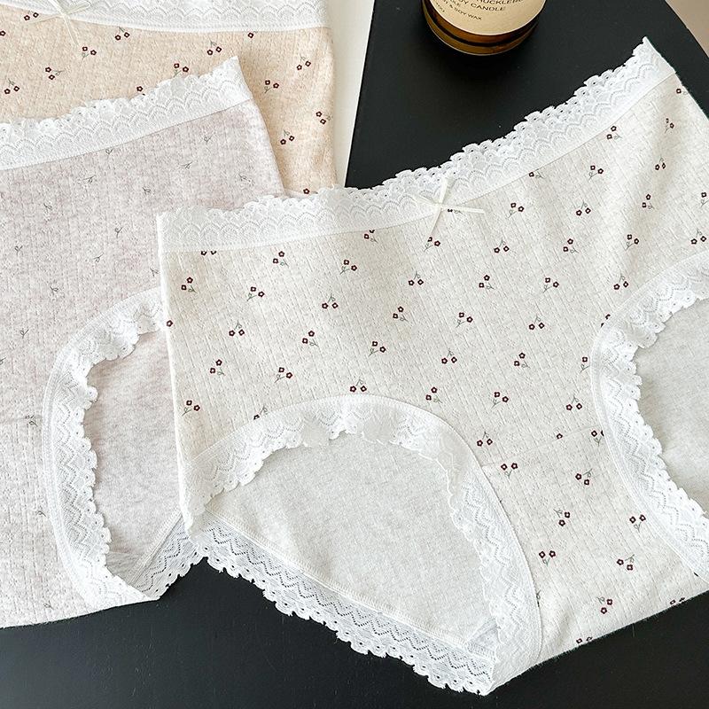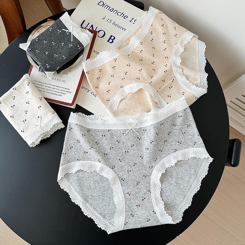 5275# Ropa Interior de Algodón Puro Estilo Ballet para Mujer Algodón Nube Encaje Dulce Cintura Media Calzones Tipo Vaina Estampados