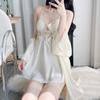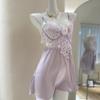 2025 Camisón Sexy para Mujer Conjunto de Dos Piezas Pijama de Seda de Hielo Camisón con Tirantes de Encaje Nuevo Estilo Espalda Descubierta Puro Deseo Transfronterizo