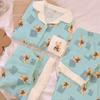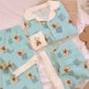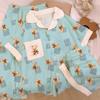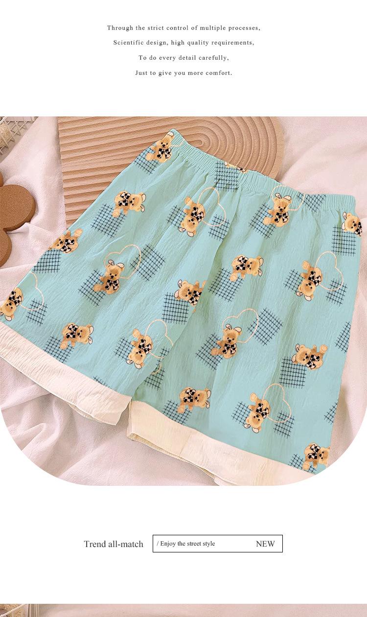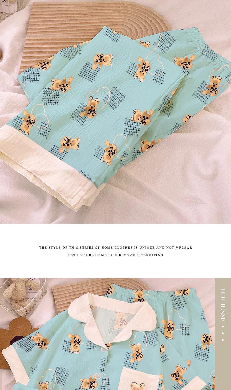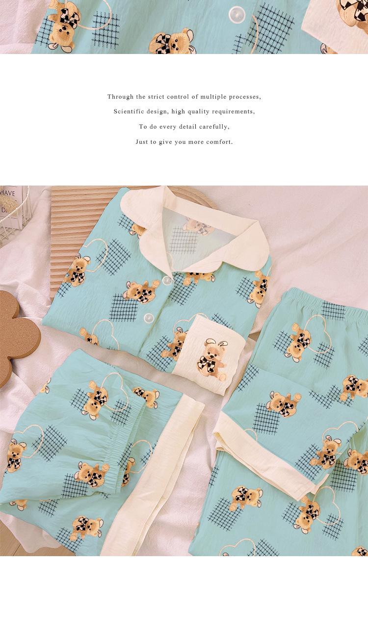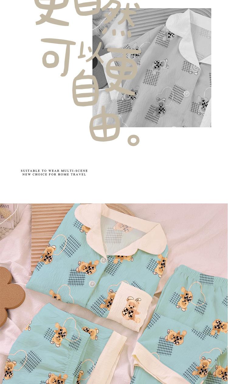 Pijama de algodón de verano fresco de oso de dibujos animados para mujer, ropa de casa de manga corta, dulce conjunto de tres piezas ins, foto real al por mayor