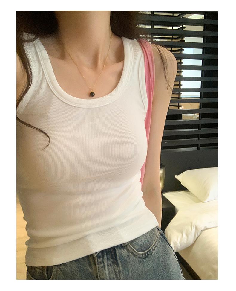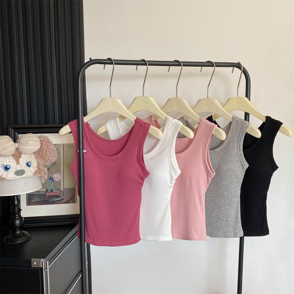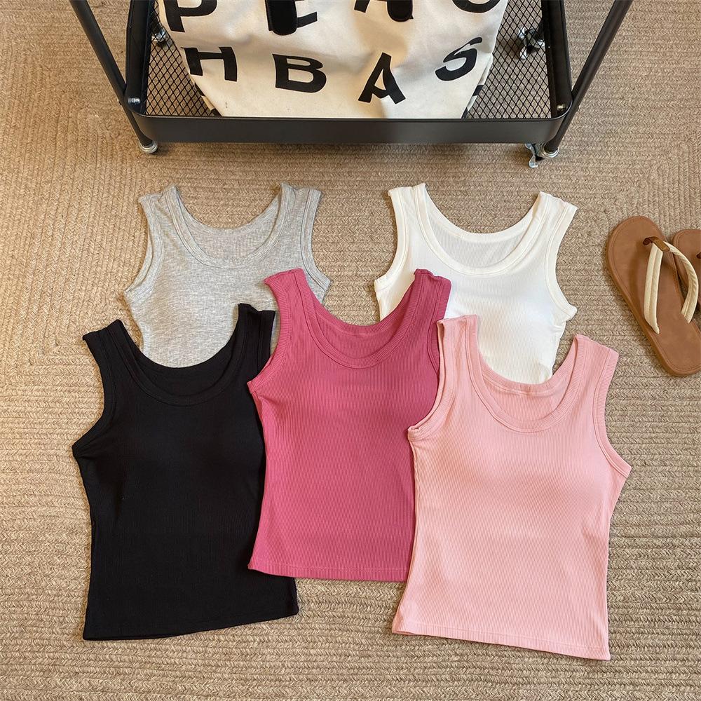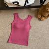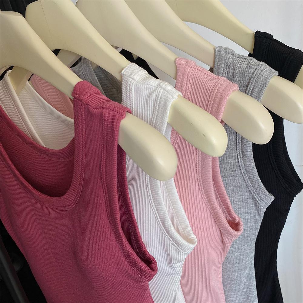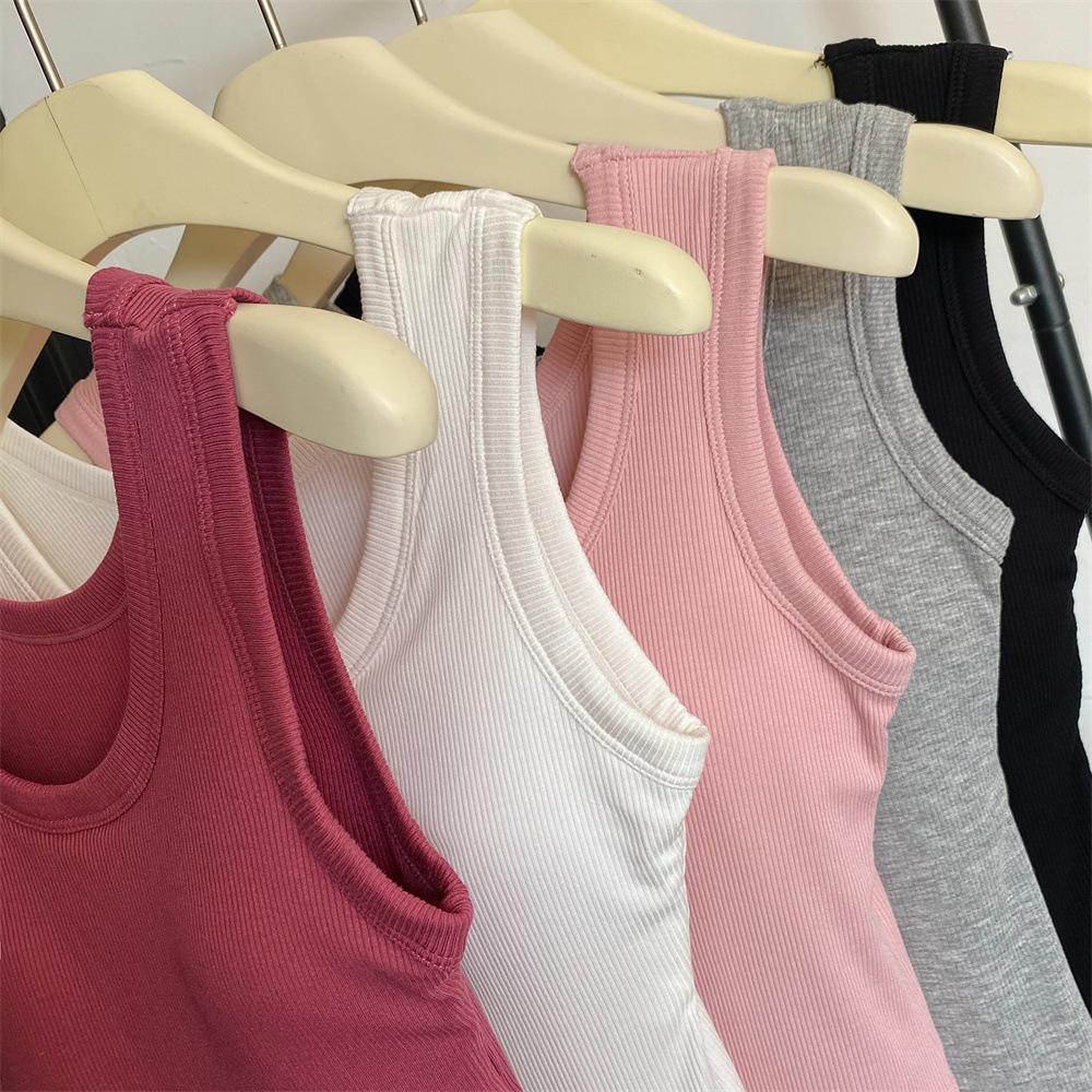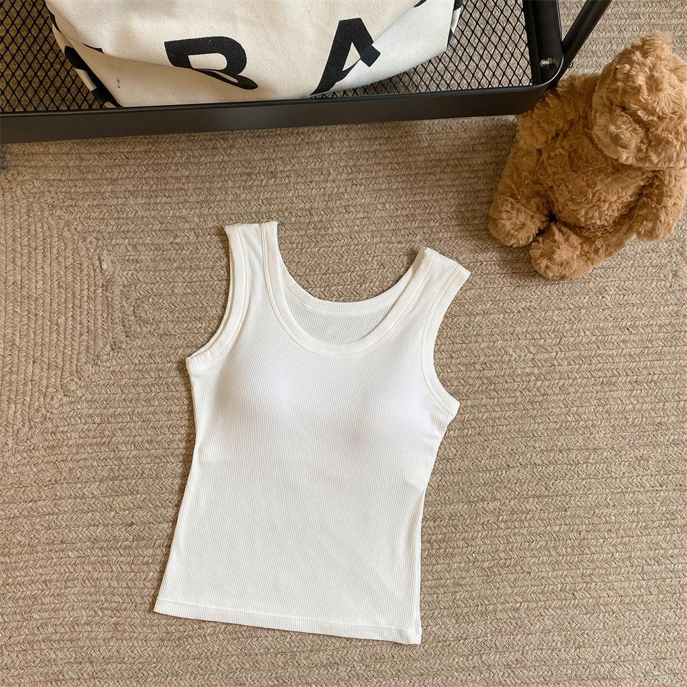 Nuevo Cuello Redondo Color Sólido Chica Caliente Tirantes Anchos Acanalados Hermosa Espalda con Almohadilla de Pecho Incorporada Cómodo Transpirable Dulce Versátil Chaleco para Mujer