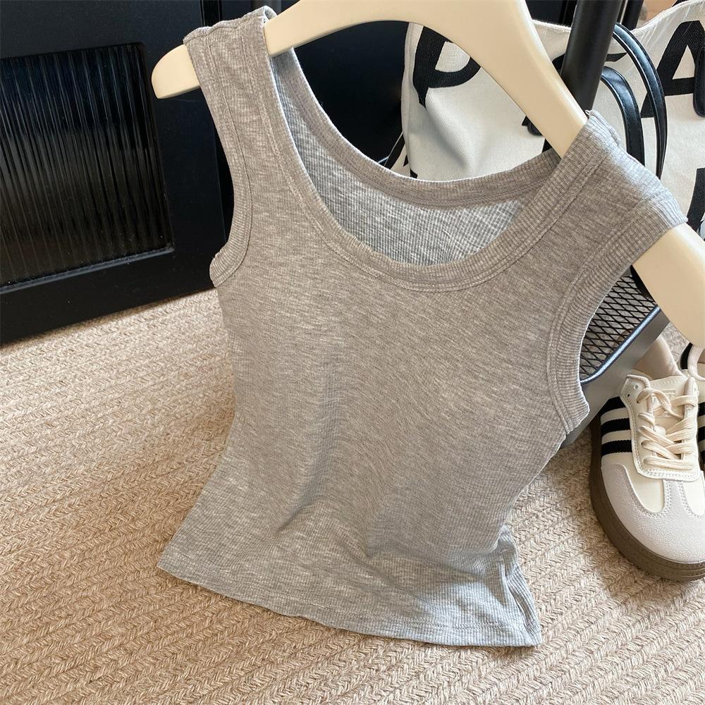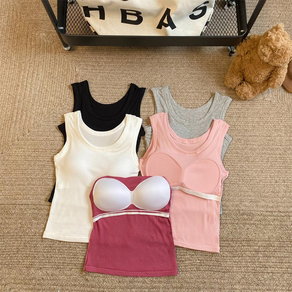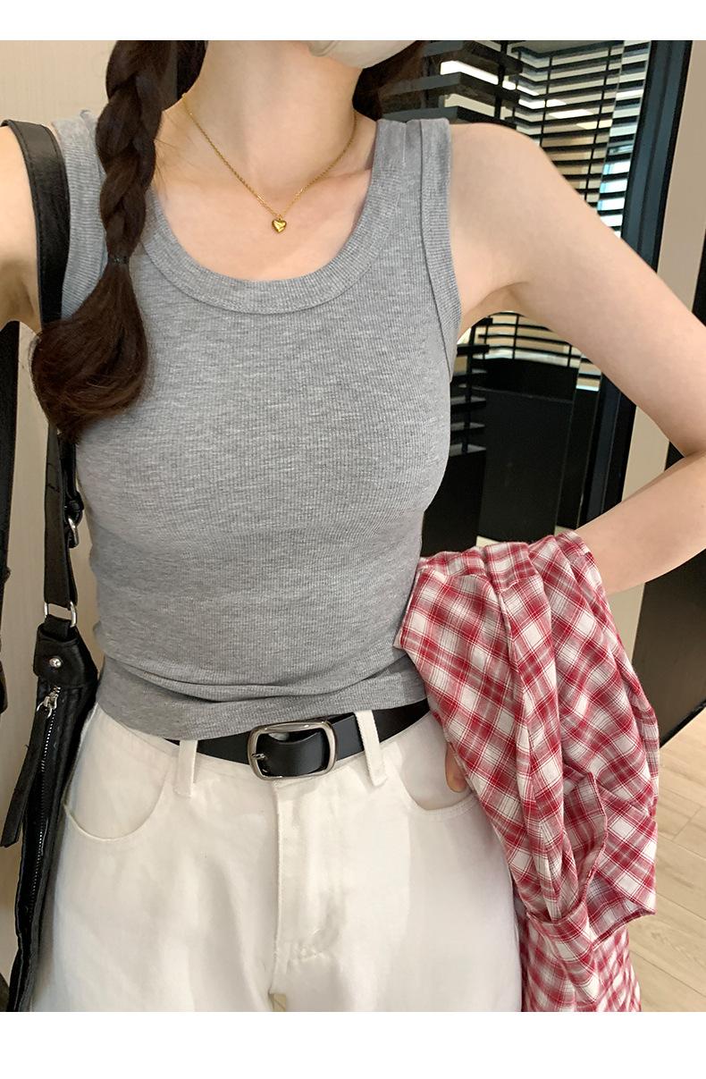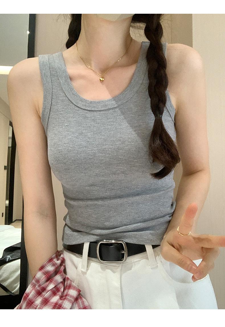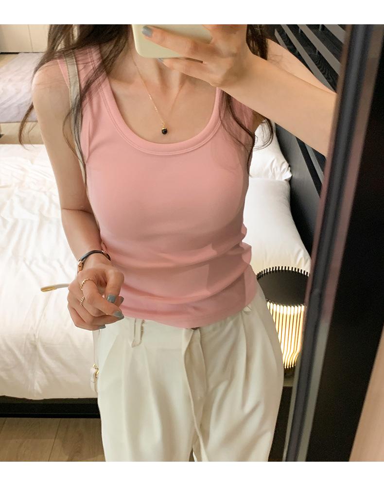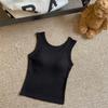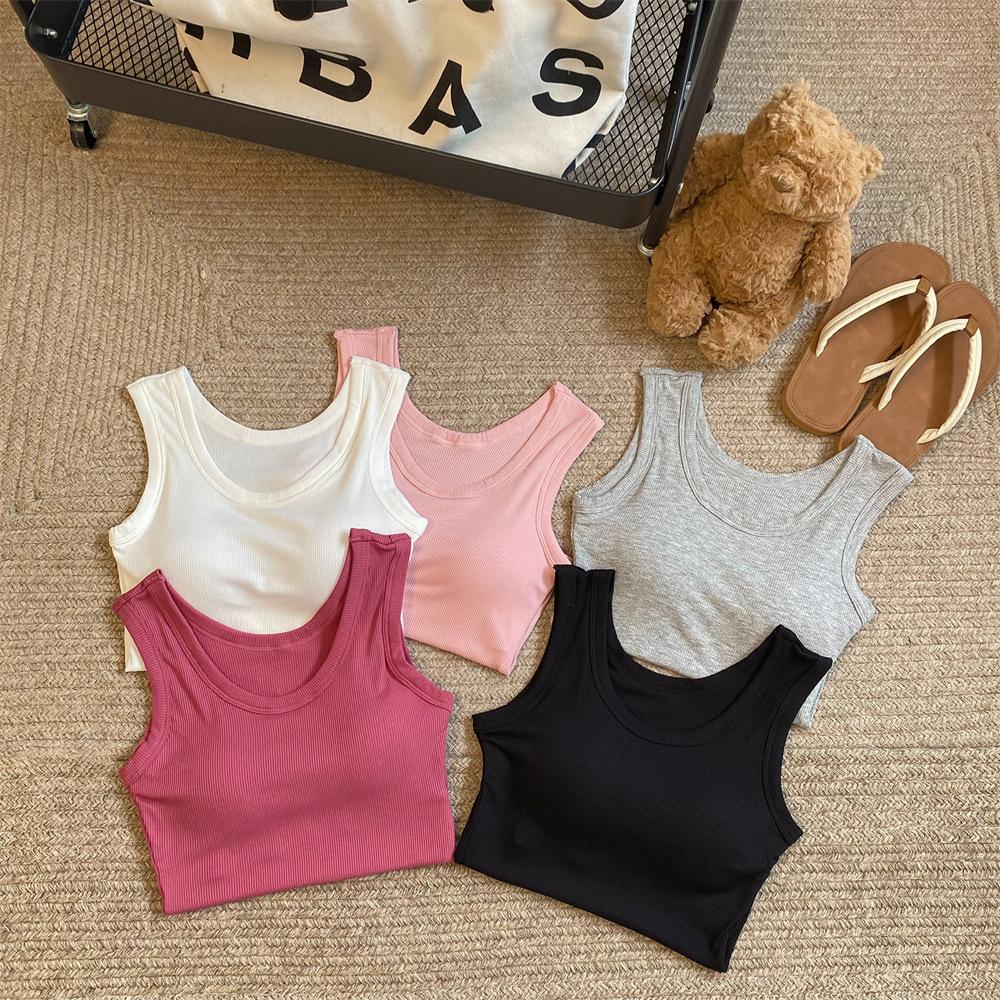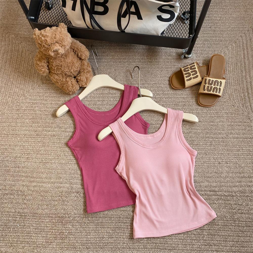 Nuevo Cuello Redondo Color Sólido Chica Caliente Tirantes Anchos Acanalados Hermosa Espalda con Almohadilla de Pecho Incorporada Cómodo Transpirable Dulce Versátil Chaleco para Mujer