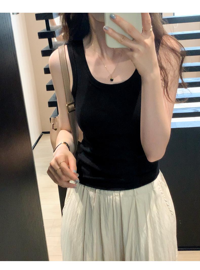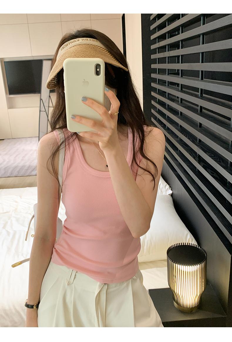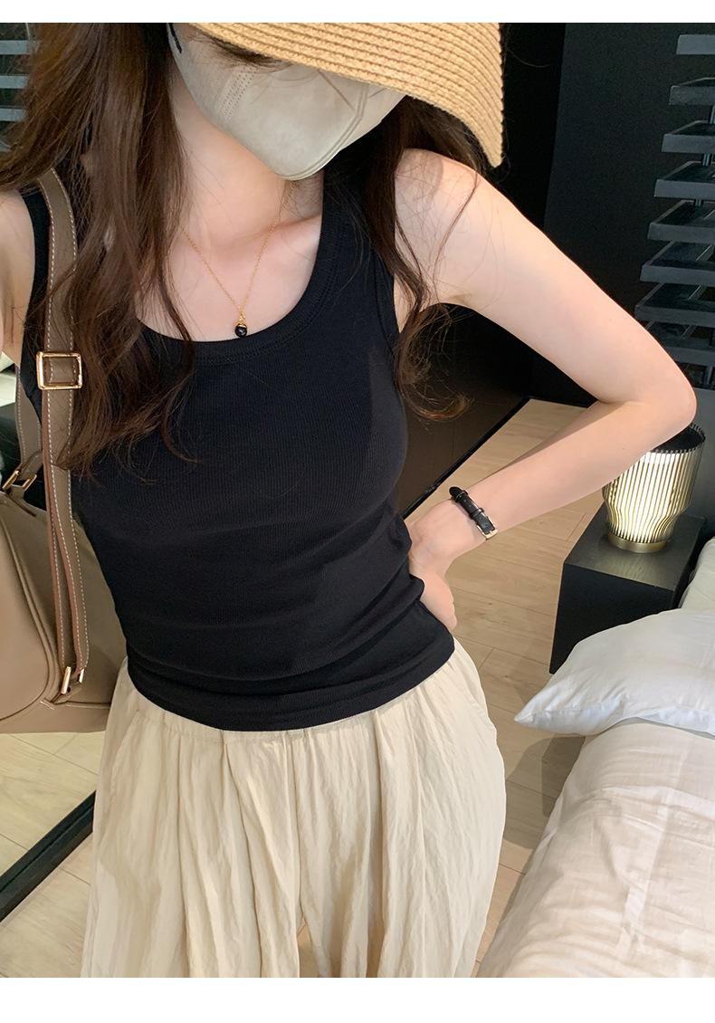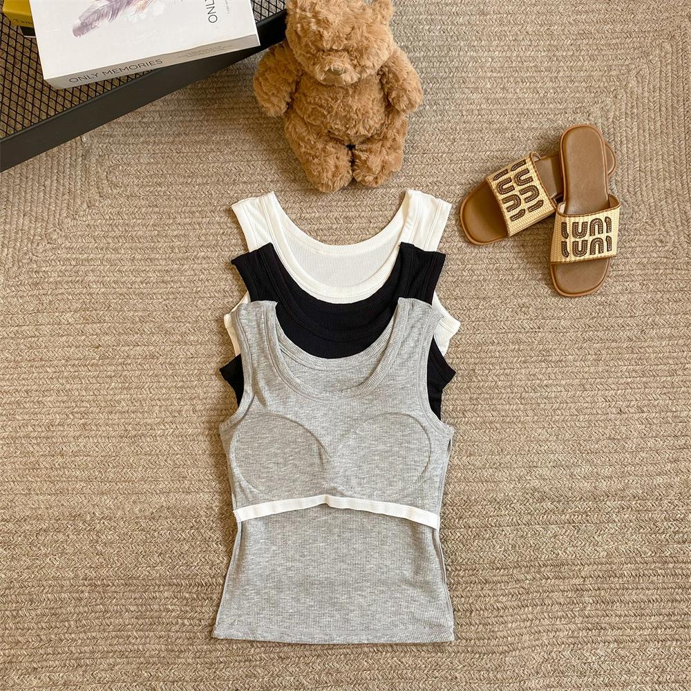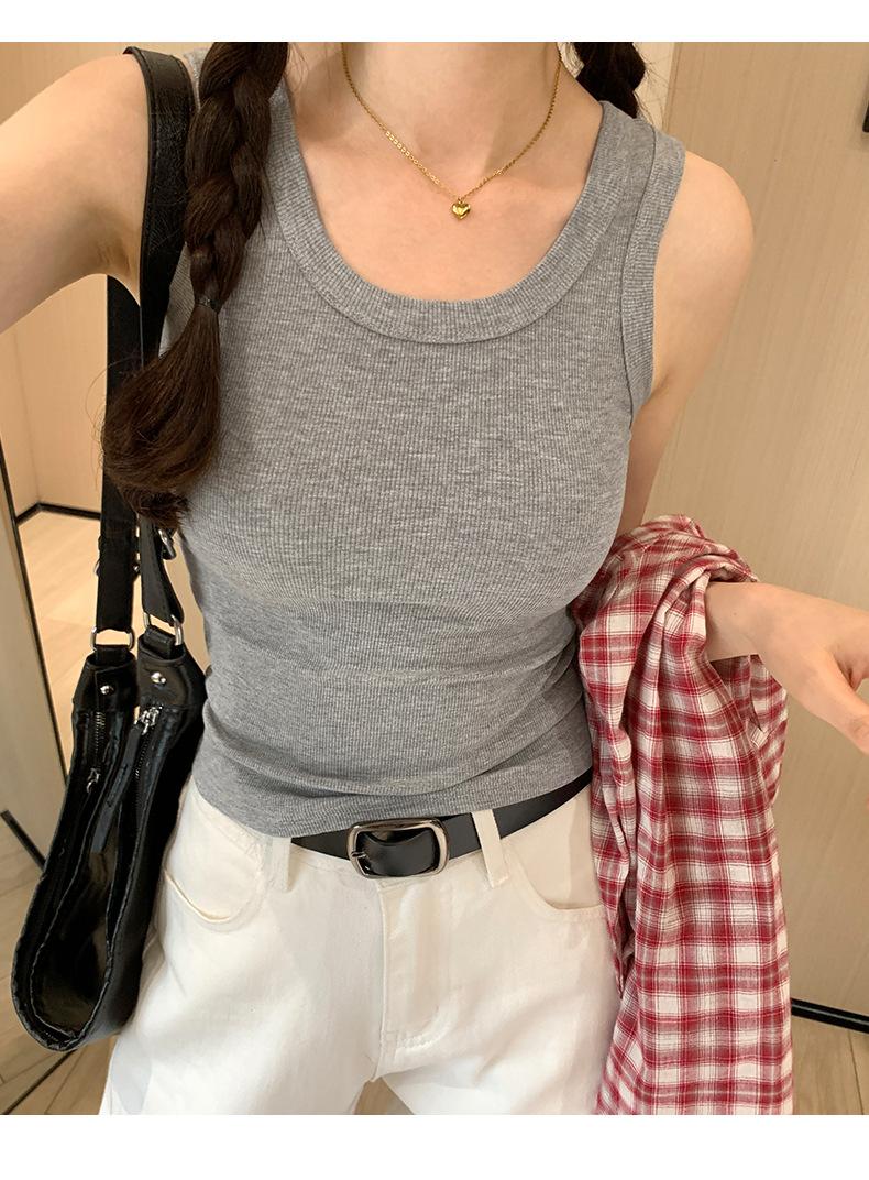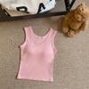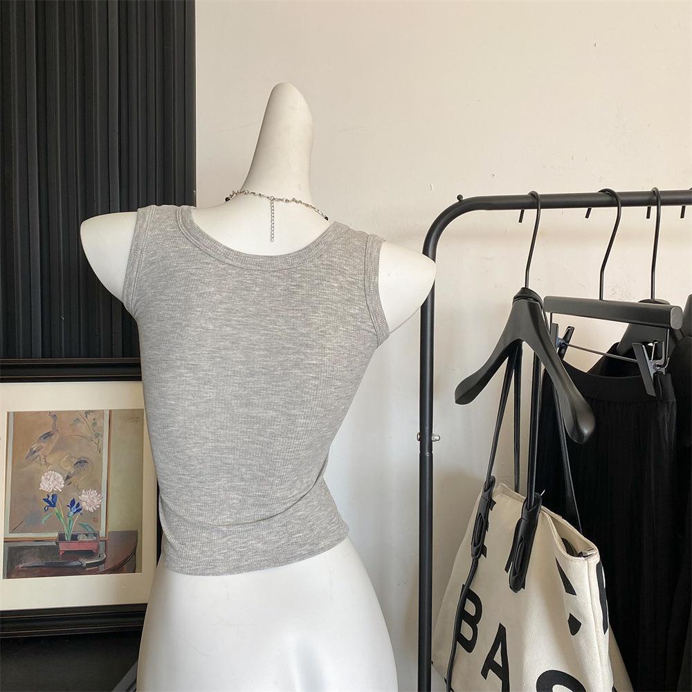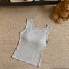 Nuevo Cuello Redondo Color Sólido Chica Caliente Tirantes Anchos Acanalados Hermosa Espalda con Almohadilla de Pecho Incorporada Cómodo Transpirable Dulce Versátil Chaleco para Mujer
