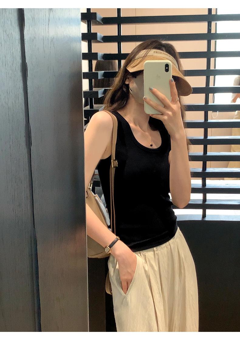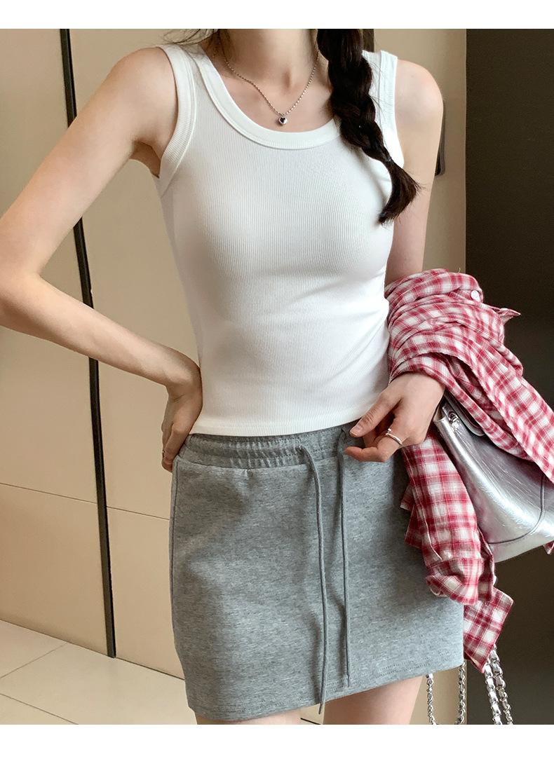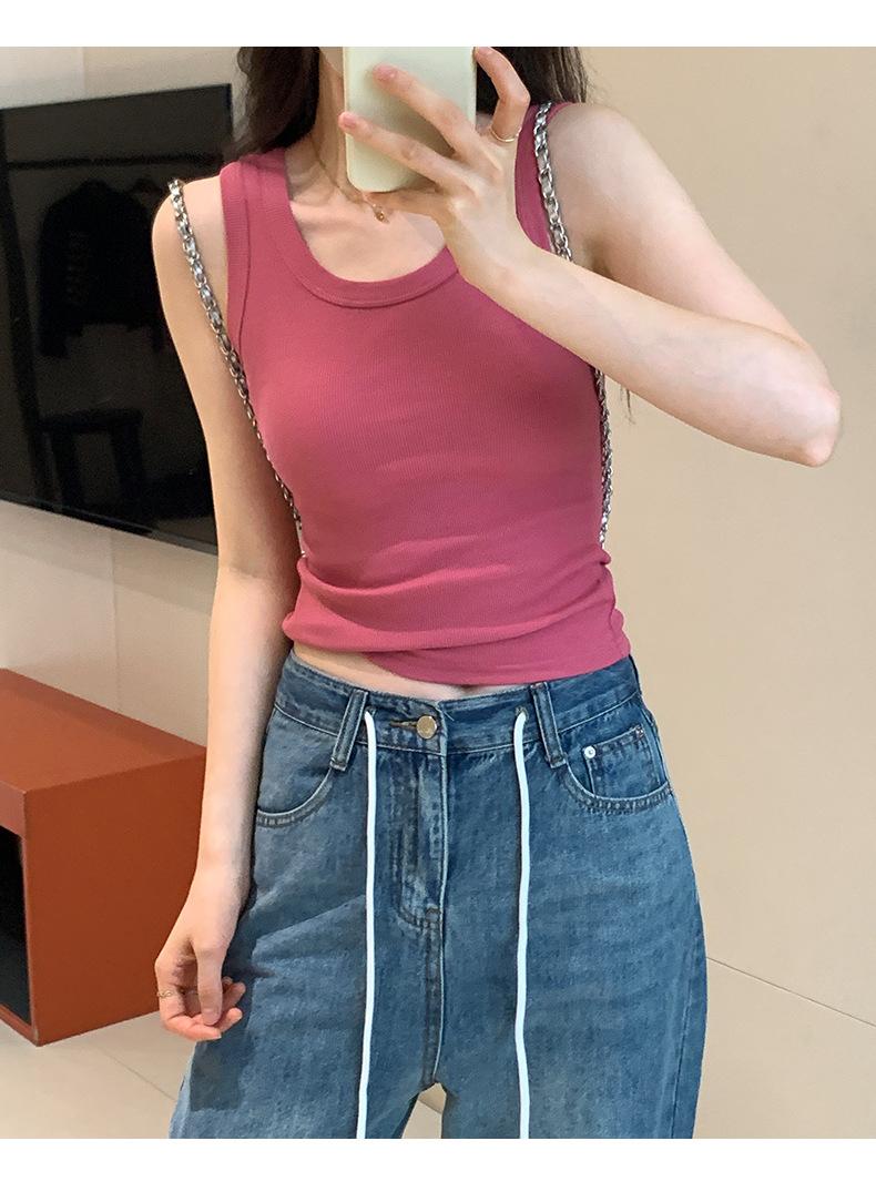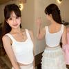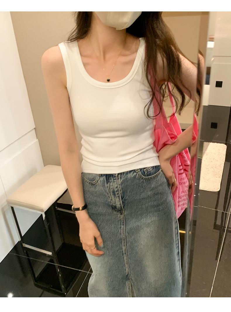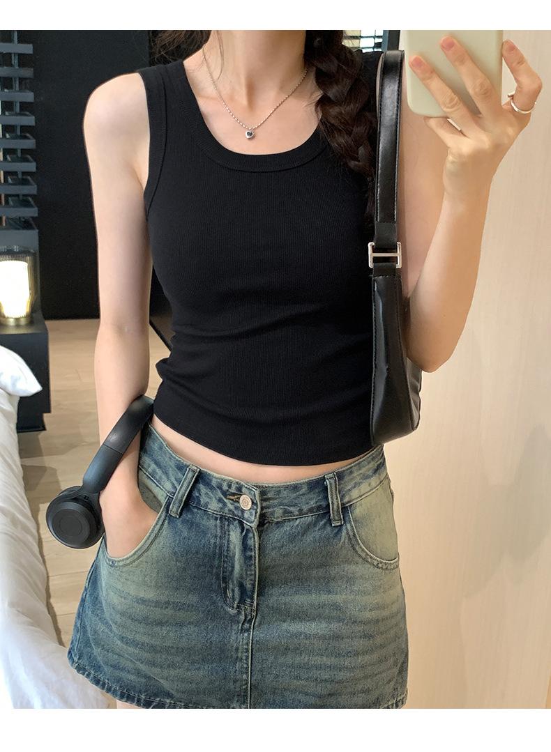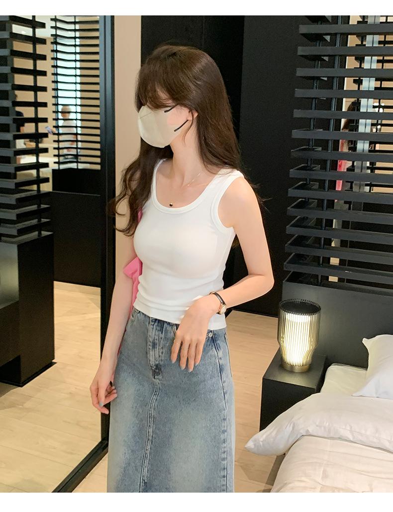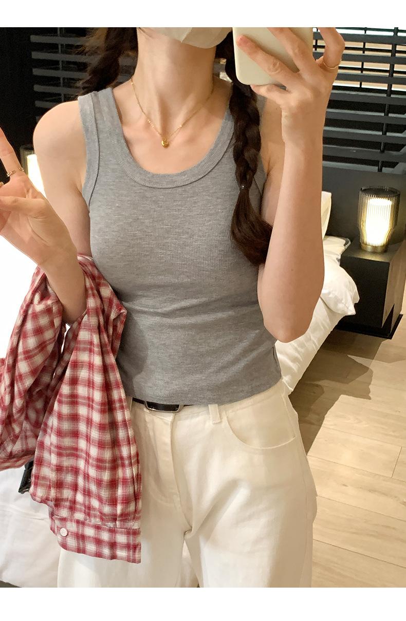 Nuevo Cuello Redondo Color Sólido Chica Caliente Tirantes Anchos Acanalados Hermosa Espalda con Almohadilla de Pecho Incorporada Cómodo Transpirable Dulce Versátil Chaleco para Mujer
