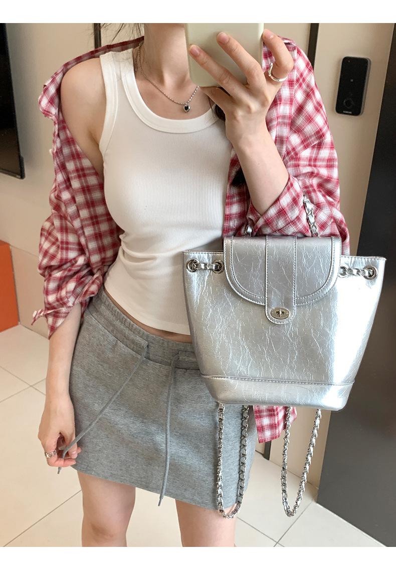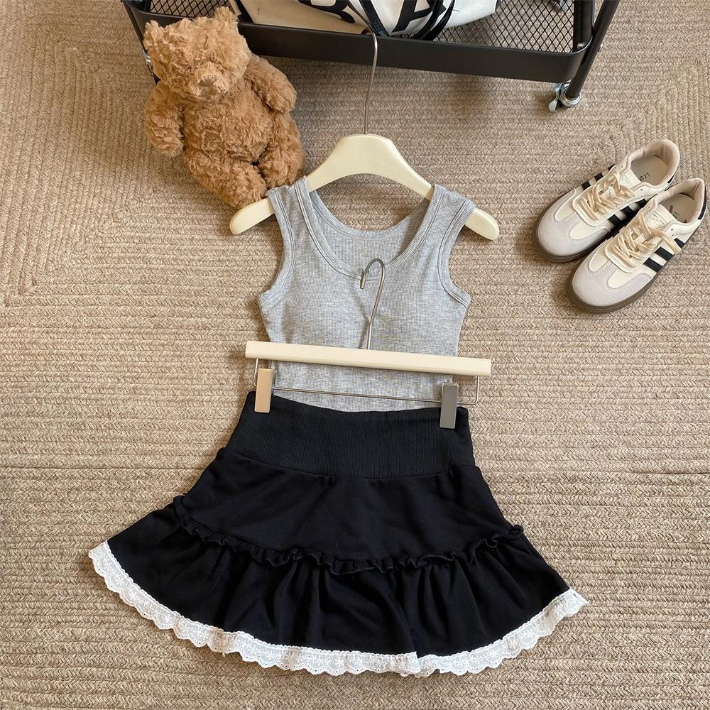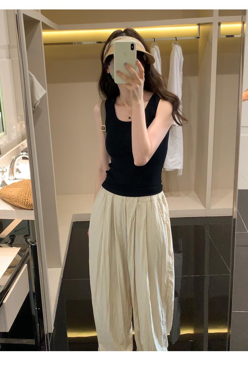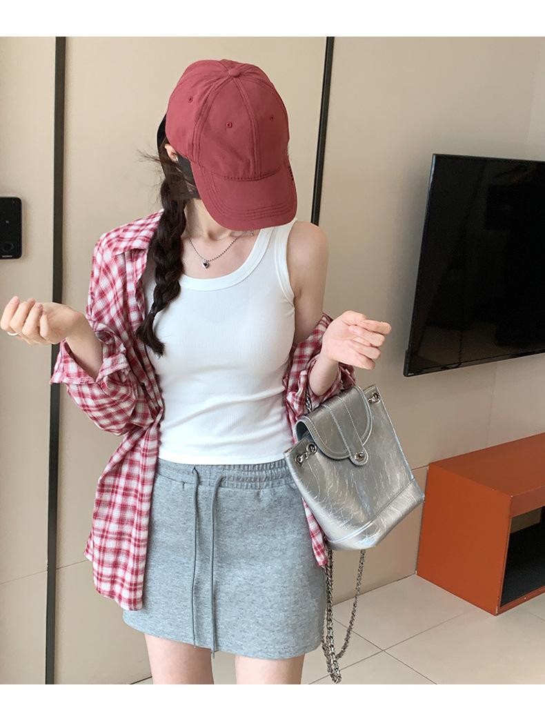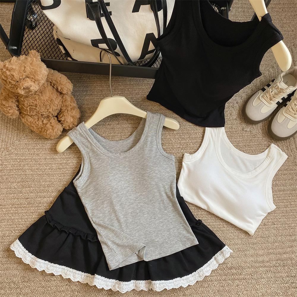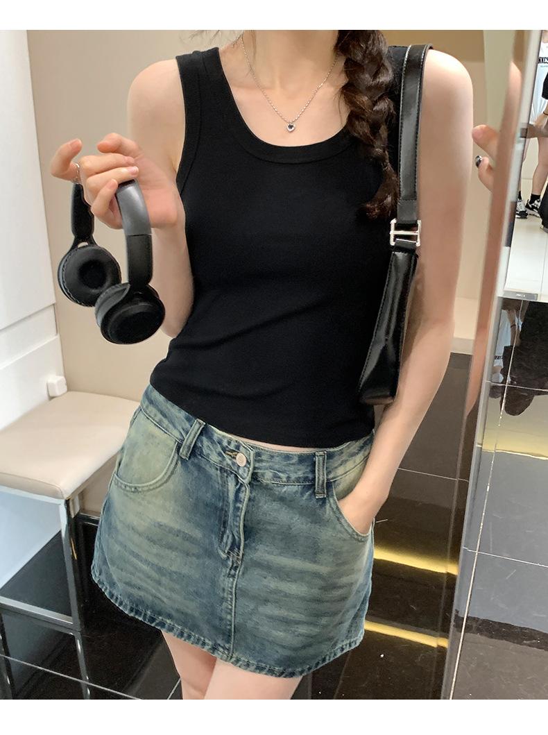 Nuevo Cuello Redondo Color Sólido Chica Caliente Tirantes Anchos Acanalados Hermosa Espalda con Almohadilla de Pecho Incorporada Cómodo Transpirable Dulce Versátil Chaleco para Mujer