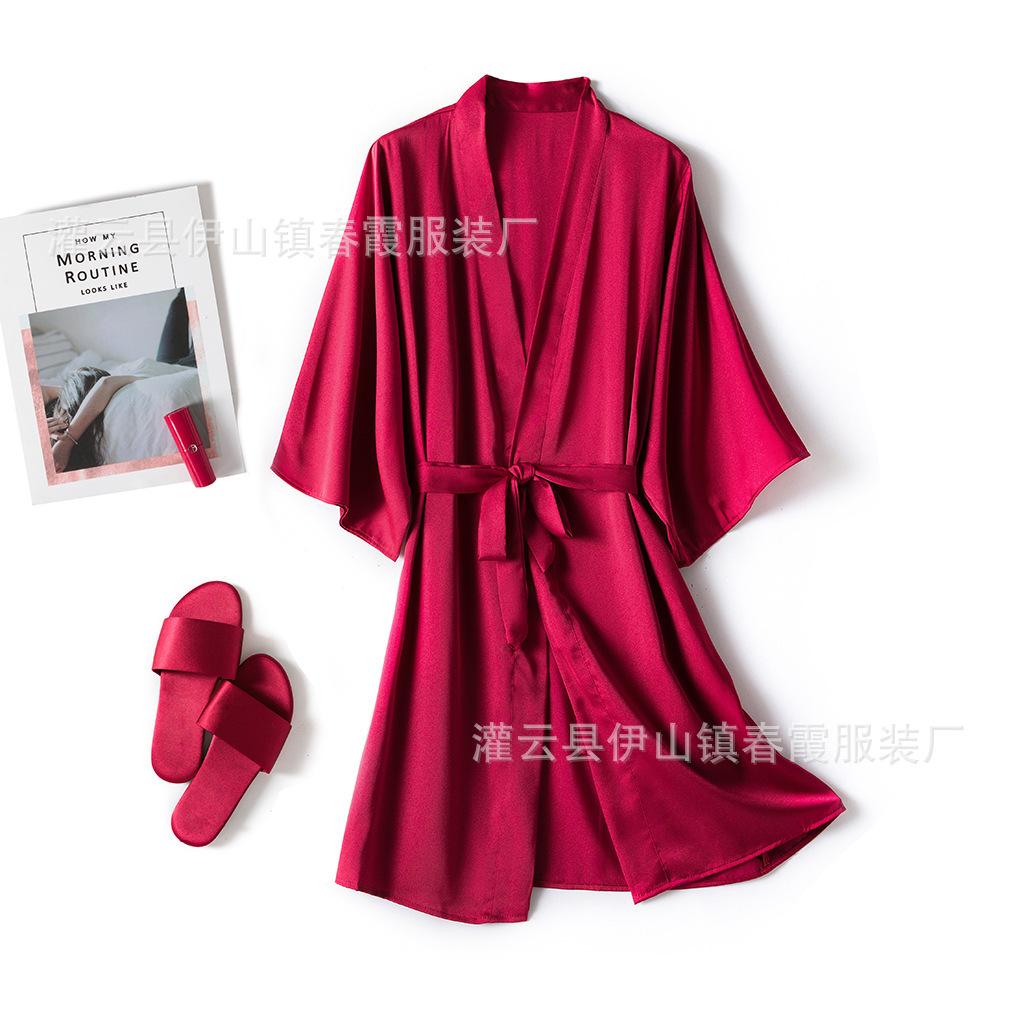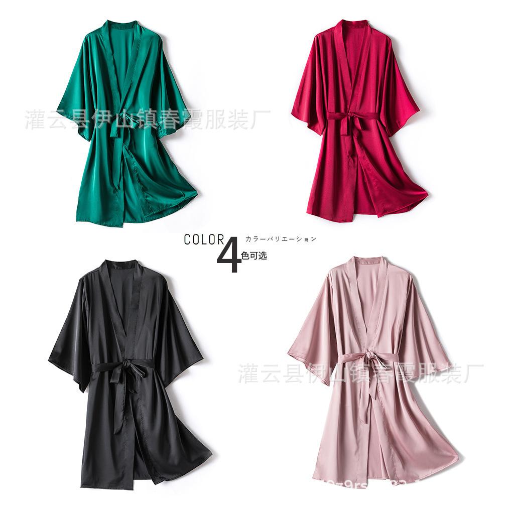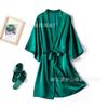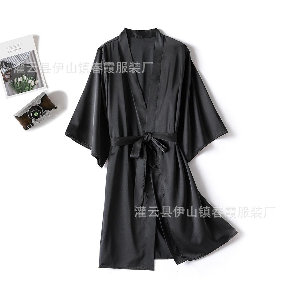 Pijama de Satén Elástico Transfronterizo Camisón para Mujer Bata de Vestir Una Pieza Bata de Baño Largo Medio Bata Exterior Negra Sexy Imitación Seda